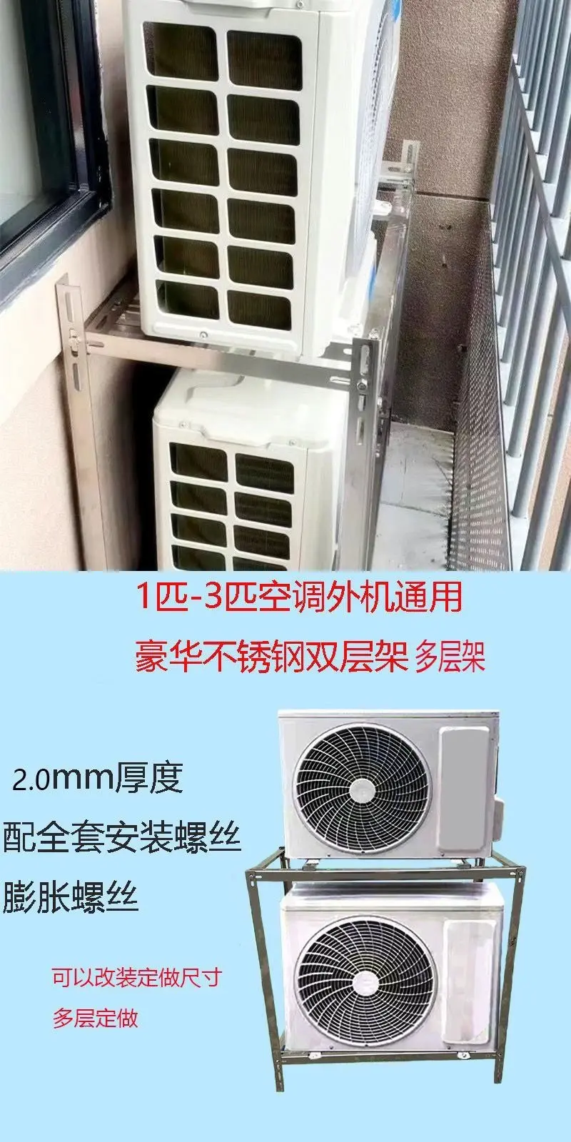 XMSJ air conditioner outdoor unit bracket 1.5 HP 2 HP 3 HP universal outdoor floor-standing stacked double-layer bracket thickened to prevent falling _1-2 HP galvanized thickened version 85*40*85