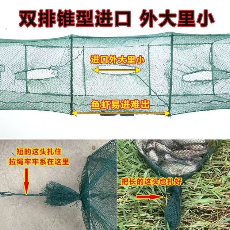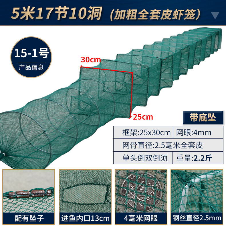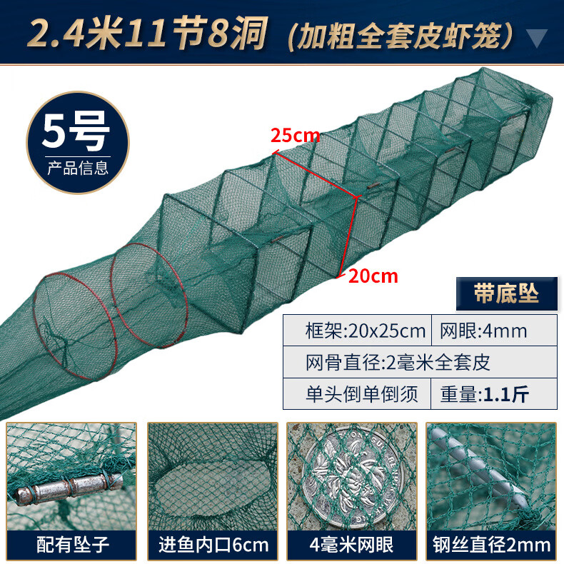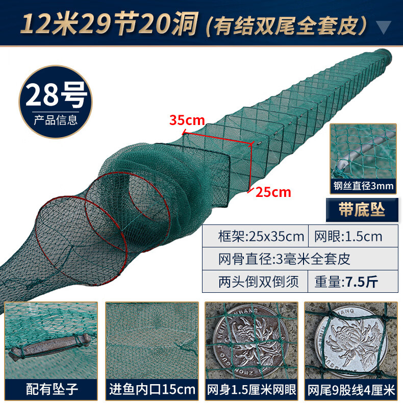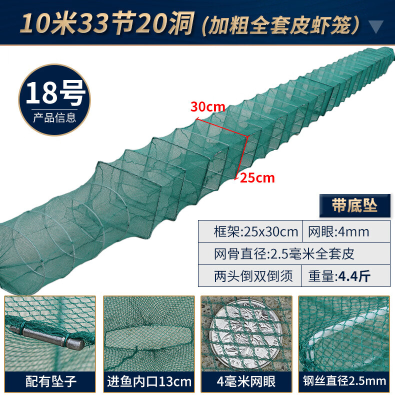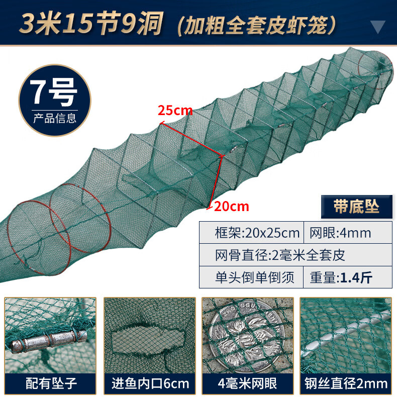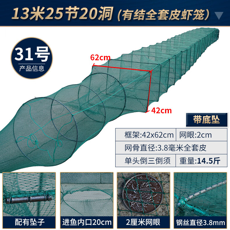 Fish and shrimp net cage, ground net, lobster net, ground dragon fish net cage, can not come out, only enters the fishing net, fishing net cage, shrimp cage, eel cage, boutique 4 meters, 19 sections, frame 20*25, thickened with pendant