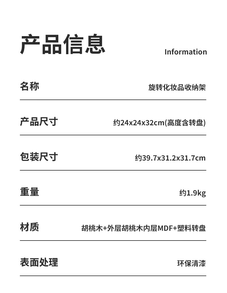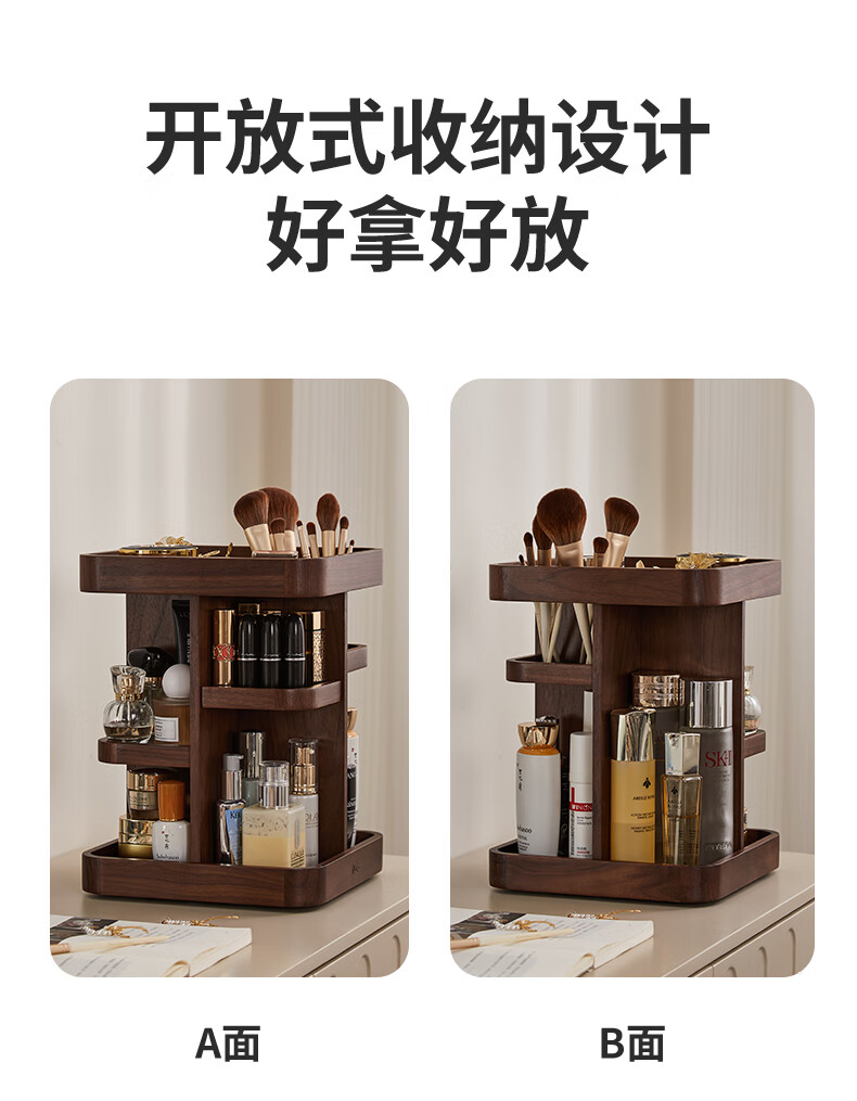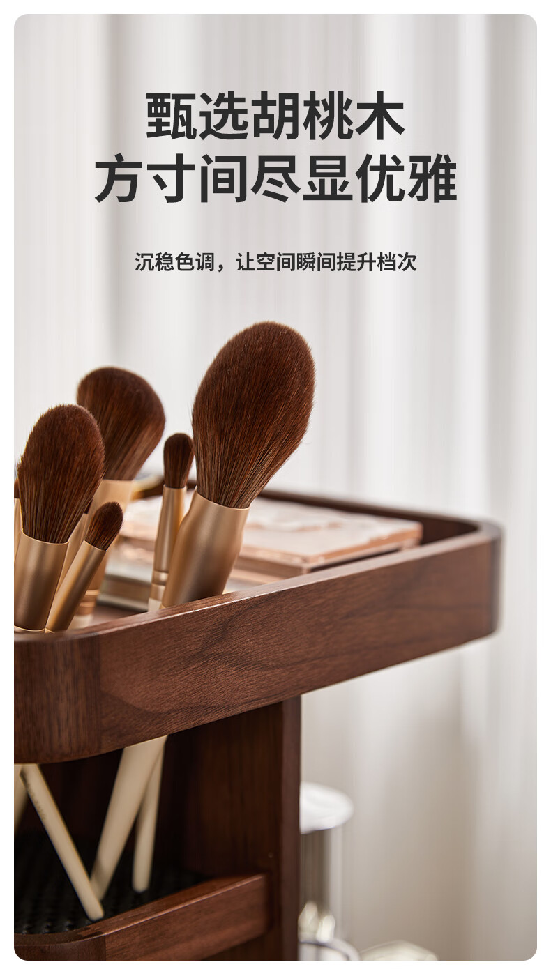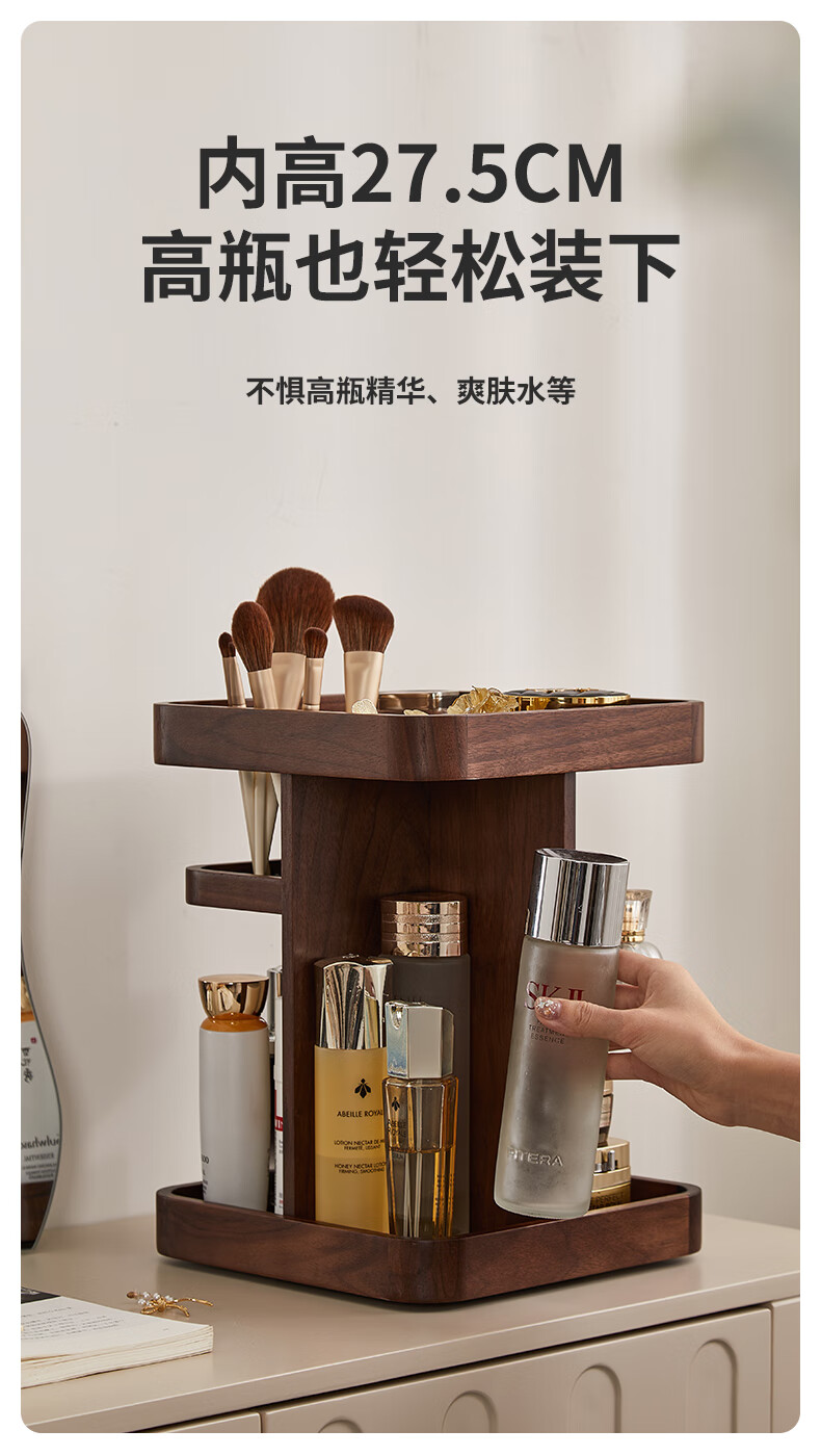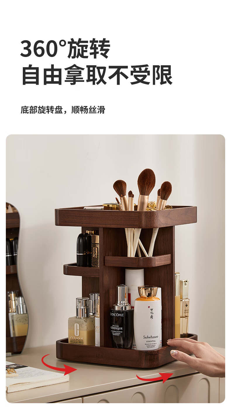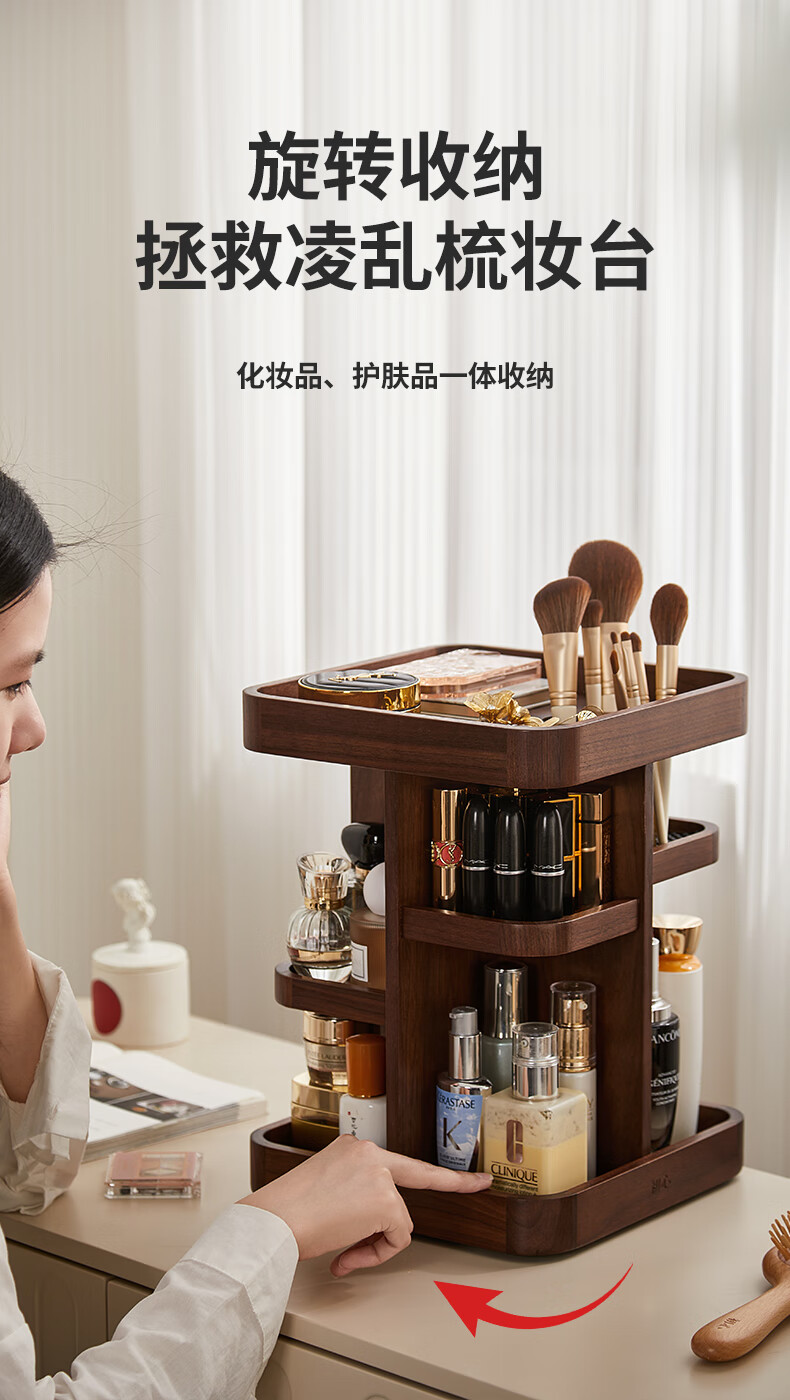 Chuxin Rotating Cosmetic Storage Box Large Capacity Dressing Table Storage Box Desktop Cosmetic Box 38 Women's Day Gift 360 Rotating Storage Rack-Walnut Solid Wood