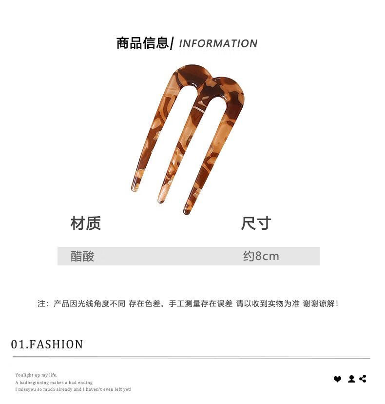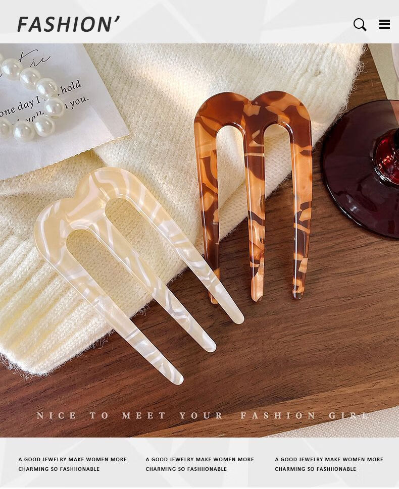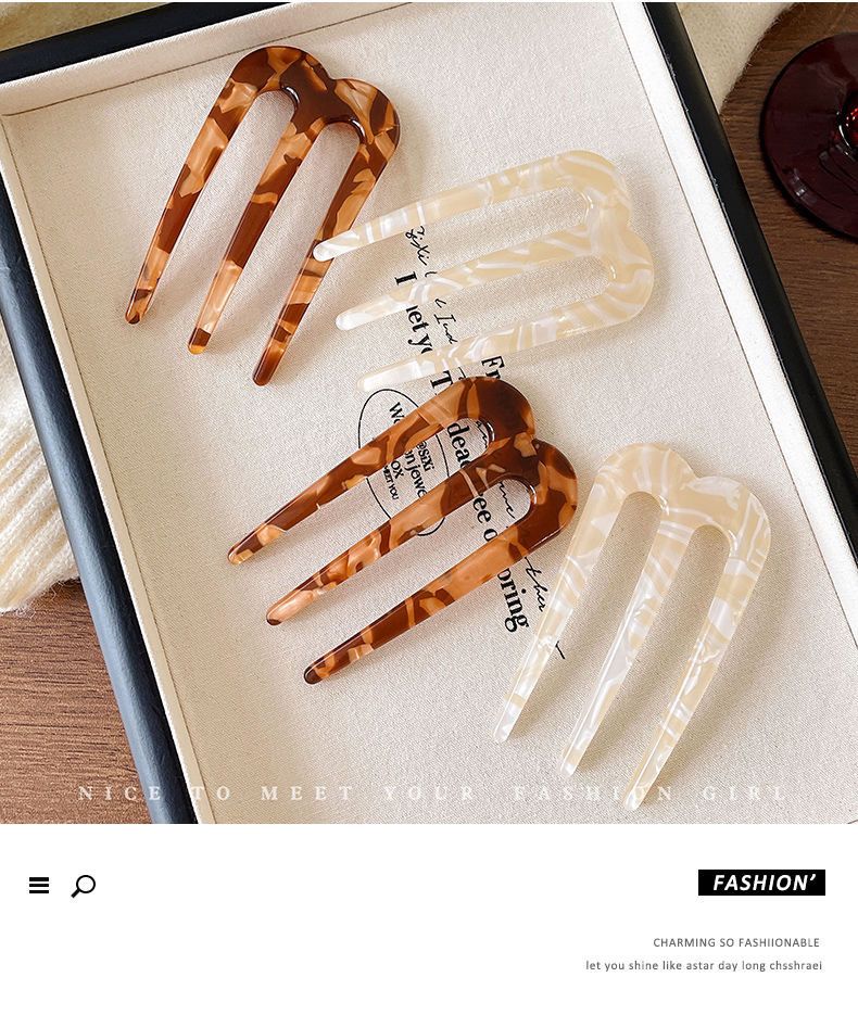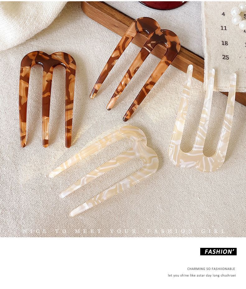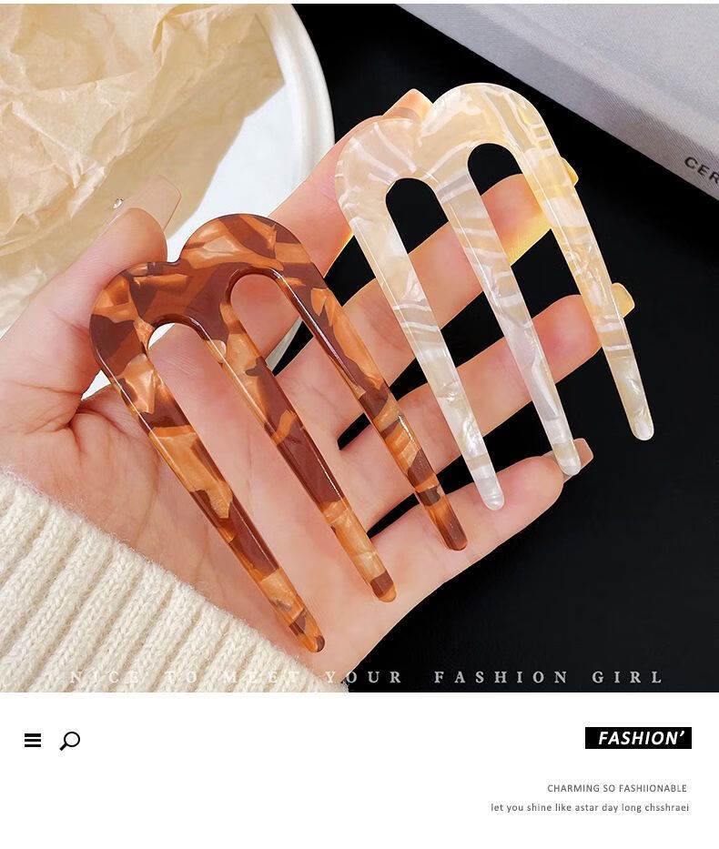 M three-tooth hairpin Chinese style high-end comb 2024 new fixed hairpin hairpin hair artifact acetic acid headdress Acetate three-tooth M hairpin-1 random color