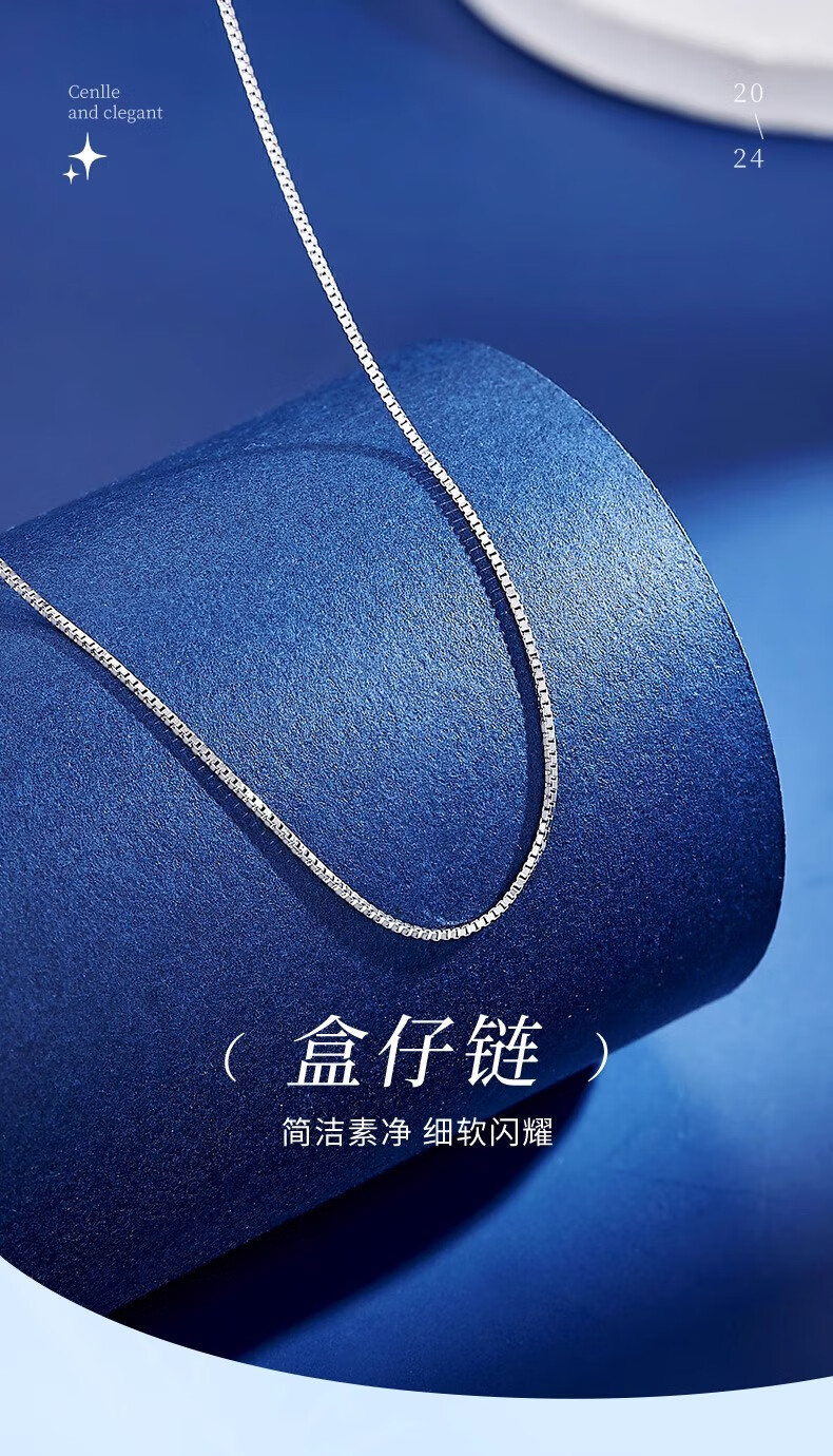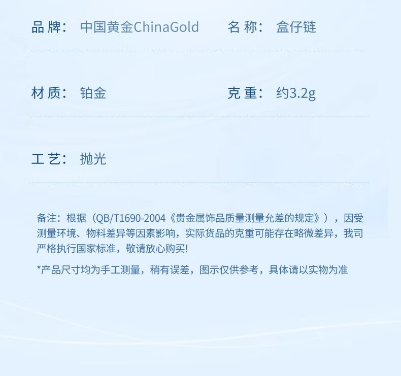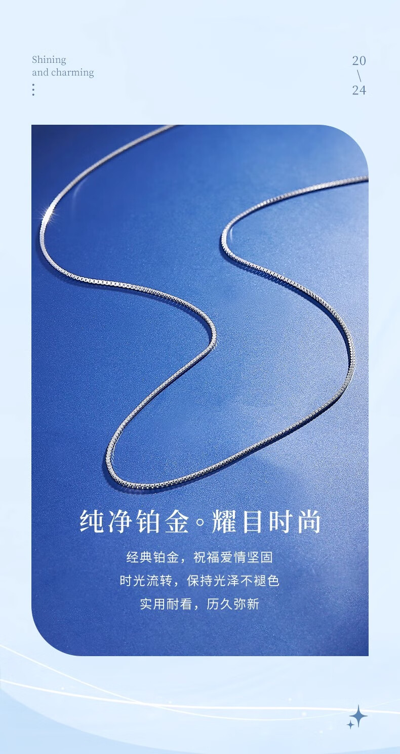 中国黄金(CHINA GOLD)PT950铂金项链女款白金素链无吊坠情人节生日礼物马年本命年礼物 铂金盒仔链 约2.2g