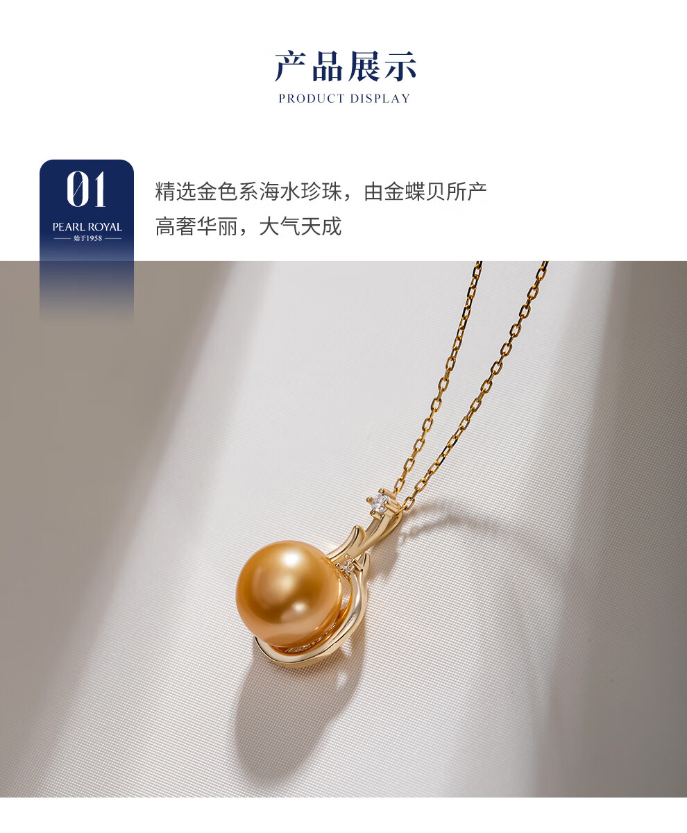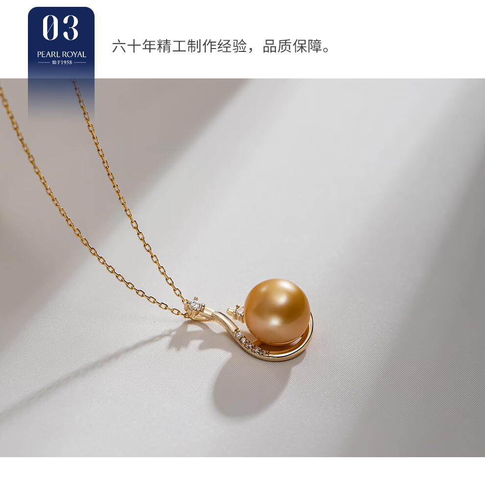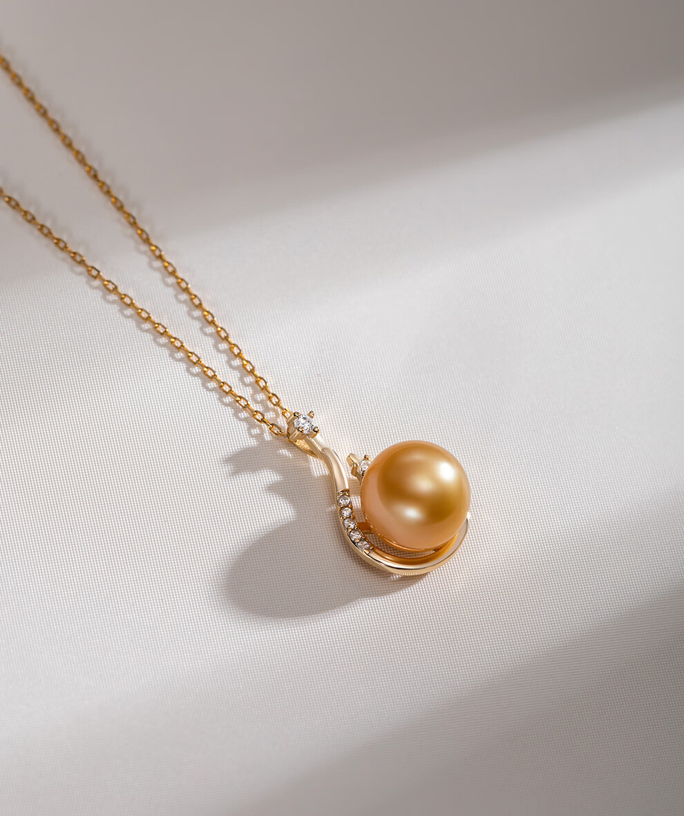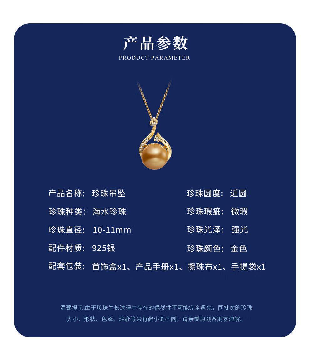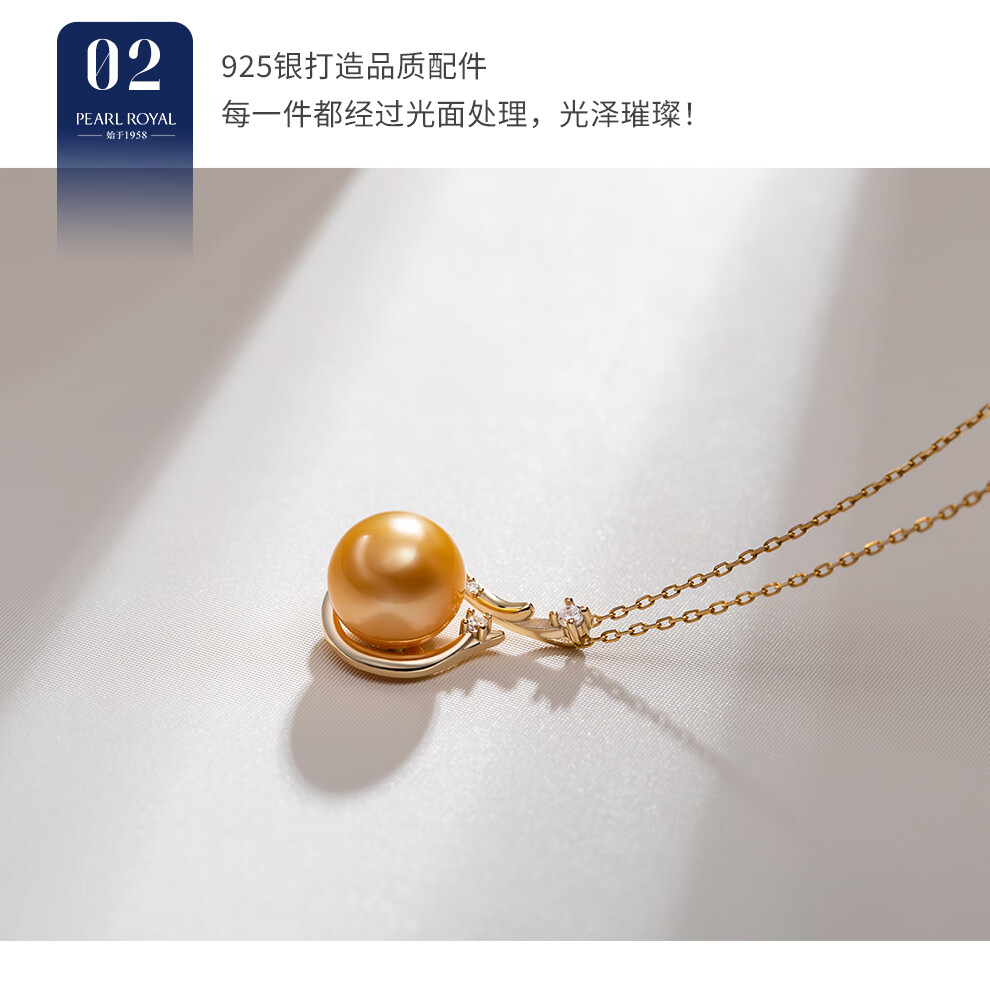 Nanzhu Palace gilt seawater pearl pendant 925 silver strong light nearly round South Sea gold beads light luxury and high-end sense 10.0-11.0mm
