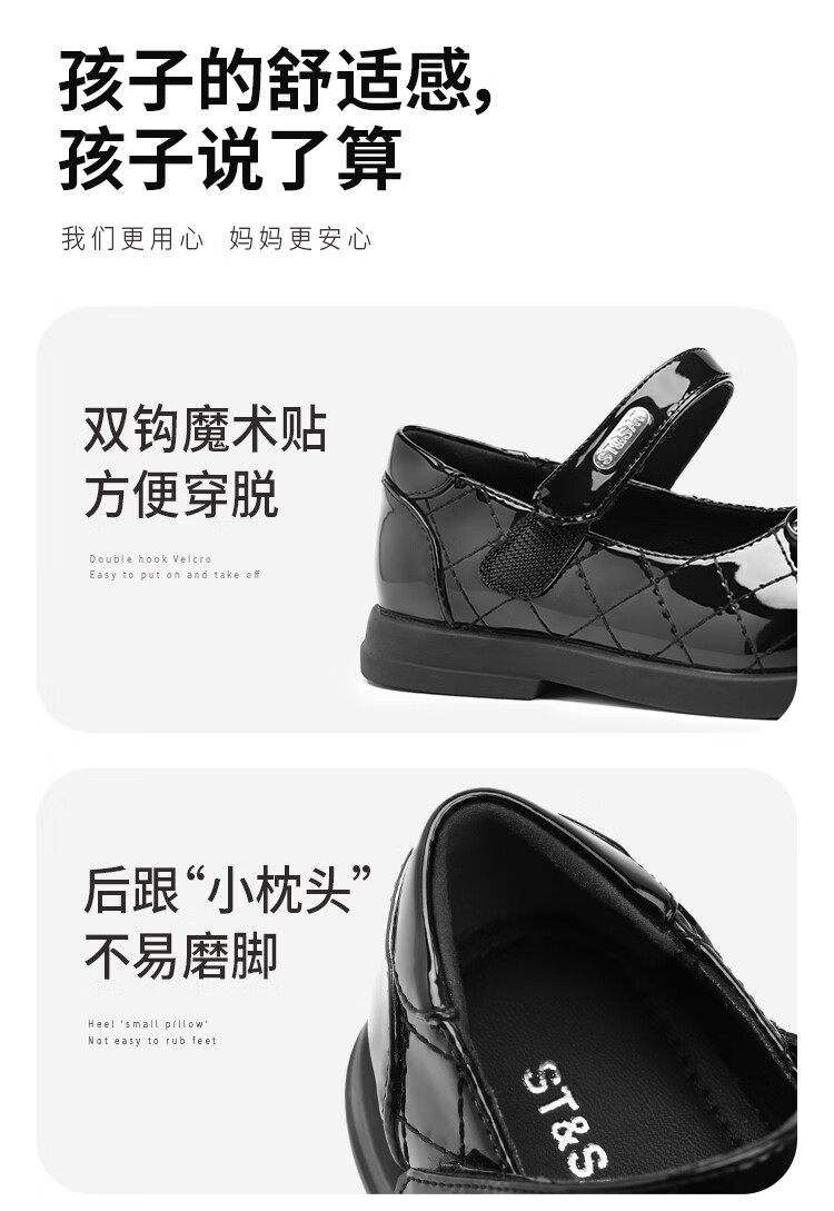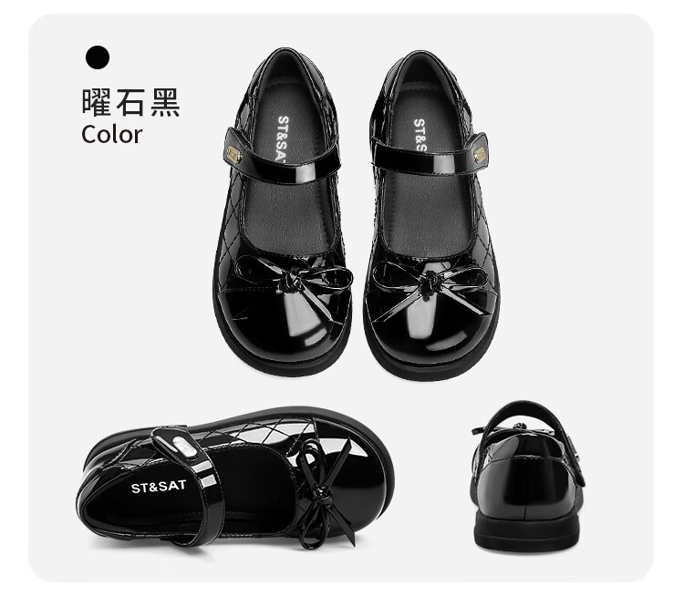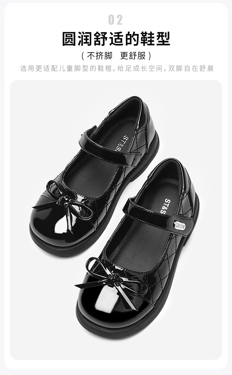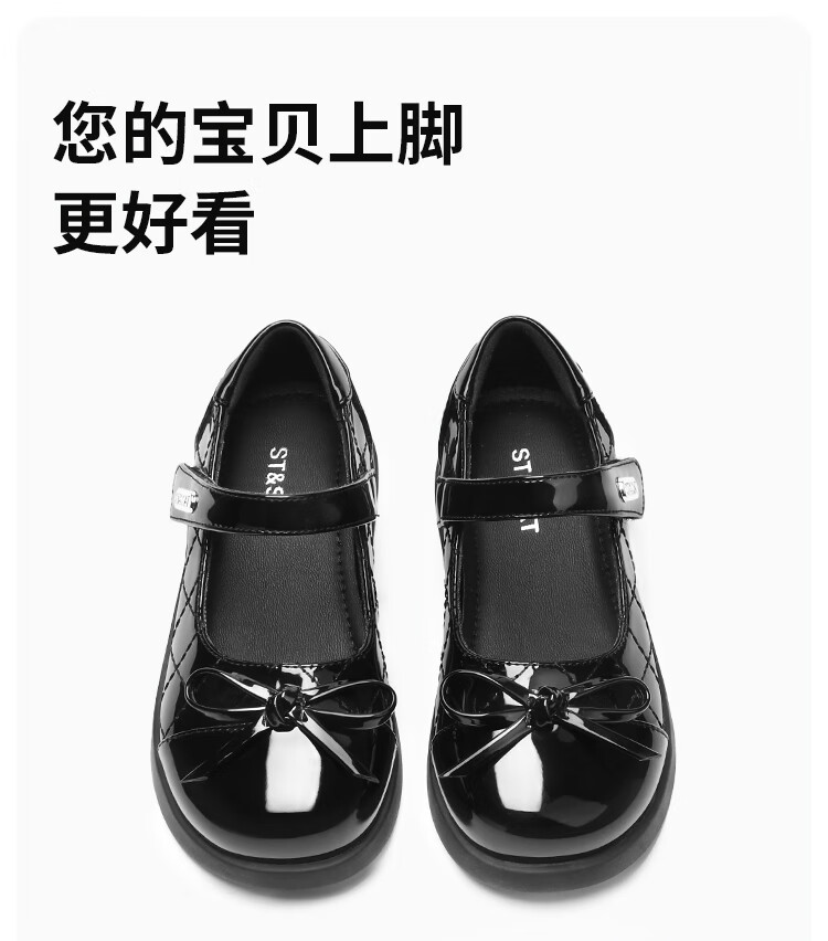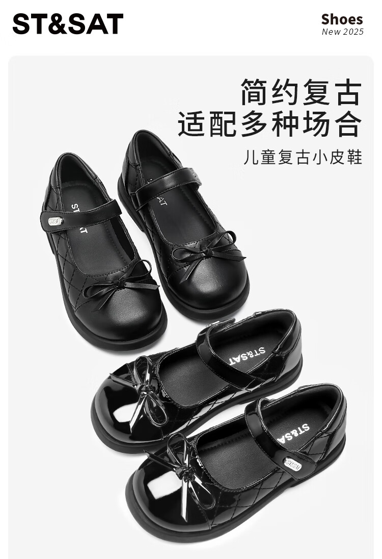 Saturday (St&Sat) Children's Shoes Girls Black Small Leather Shoes 2025 Spring and Summer New Classic Retro Princess Shoes Children's Shoes Performance Shoes Obsidian Black 32 Inner Length About 20.5cm