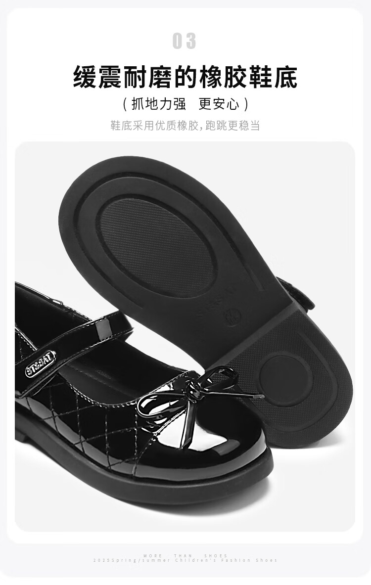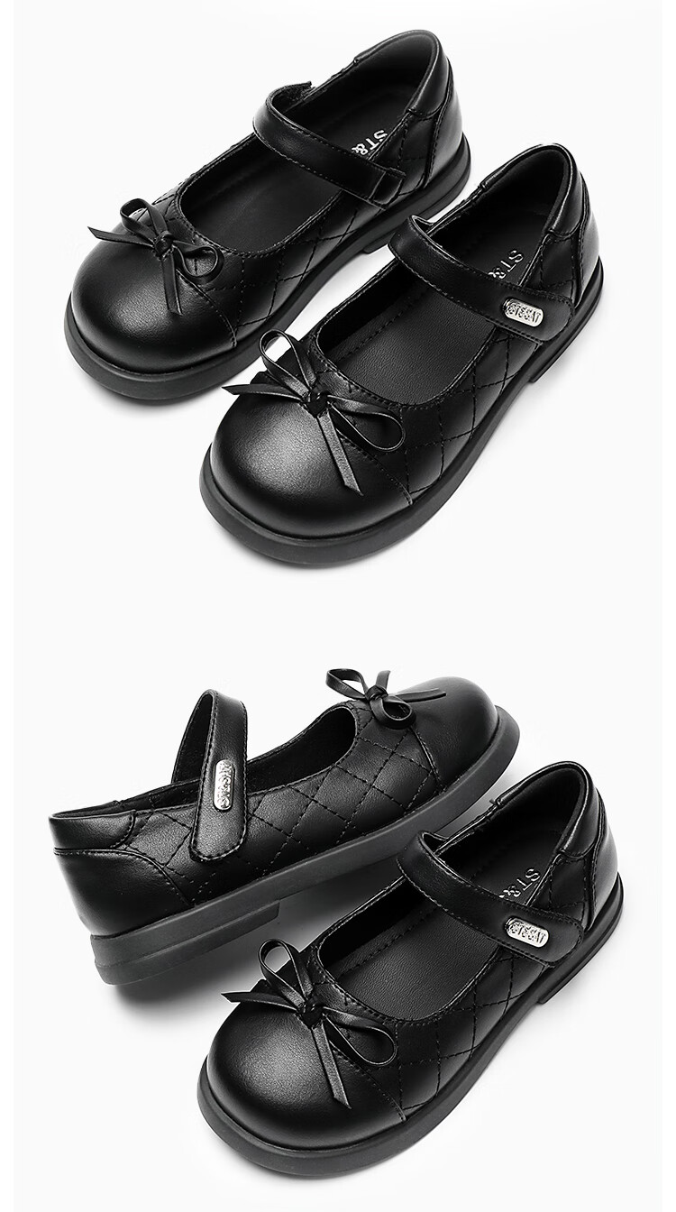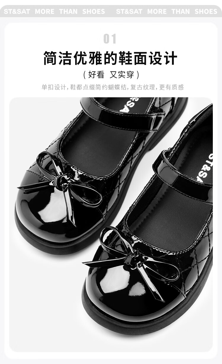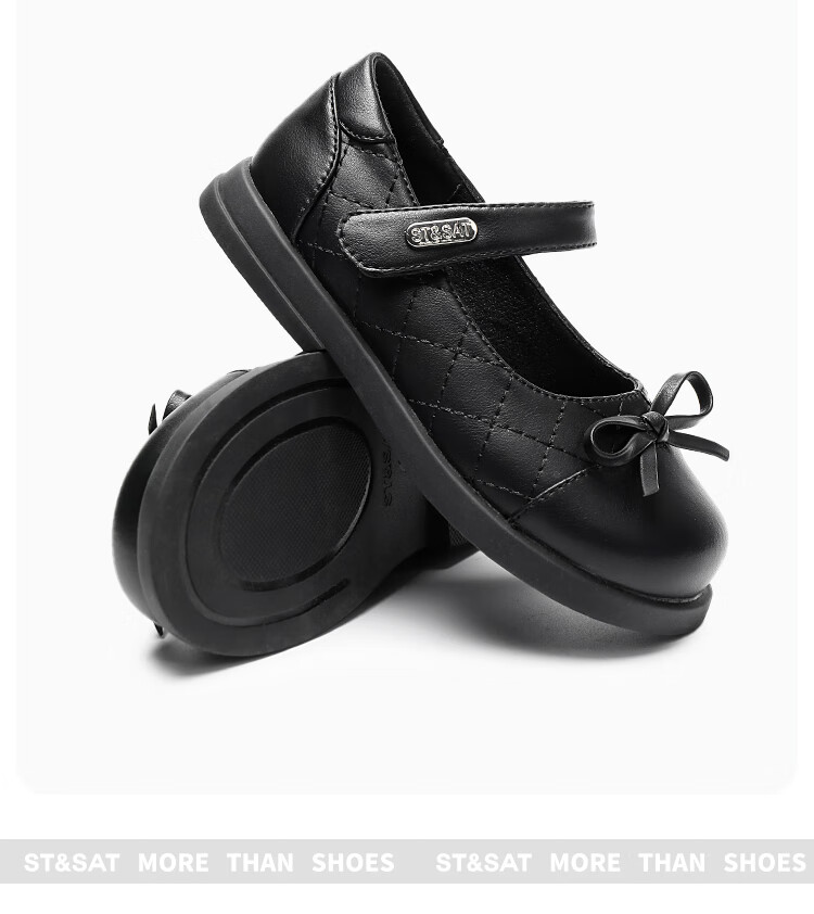 Saturday (St&Sat) Children's Shoes Girls Black Small Leather Shoes 2025 Spring and Summer New Classic Retro Princess Shoes Children's Shoes Performance Shoes Obsidian Black 32 Inner Length About 20.5cm
