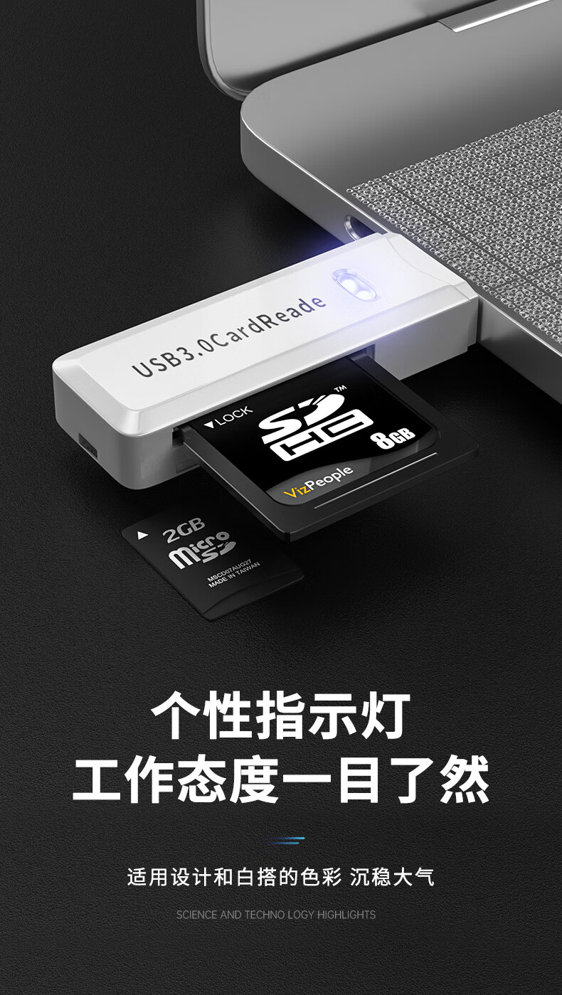 S THROPE Lecteur de carte USB 3.0 haute vitesse Lecteur de carte Type-C Téléphone portable Carte mémoire TF Caméra d'ordinateur Carte SD Adaptateur Android OTG Lecteur de carte multifonction deux-en-un USB2.0 + Carte de sécurité Type-C Image HD