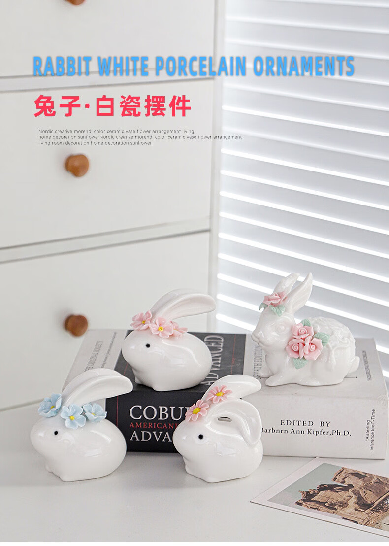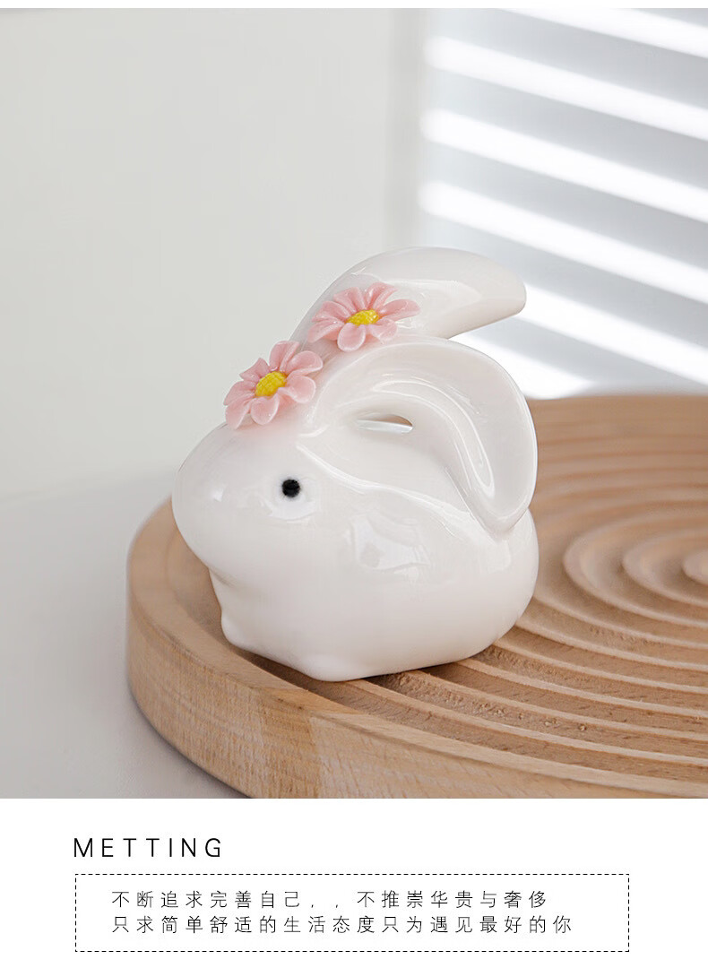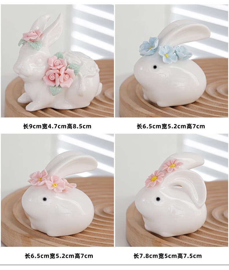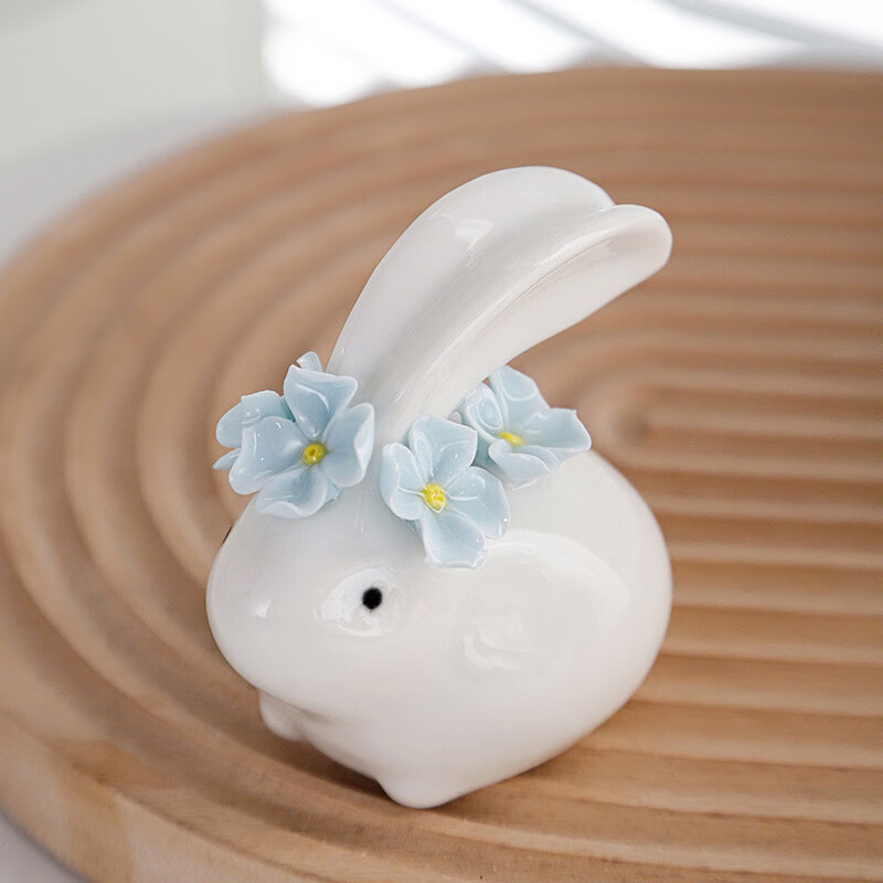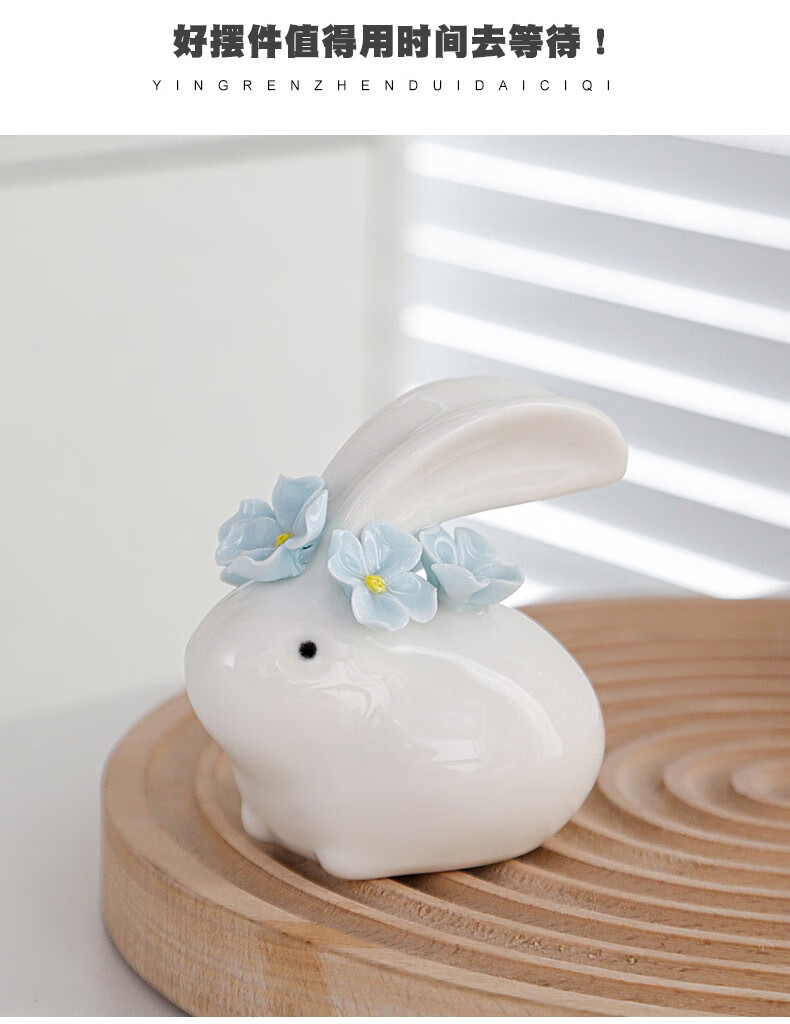 Ceramic decoration rabbit small ornaments home cute creative living room showcase office desk tea pet zodiac crafts pinch flower bunny blue