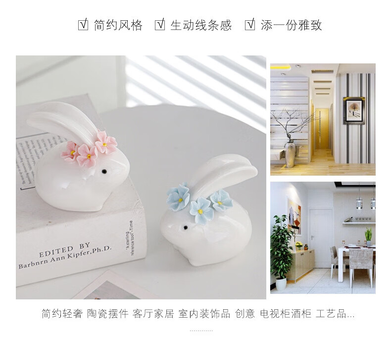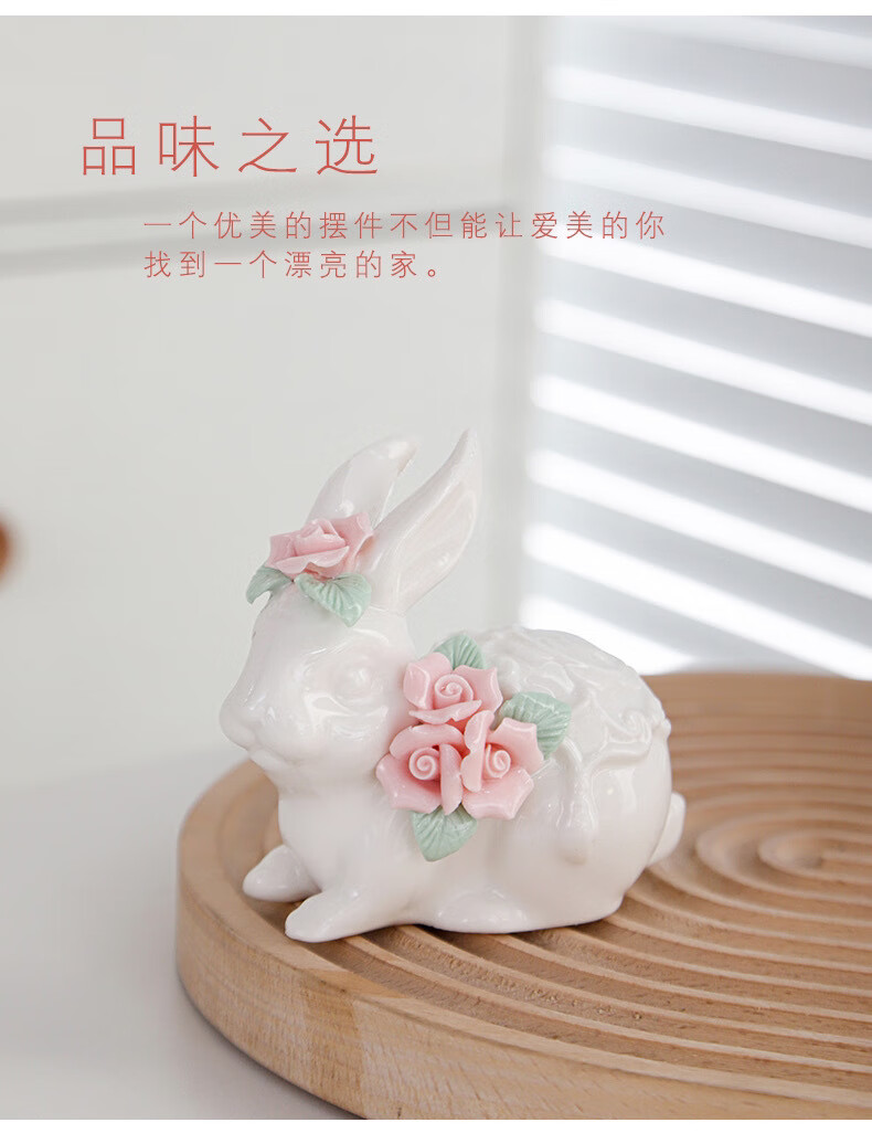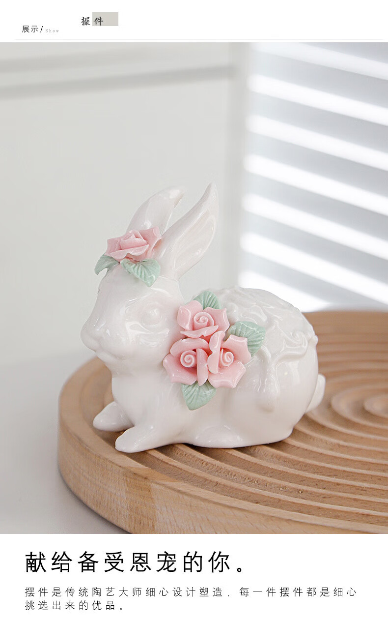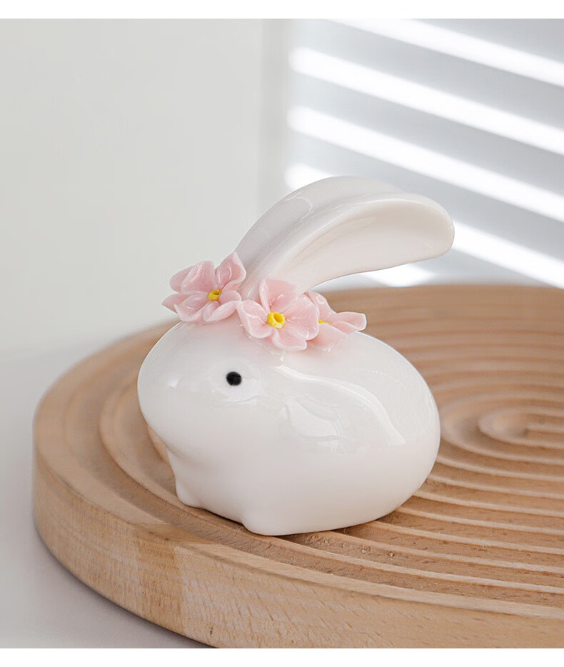 Ceramic decoration rabbit small ornaments home cute creative living room showcase office desk tea pet zodiac crafts pinch flower bunny blue