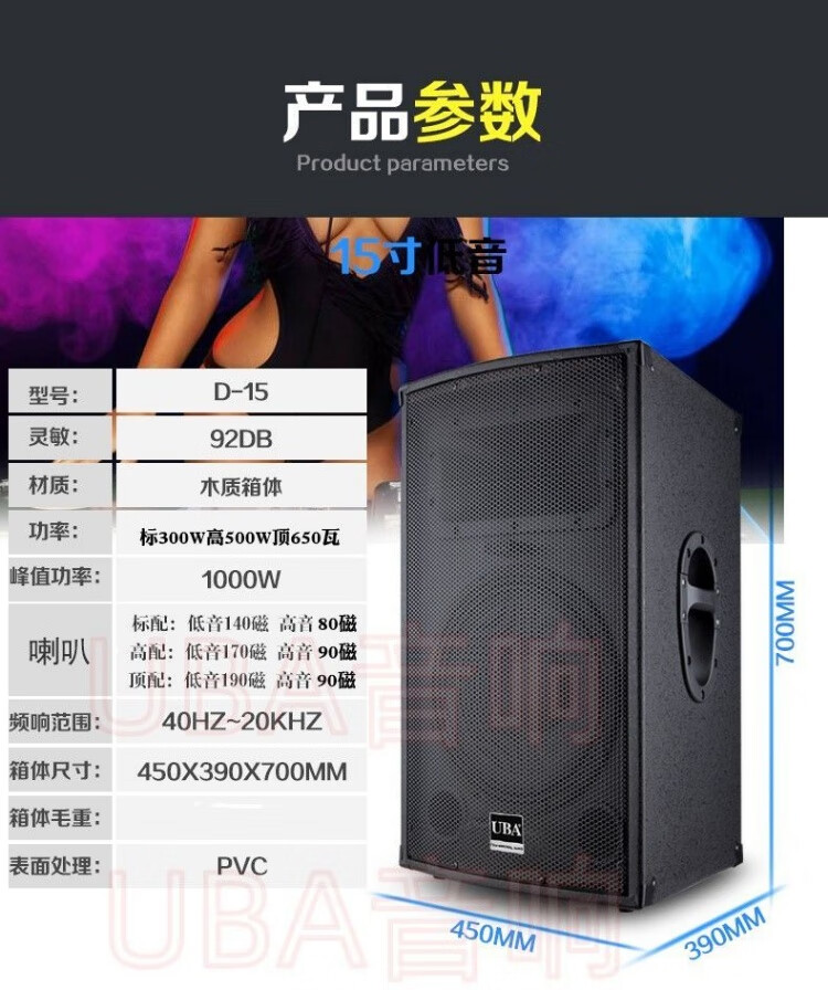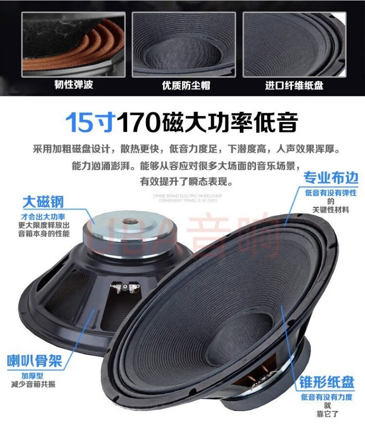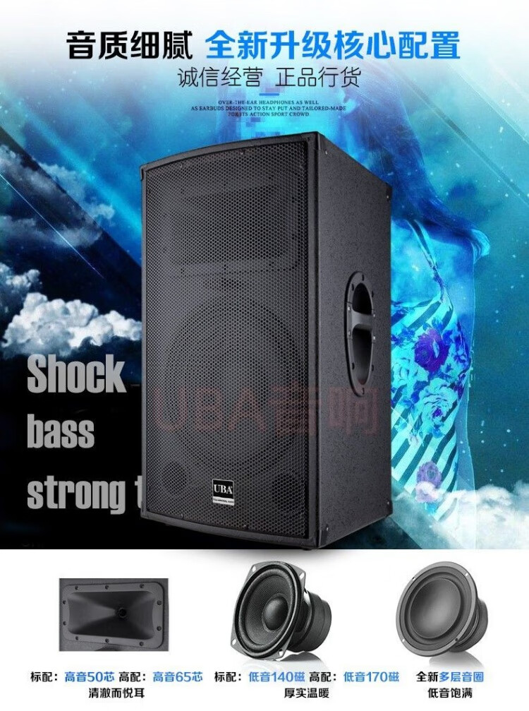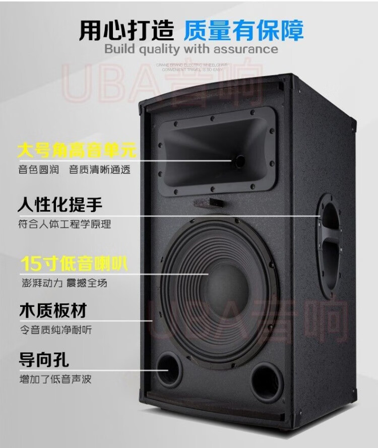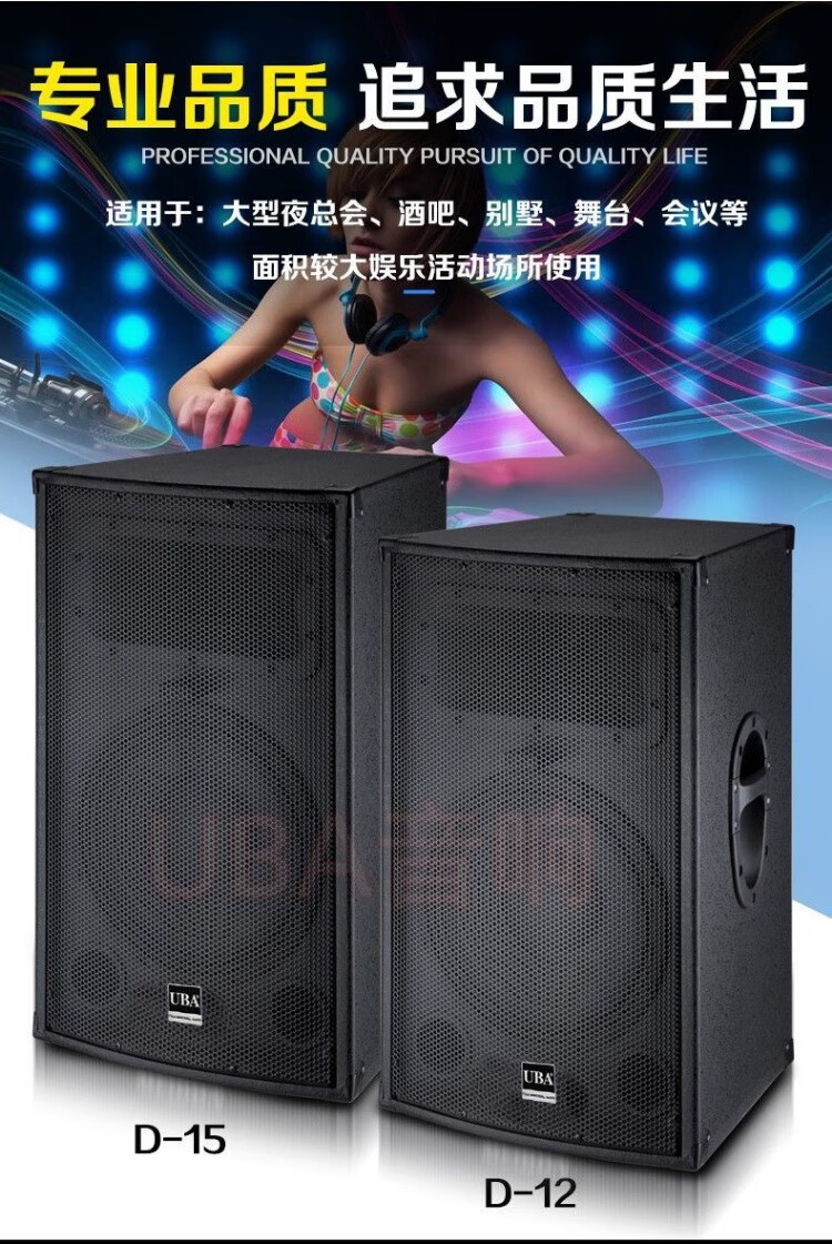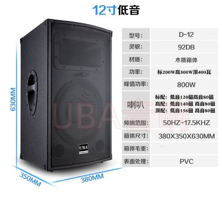 UBA professional high-power 1215-inch audio stage wedding outdoor karaoke shop conference square dance performance speaker high-end 12-inch audio pair (2 pieces) + wire