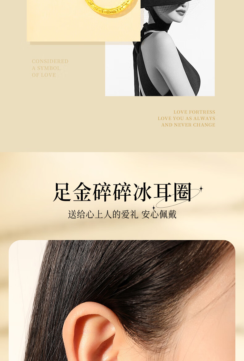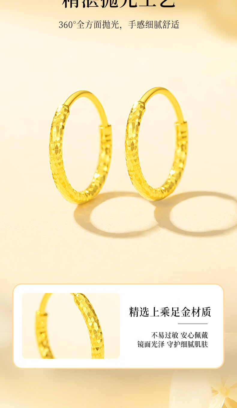 CHINA GOLD Crushed Ice Gold Earrings Women's 999 Pure Gold Earrings Buckle Earrings Birthday Gift for Girlfriend and Wife Gold Weight Approximately 0.9g Pure Gold Crushed Ice Earrings