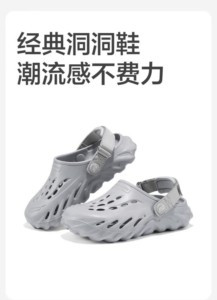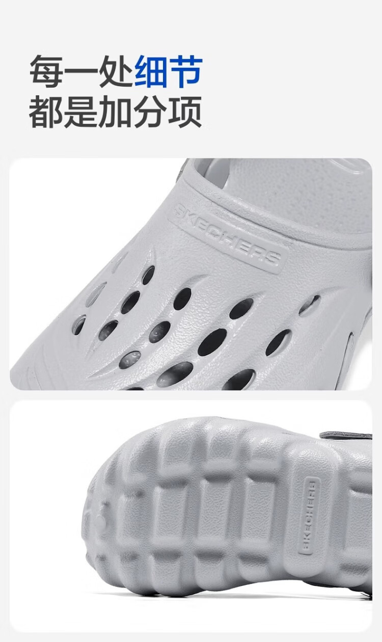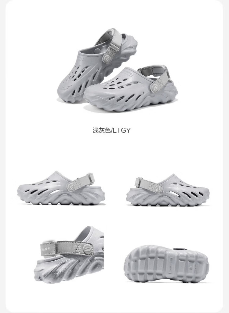 Skechers Children's Bubble Shoes Boys Hydrophobic Lightweight Beach Crocs Summer Middle and Large Children's Sandals 406645L Boys/Light Gray/LTGY 36