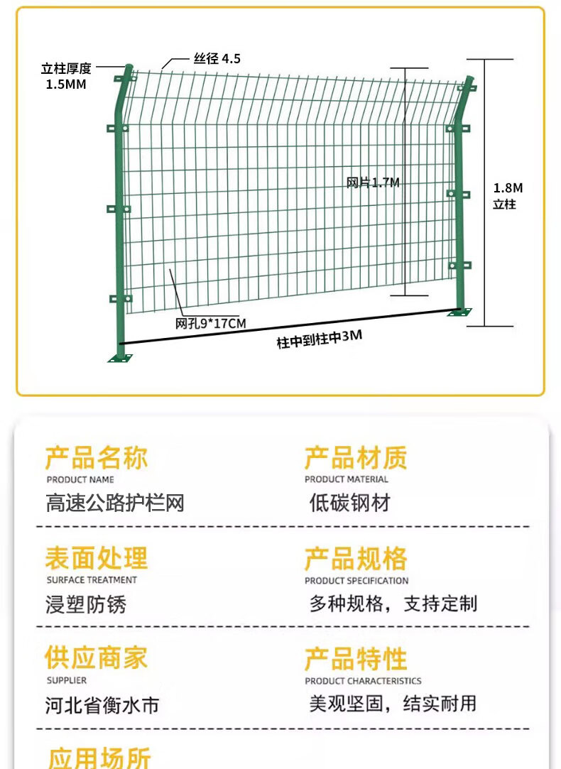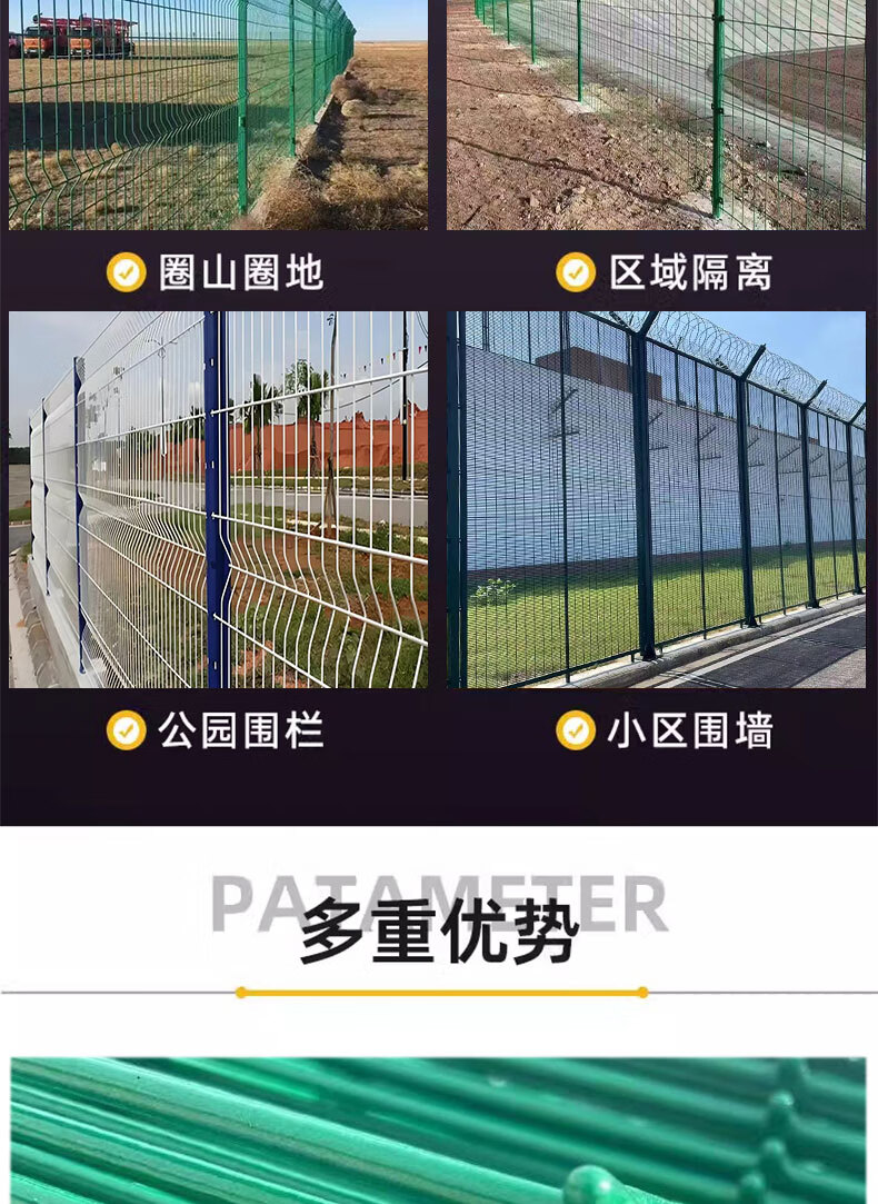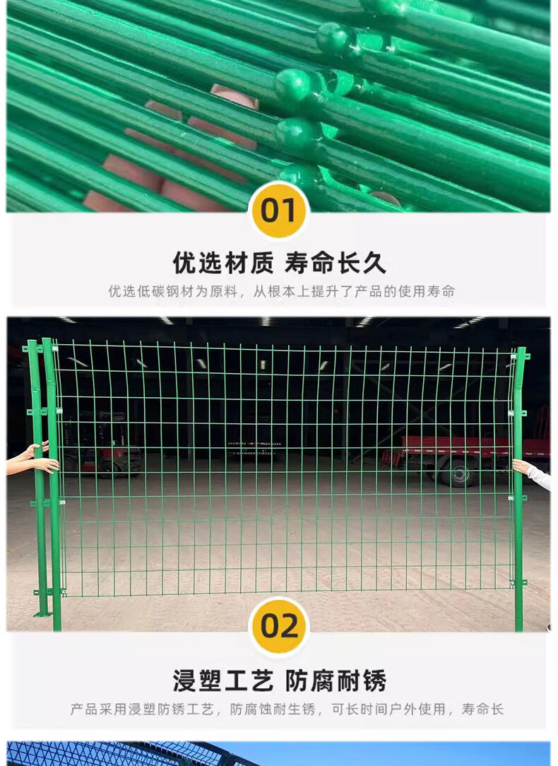 Autobahn-Leitplankennetz, doppelseitiger Drahtzaun, Obstgartenzaun, Stacheldrahtzaun, Einfriedung, Flussfischteich-Schutznetz, 2 hohe 3 Meter lange Drähte mit einer Dicke von 5,0 mm, ein Netz und eine Säule