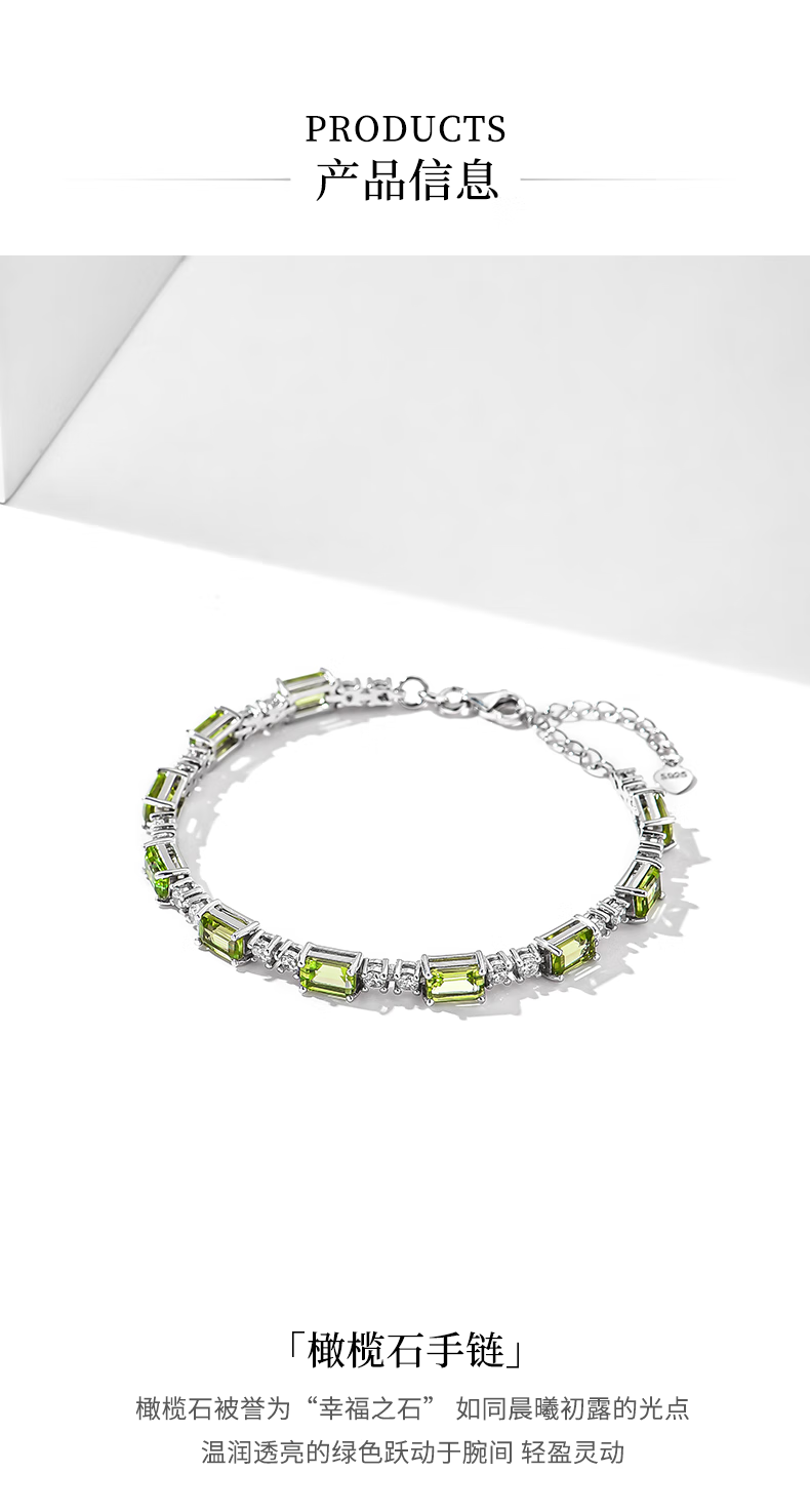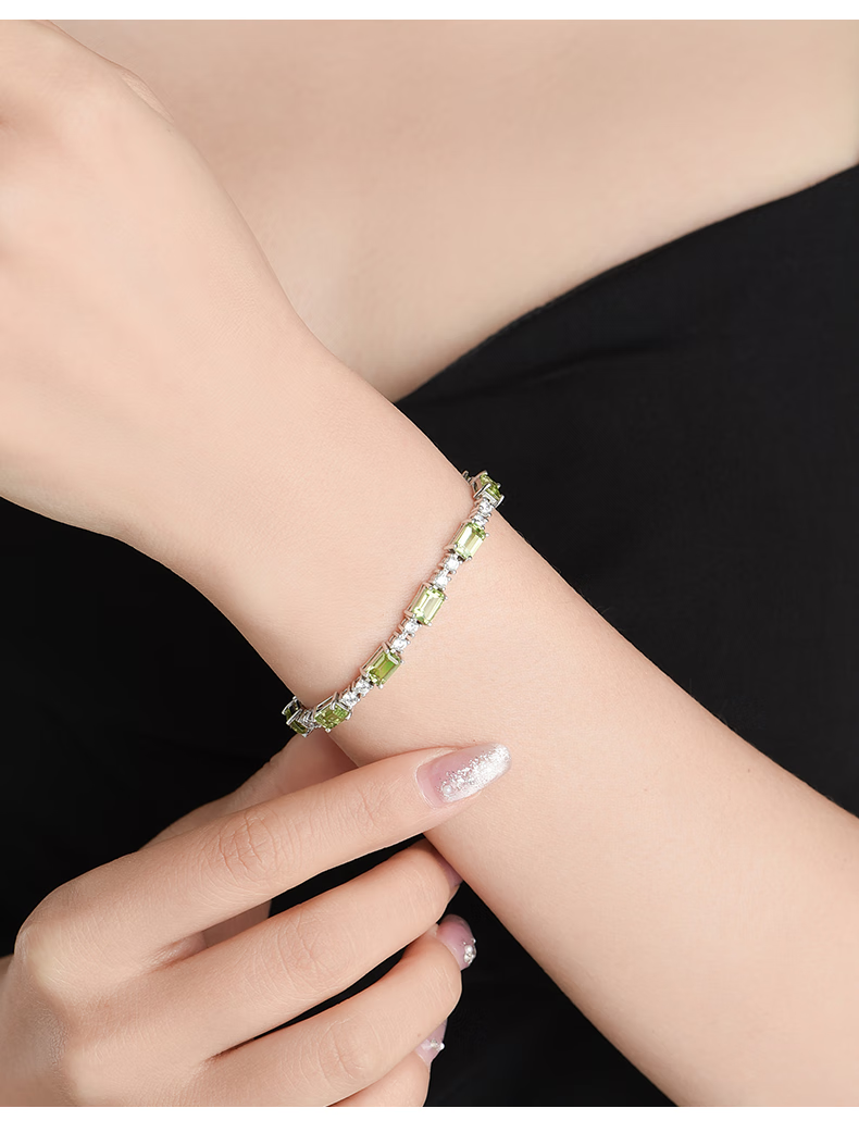 HKHL with certificate 925 silver natural peridot bracelet for women emerald lucky bracelet birthday gift natural peridot bracelet certificate + light luxury gift box