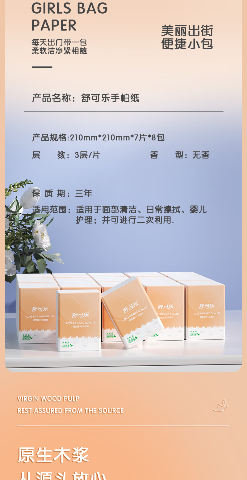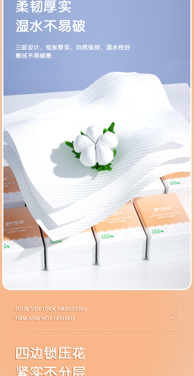 Limited time low price Shukola full box handkerchief paper small package tissue paper toilet paper napkin wet water toughness 3 layers 7 pieces * 10 packs
