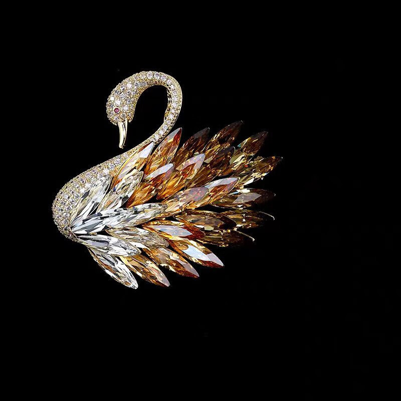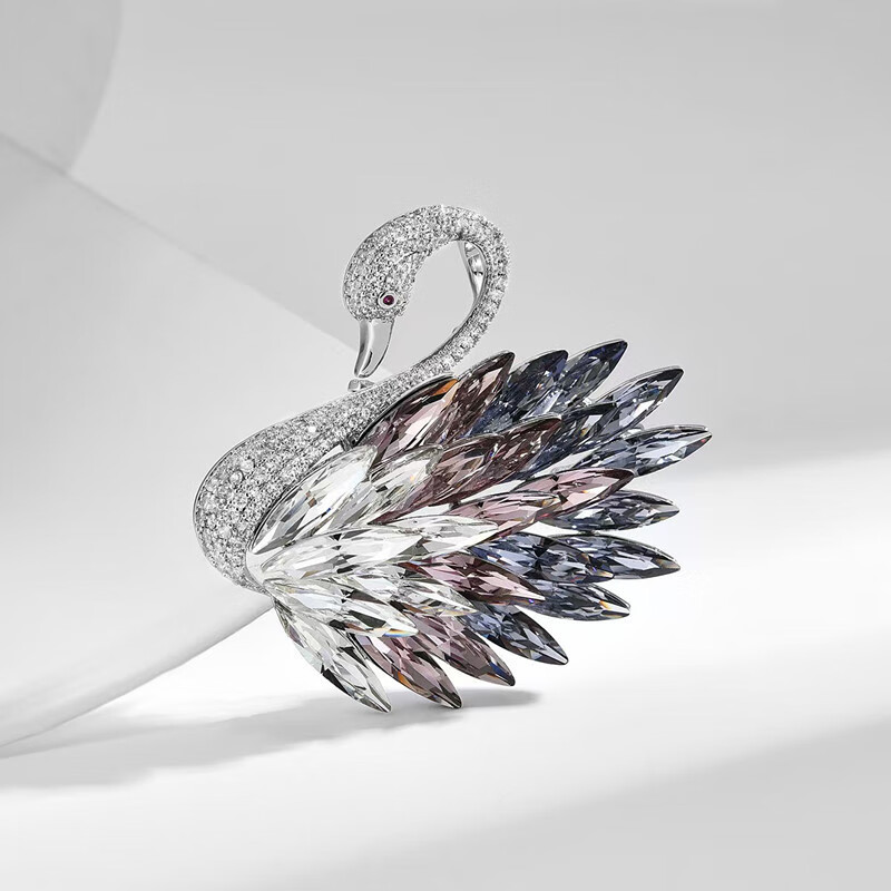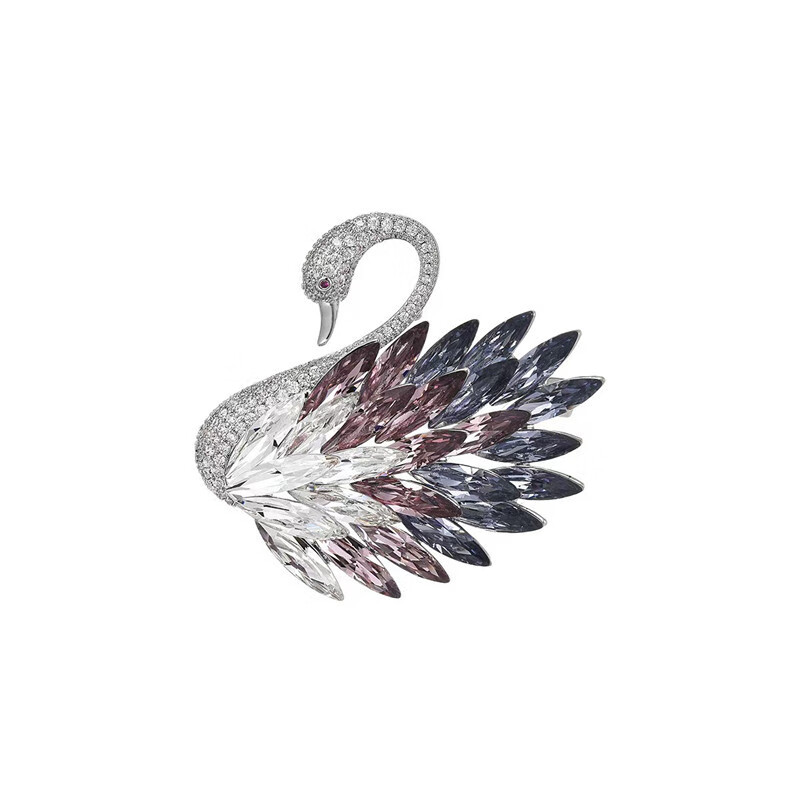 MOYAN crystal swan brooch, elegant and diamond-filled brooch, fashionable and atmospheric suit jacket accessory pin, purple