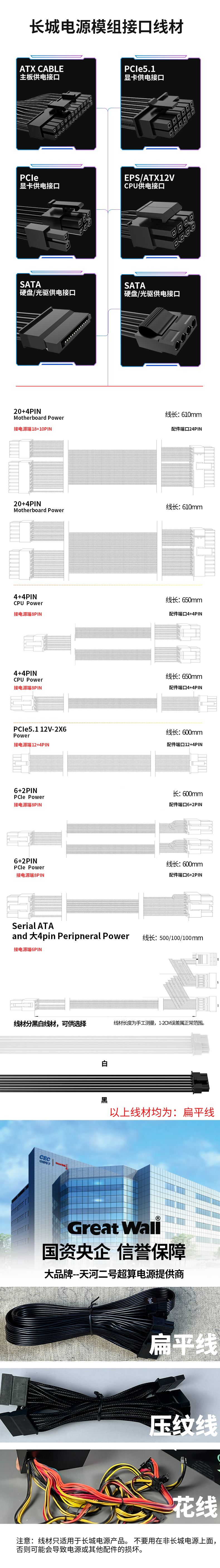 Great Wall (Great Wall power interface module cable) computer motherboard 24pin power supply black flat cable 24-pin power supply cable 6+2PIN graphics card cable 1 minute 2 (black) 6+2