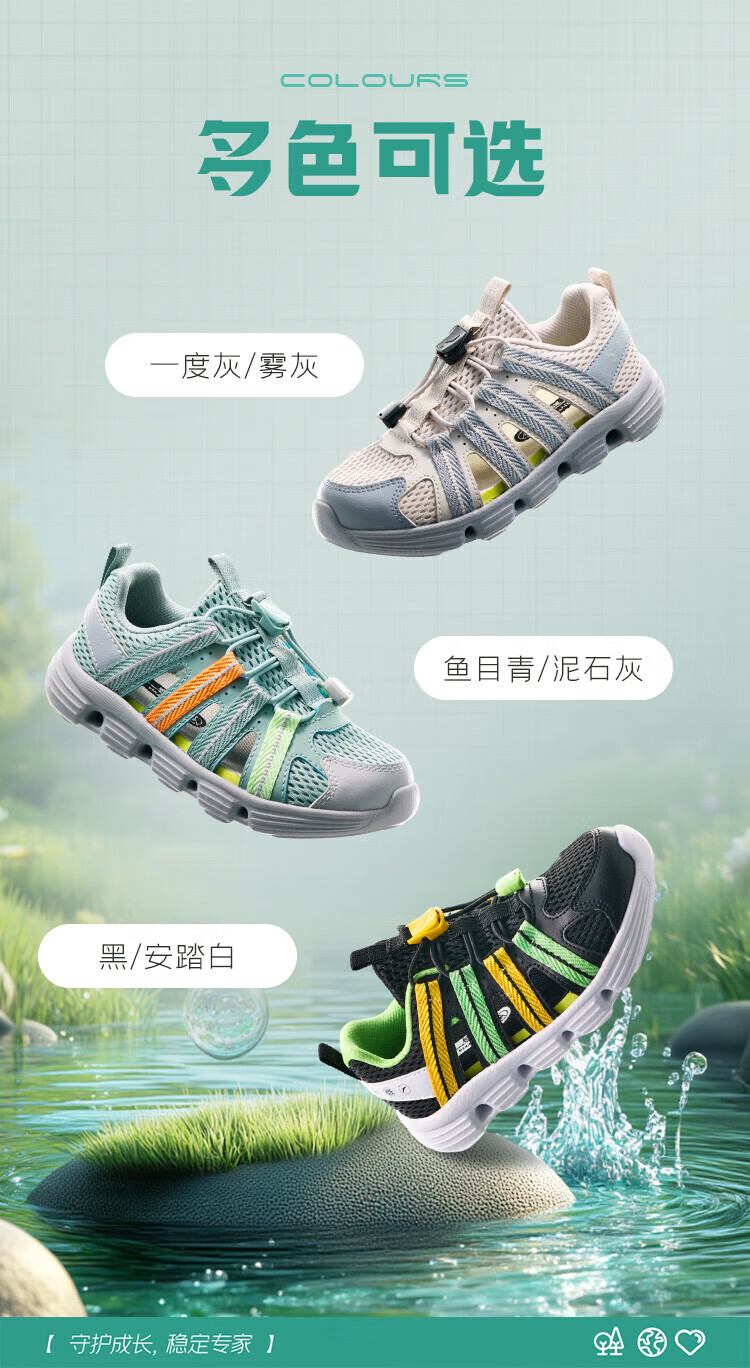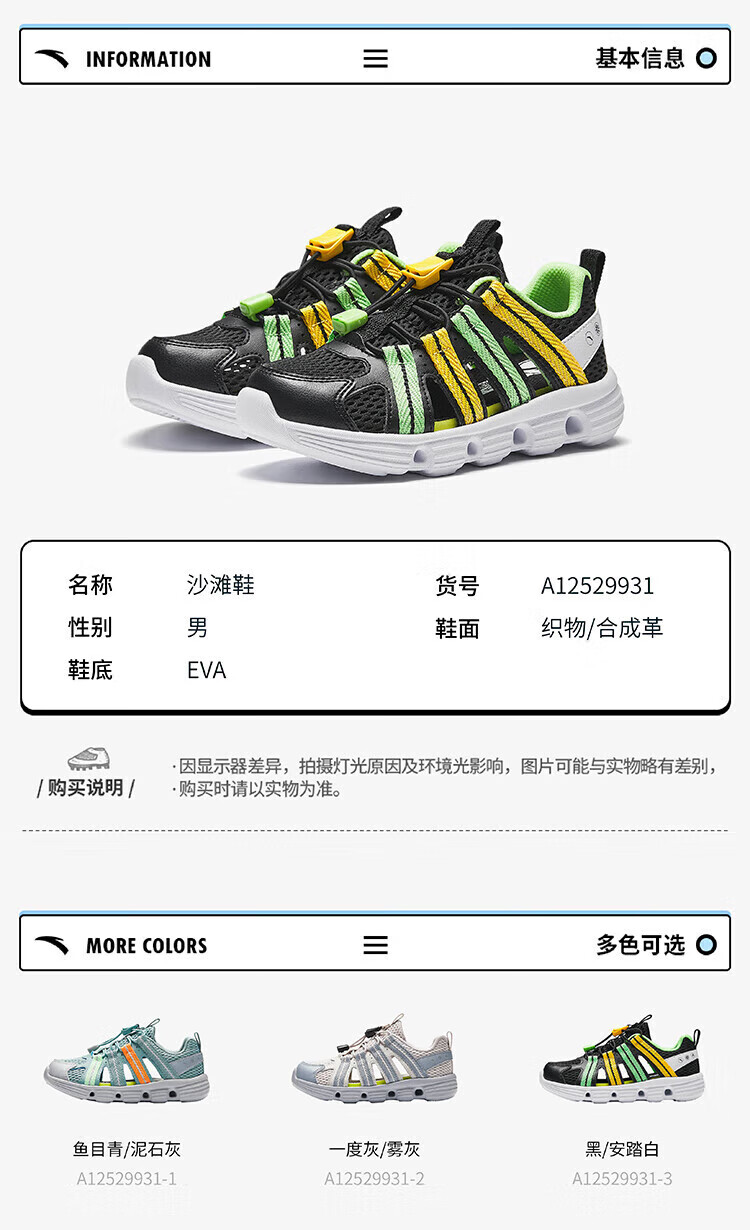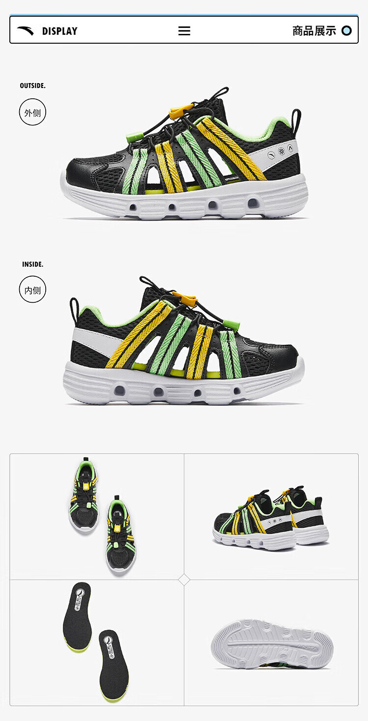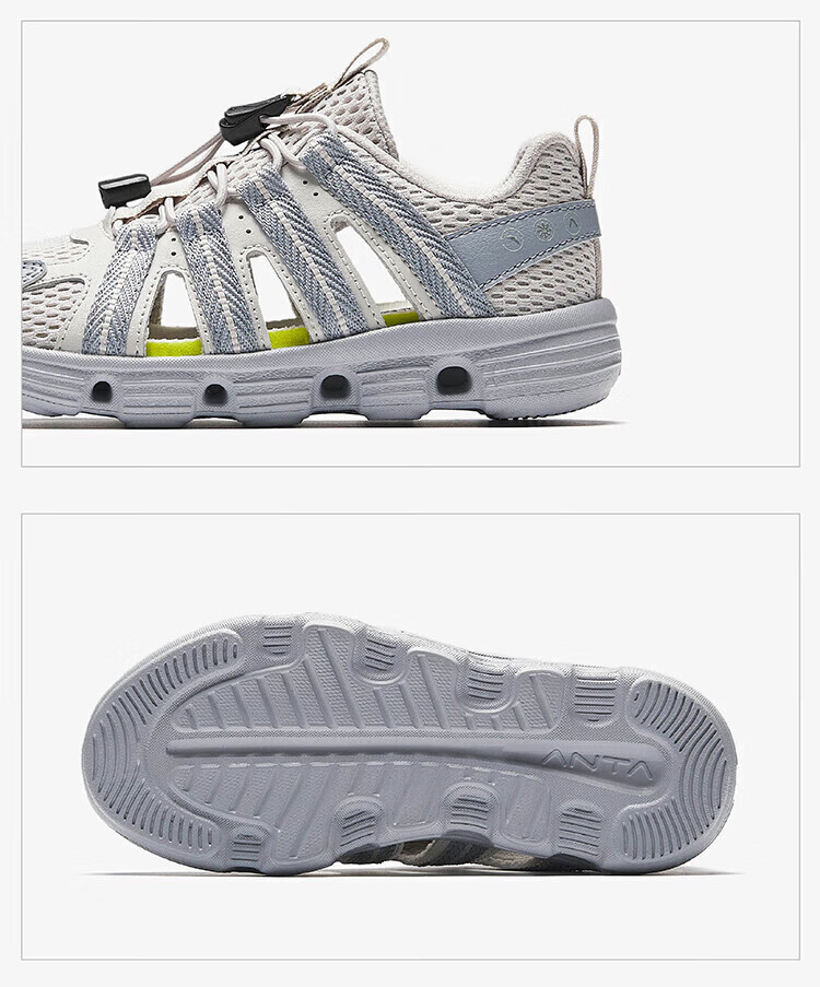 Anta children's boys' sandals beach shoes summer new outdoor Baotou breathable water and land river shoes beach shoes black/Anta white-3 30 size