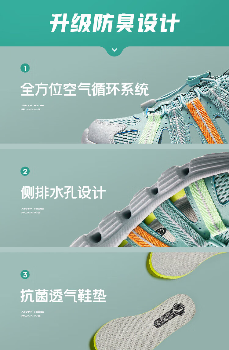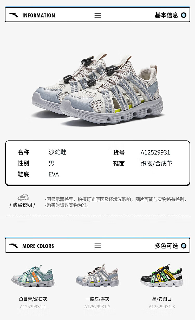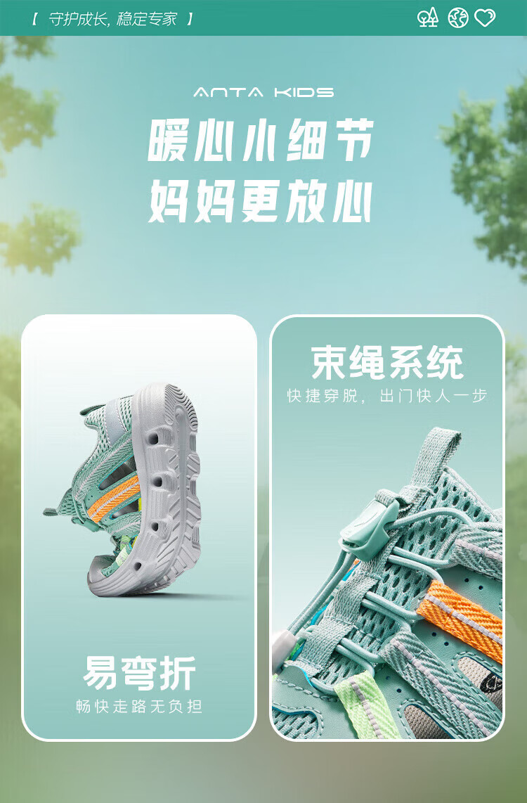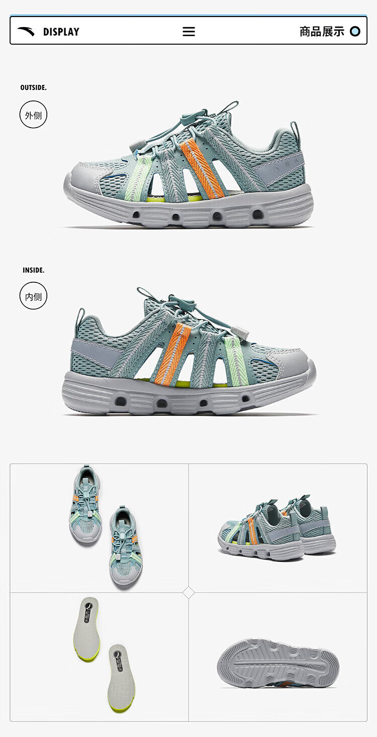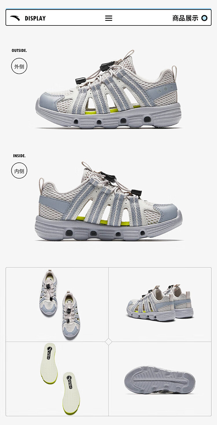 Anta children's boys' sandals beach shoes summer new outdoor Baotou breathable water and land river shoes beach shoes black/Anta white-3 30 size