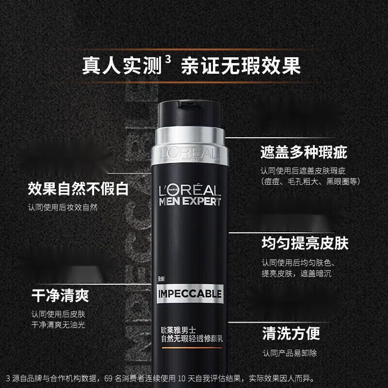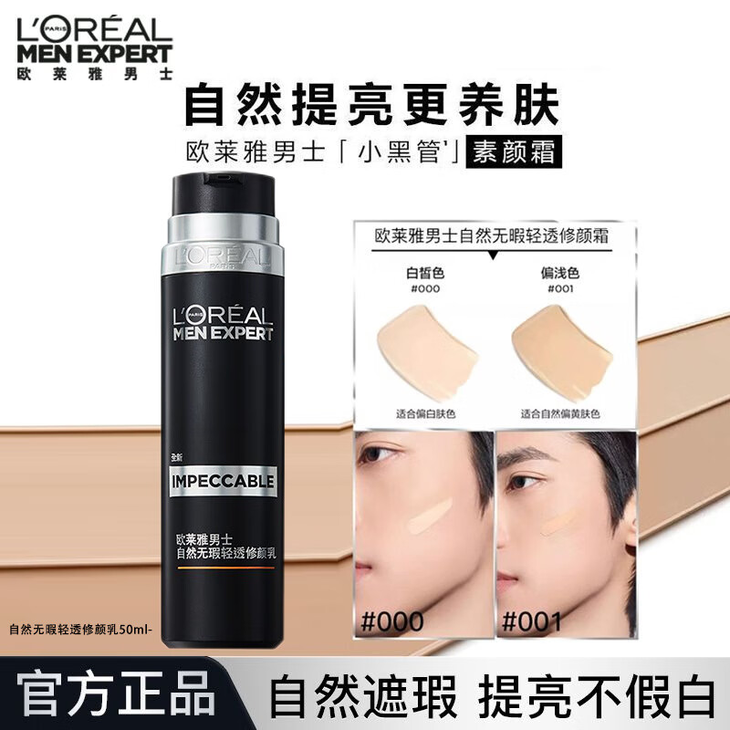 L'OREAL Men's Special No-Made Cream Repair Cream Small Black Tube Concealer Natural Flawless Lightweight Repair Cream #001 Light Color 50