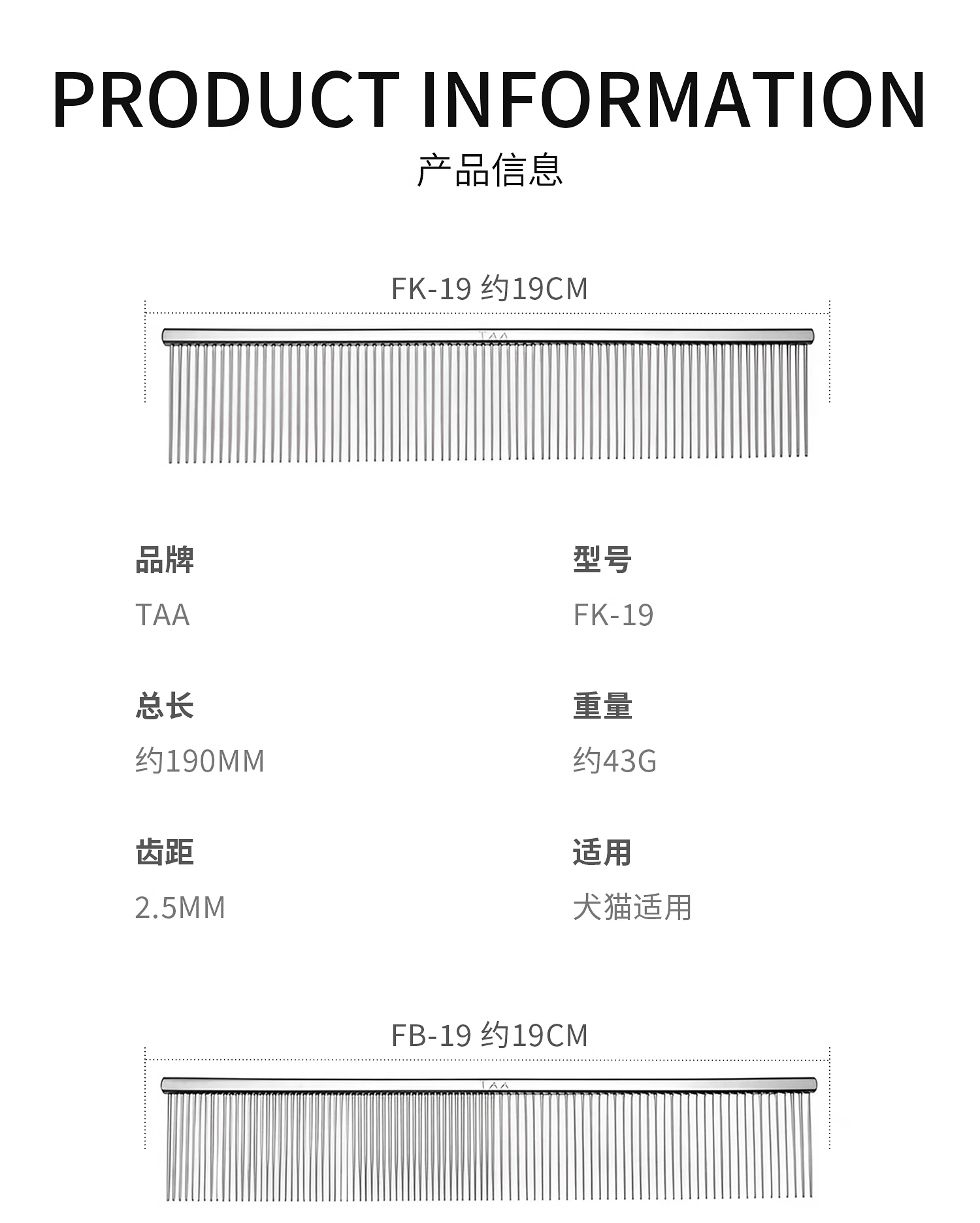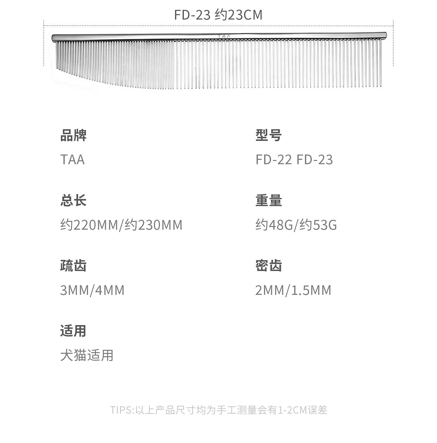 It it TAA pet grooming double-tooth straight crescent comb hair picking beautician FD22/23FB19/23FK19 FK-19 (19cm)