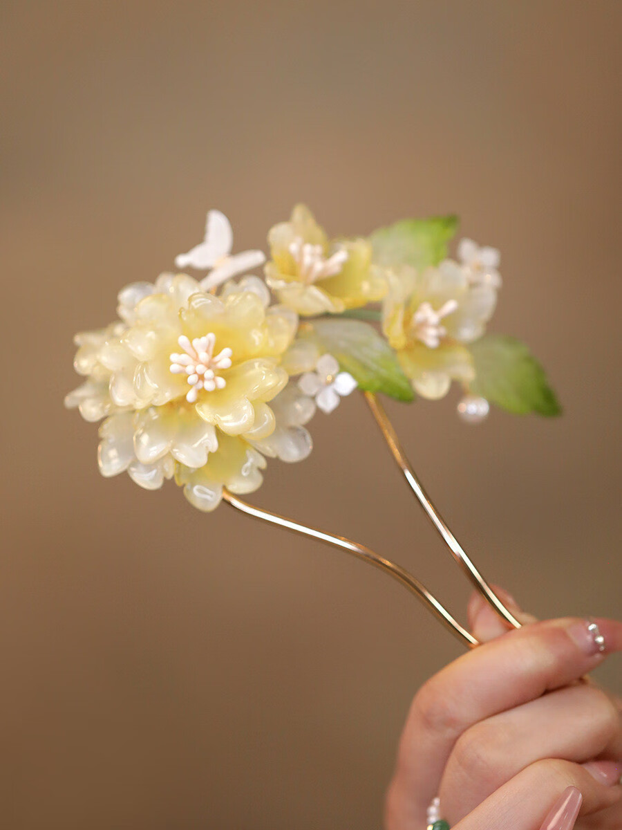 Lingmeng U-shaped hairpin, new Chinese style glazed peony flower hairpin, women's updo hairpin, cheongsam national style accessories, glazed peony flower U-shaped hairpin 1 piece