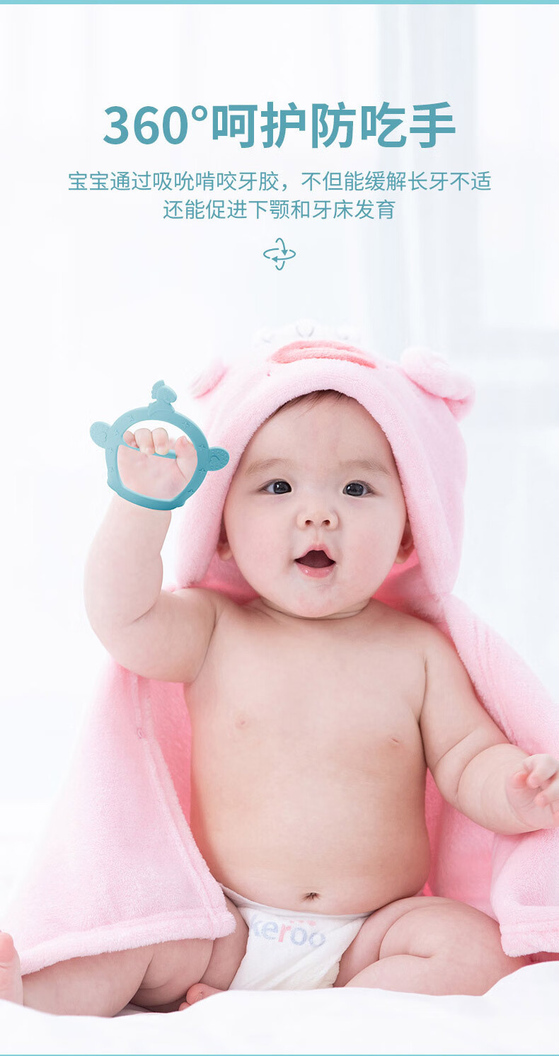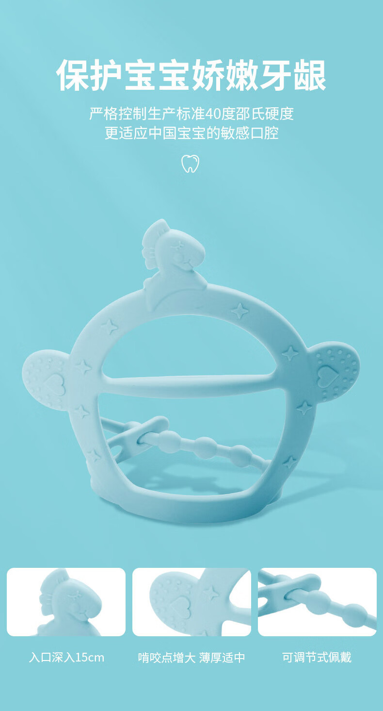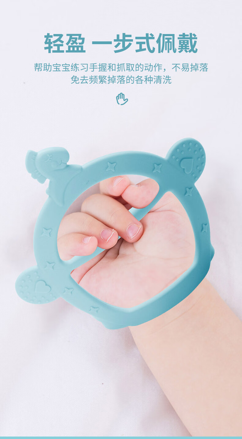 Baby silicone teething stick, baby bracelet, tooth-fixing teether, anti-eating hand gloves, food-grade soothing and chewing toys, food-grade teething bracelet - blue 1 pack