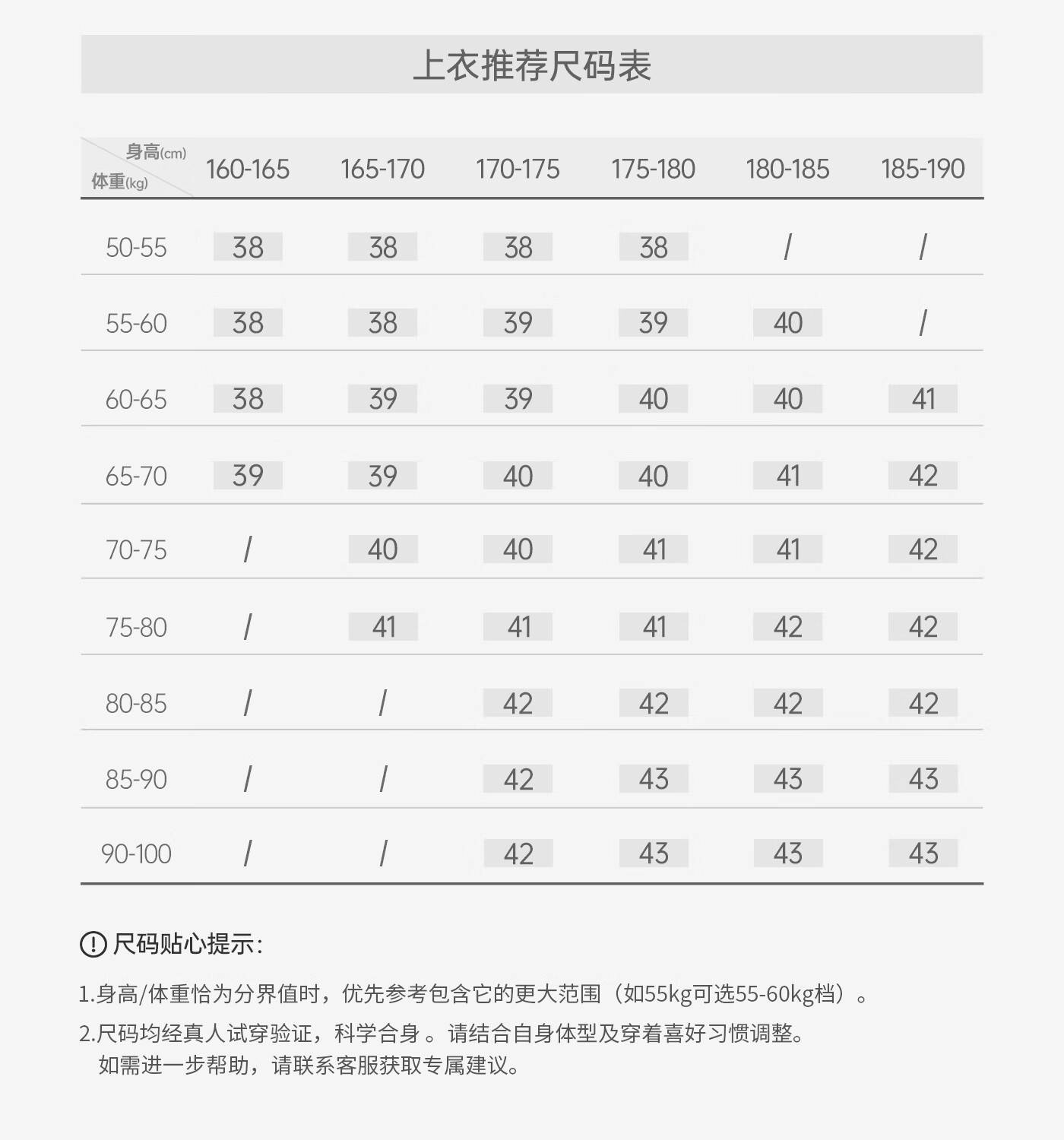 China (cm) 160-165/84-86 165-170 / 88-90 167-172 / 92-96 168-173 / 98-102 170-176 / 106-110