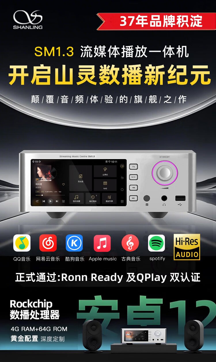 SHANLING SM1.3 Android digital broadcast decoder all-in-one HiFi high-fidelity audiophile-grade digital amplifier player CD machine decoder Space Silver Inquiry and get another 300 yuan off Ready stock in seconds