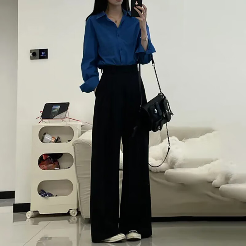 Ono Qitian Klein blue long-sleeved shirt for women, popular layered shirt, niche French loose coat top, loose shirt, blue 90-120Jin Jin is equal to 0.5 kg
