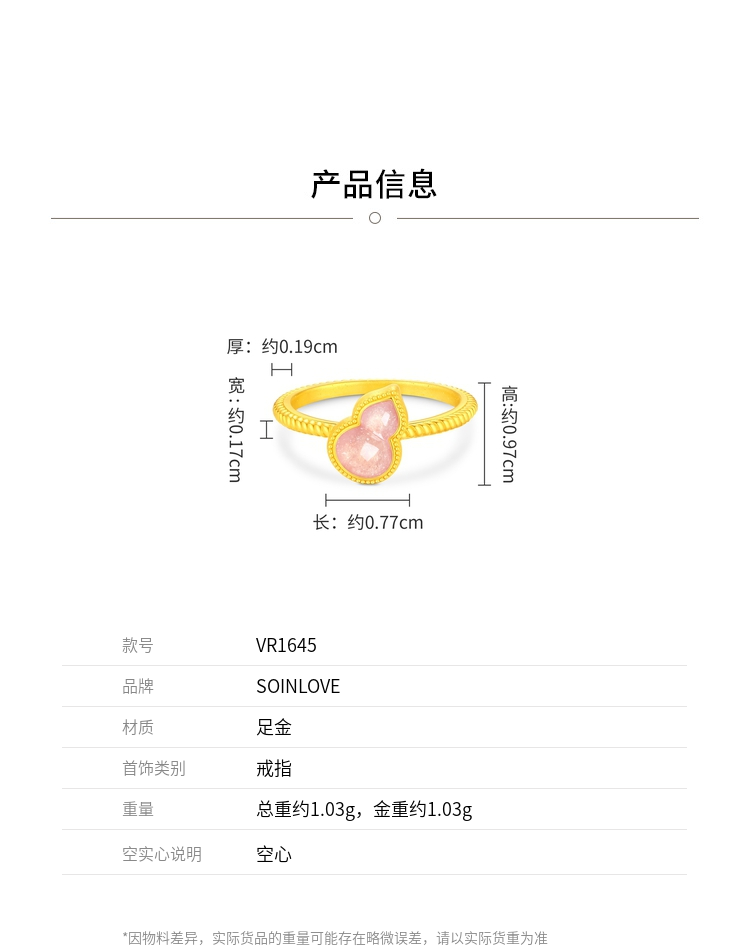 Chow Tai Fook SOINLOVE Honey Pink Gold Ten Miles Red Makeup Fulu Gourd Gold Pure Gold Ring Girl Birthday Gift VR1645 No. 12