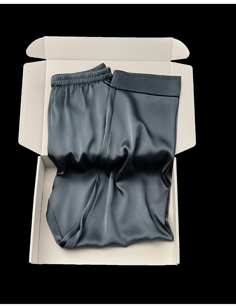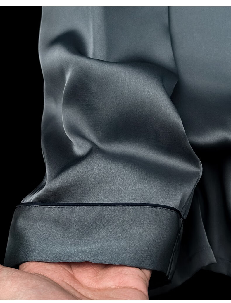 Modal silk pajamas men's long-sleeved spring and autumn high-end simple solid color big-name style loose casual home wear gift box set gray blue short sleeves + trousers 2XL recommended 160Jin Jin equals 0.5kg -180Jin Jin equals 0.5kg