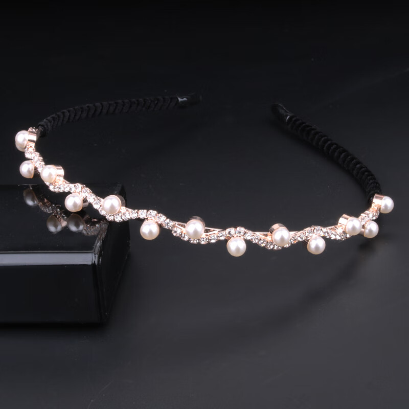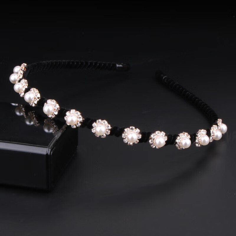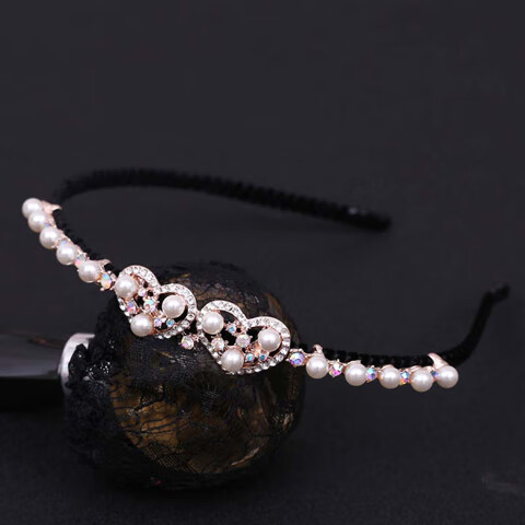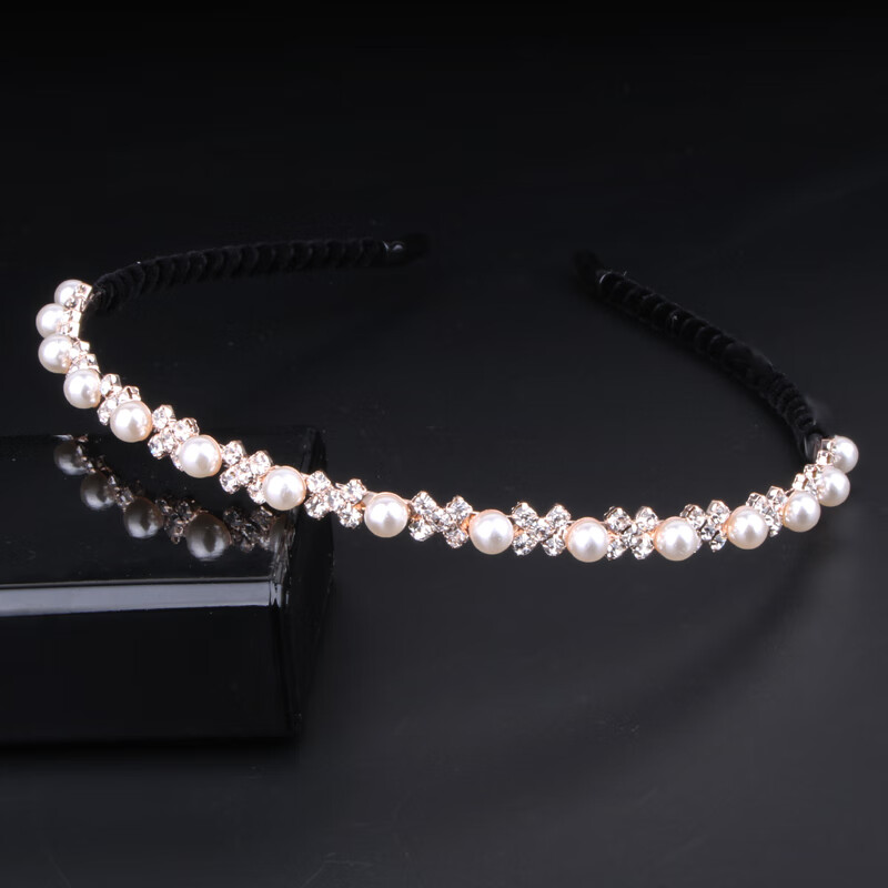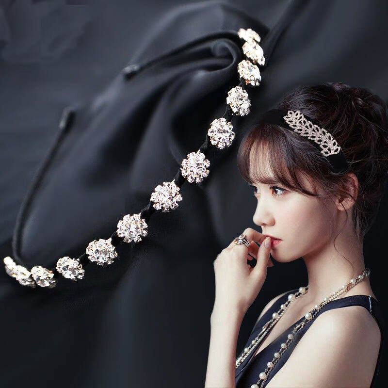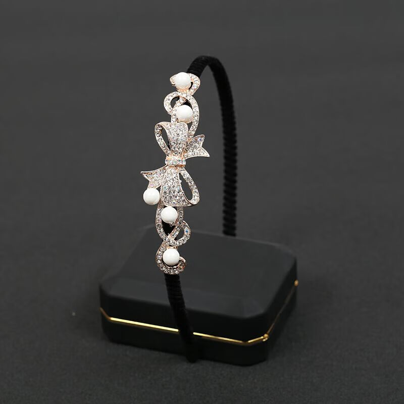 Yunru 520 gift to girlfriend, Korean style rhinestone pearl bow thin hair hoop, Korean crystal bow tie, bunny ears hair, baby's breath