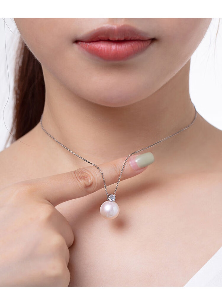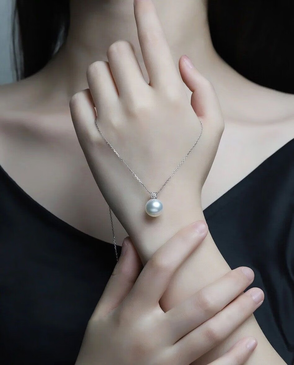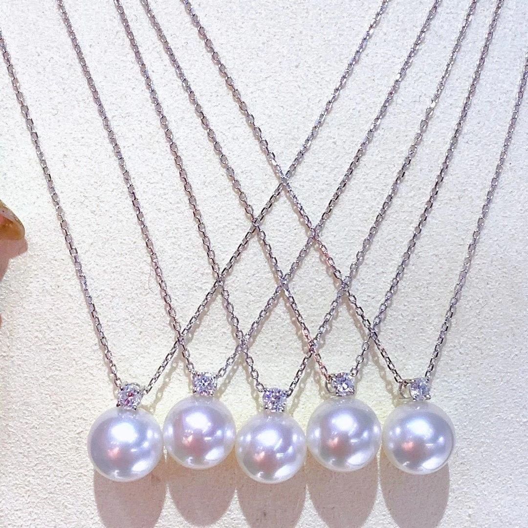 Yage 925 silver Princess Australian white pearl pendant for women with diamonds Princess Diana pearl clavicle chain pendant French light luxury fashion 12mm cold light Australian white temperament goddess
