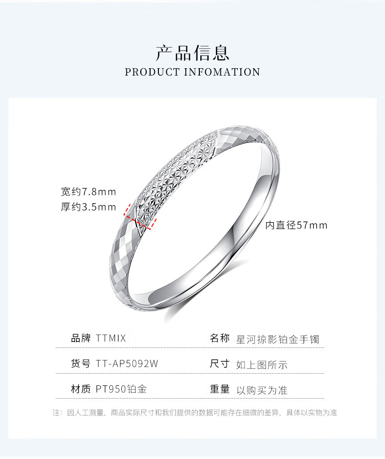TTMIX women's pt950 platinum bracelet with temperament, rhombus-shaped platinum bracelet, birthday gift, 58mm, weight 28.76g, width 7.7mm
