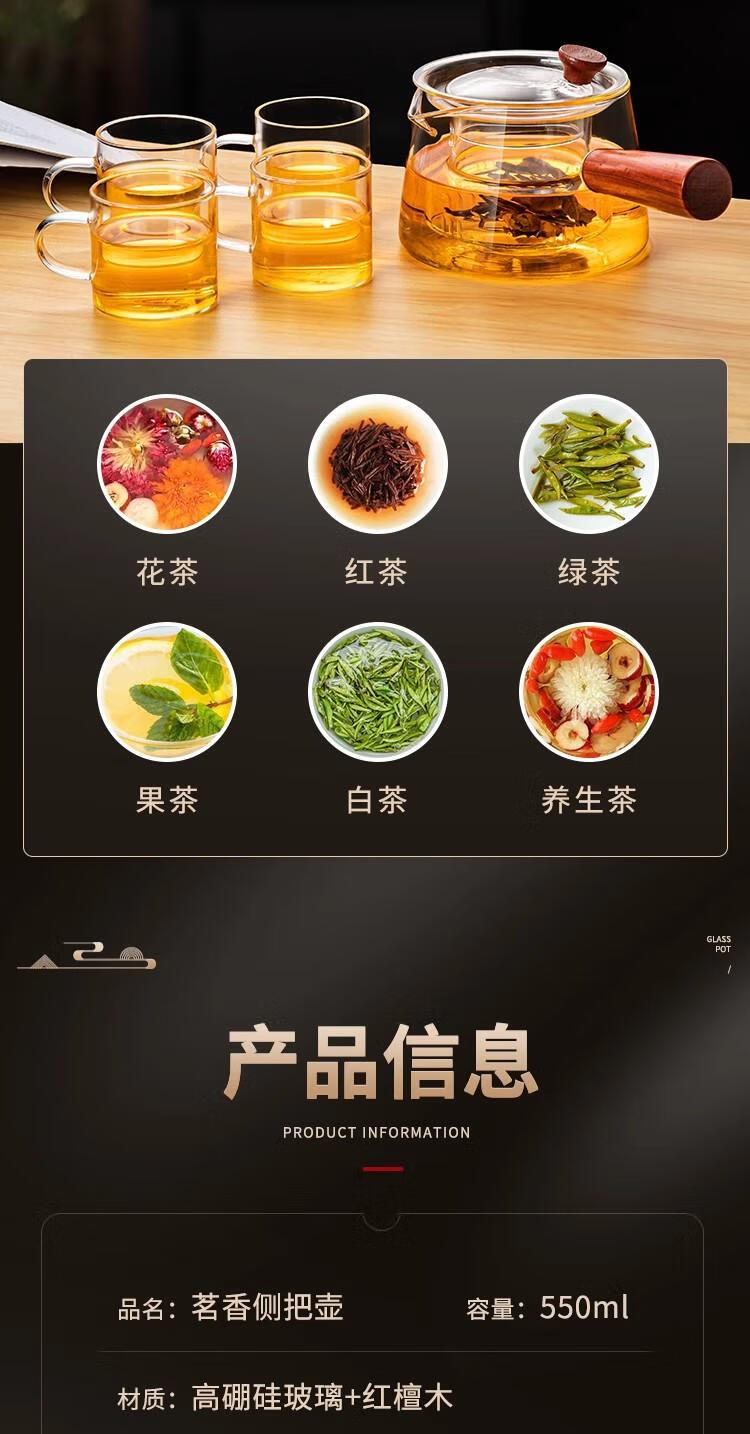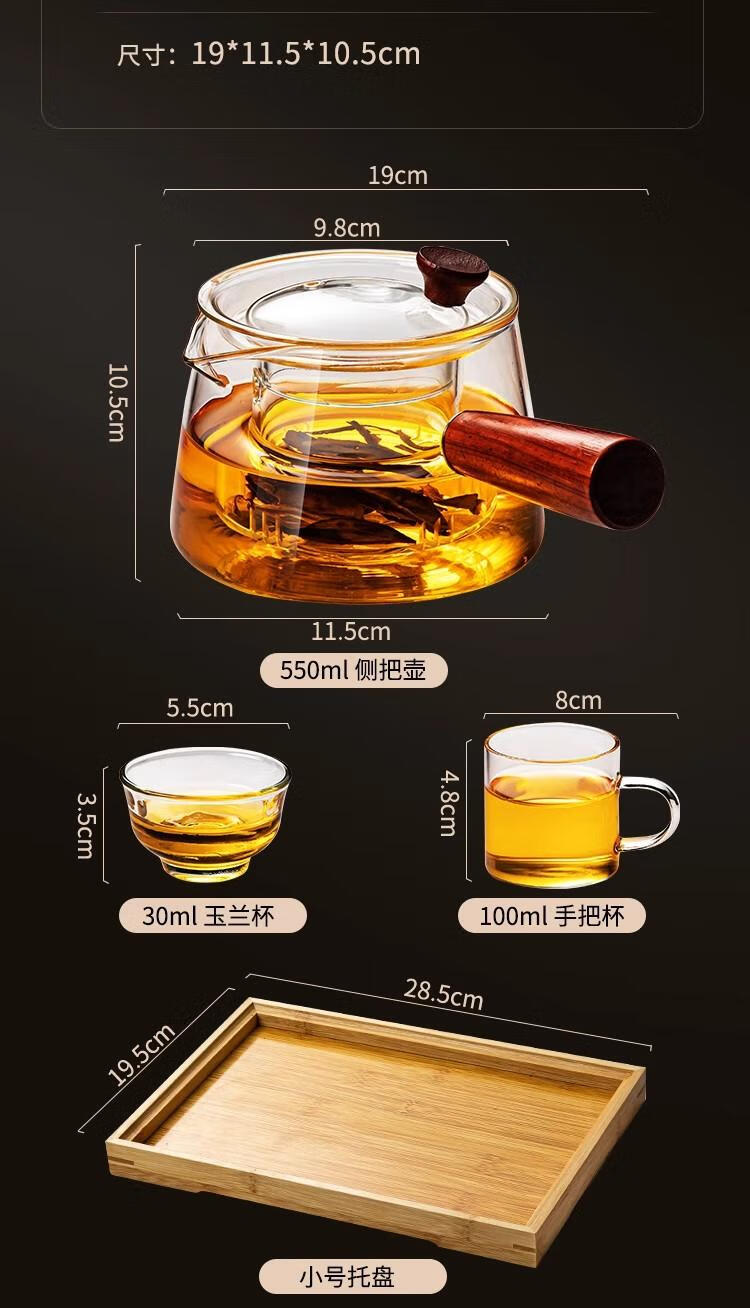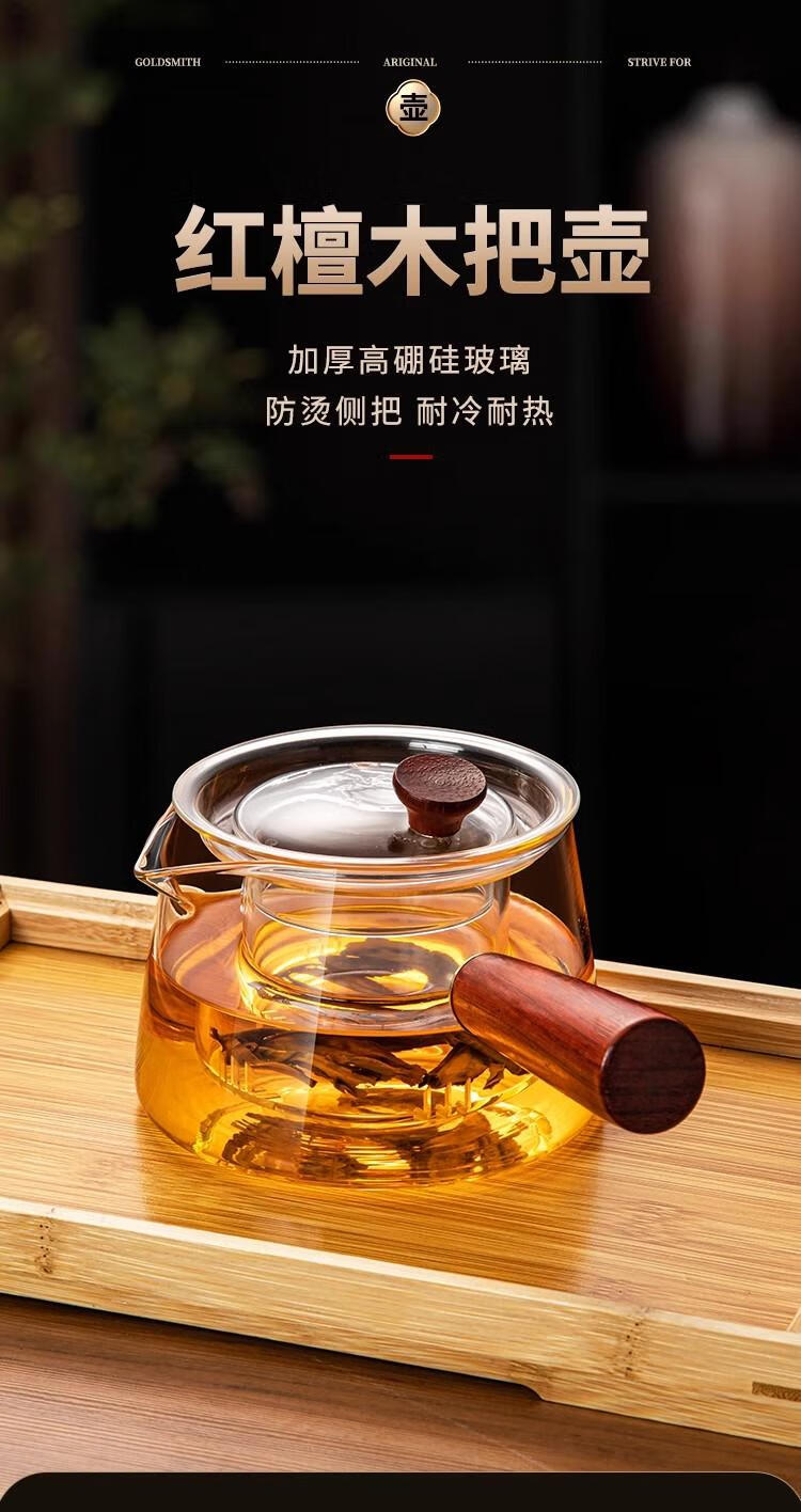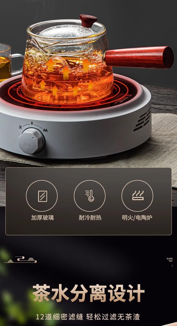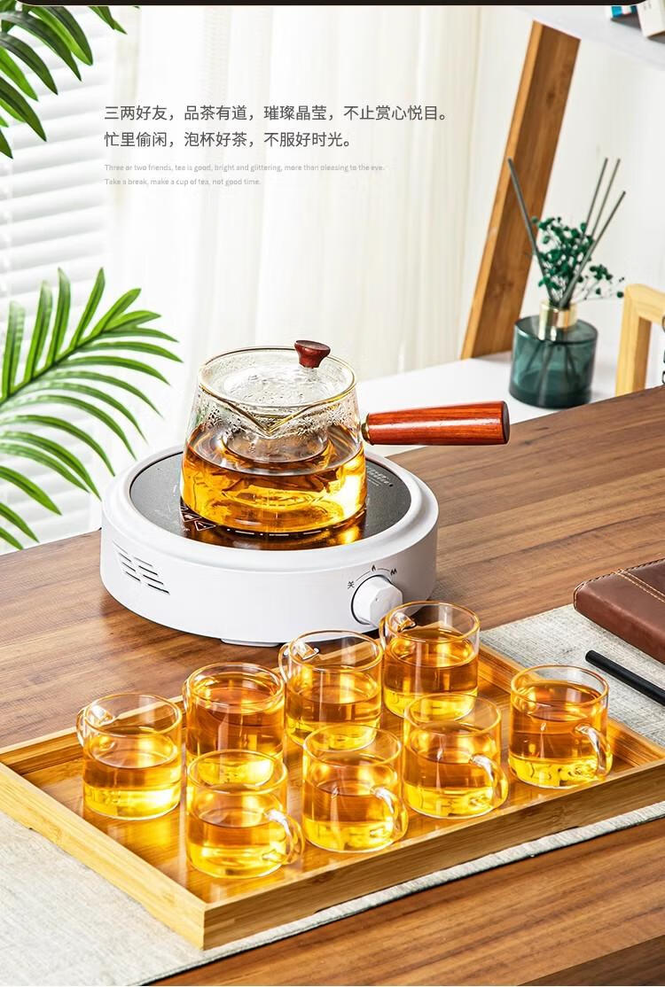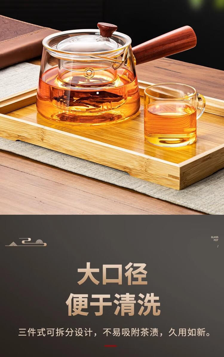 Glass teapot for making tea around the stove, high temperature resistance, single pot, household teapot, side handle, kettle, tea set, tea cup, teapot + 2 handle cups