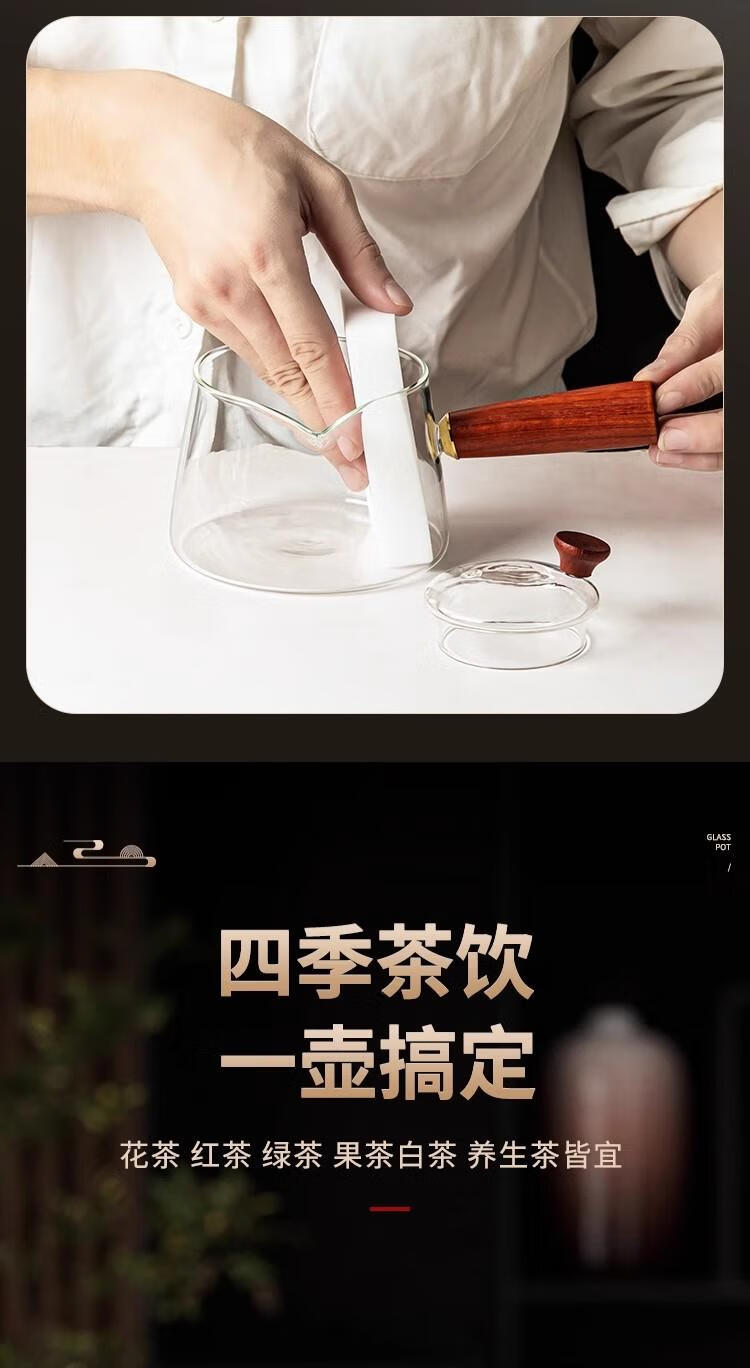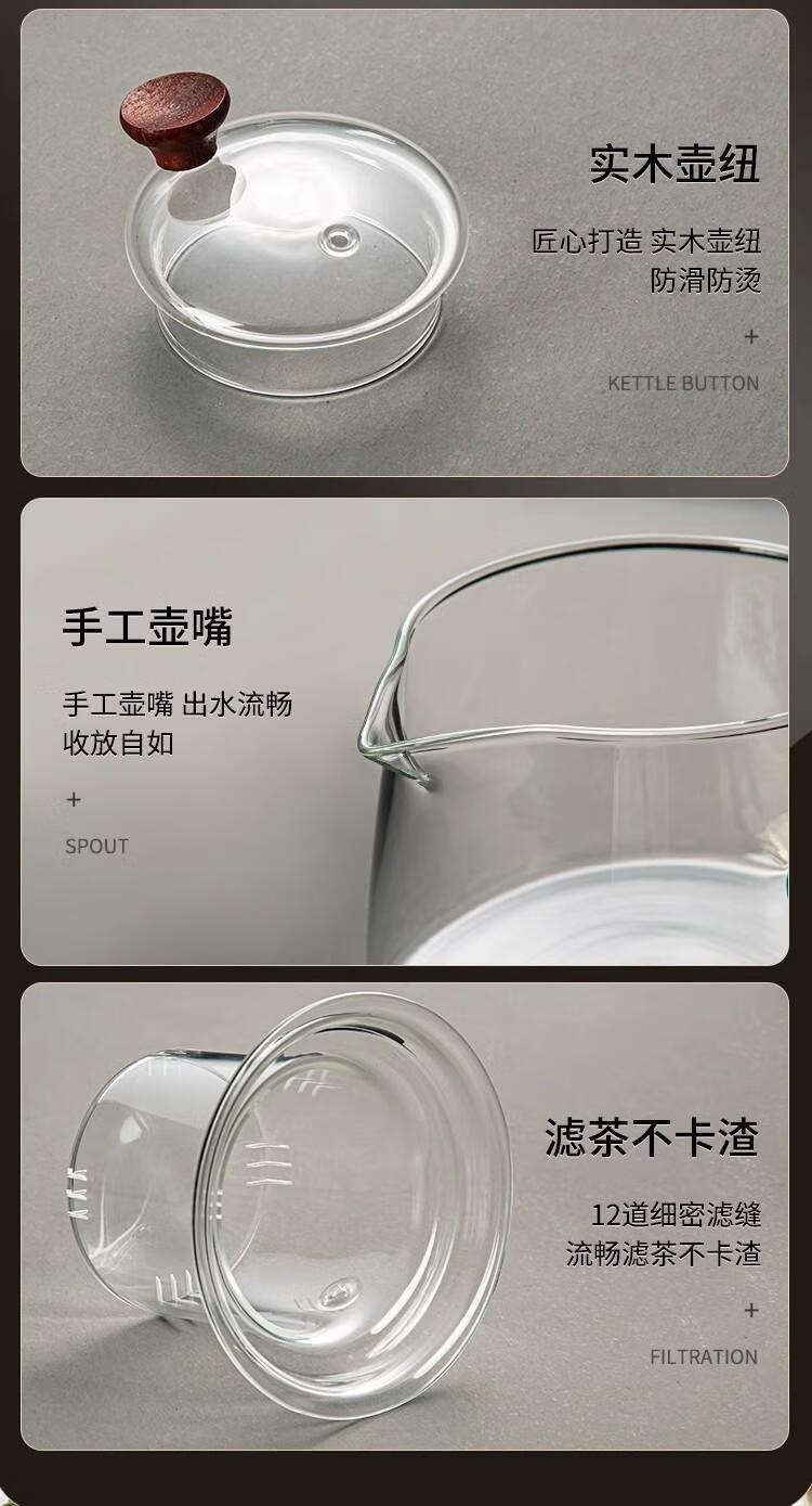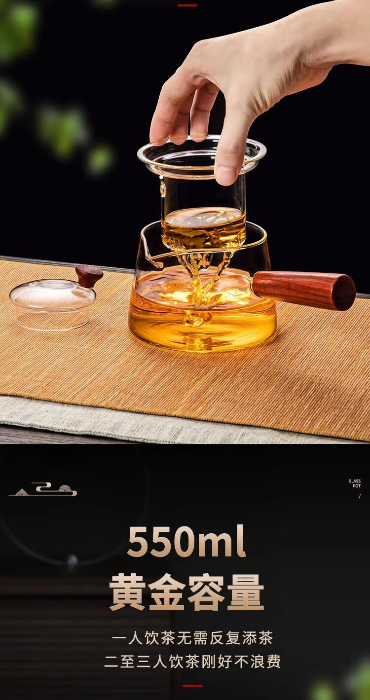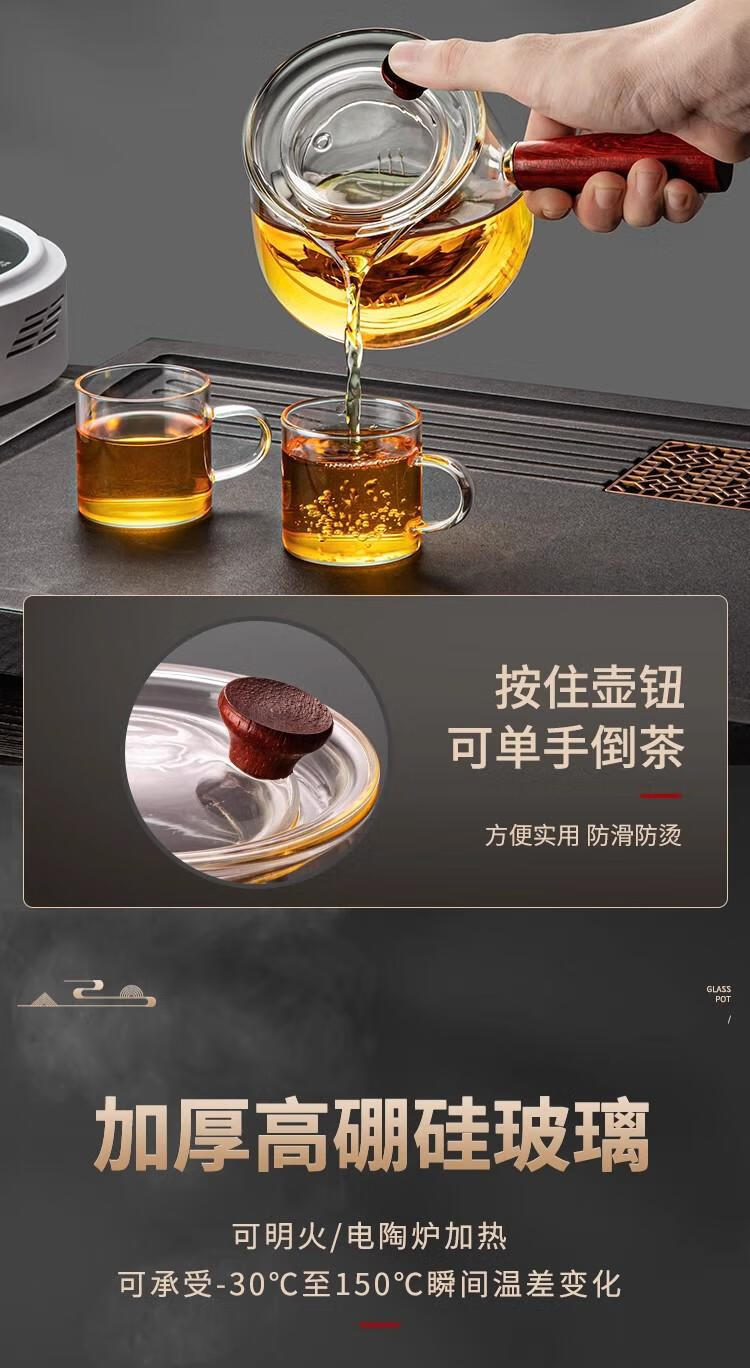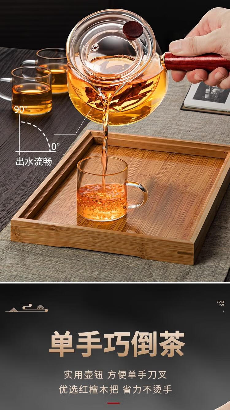 Glass teapot for making tea around the stove, high temperature resistance, single pot, household teapot, side handle, kettle, tea set, tea cup, teapot + 2 handle cups