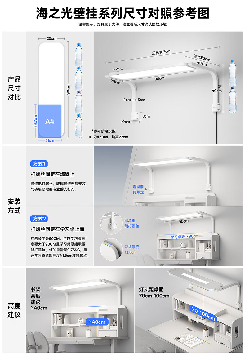 Moon Shadow Sea Light Full Spectrum Eye Protection Lamp Wall-mounted Street Lamp Children's Study Special Table Lamp Classroom Lamp Desk Lamp Max Super Bright Eye Protection 3rd Generation 7842lm Stepless Dimming