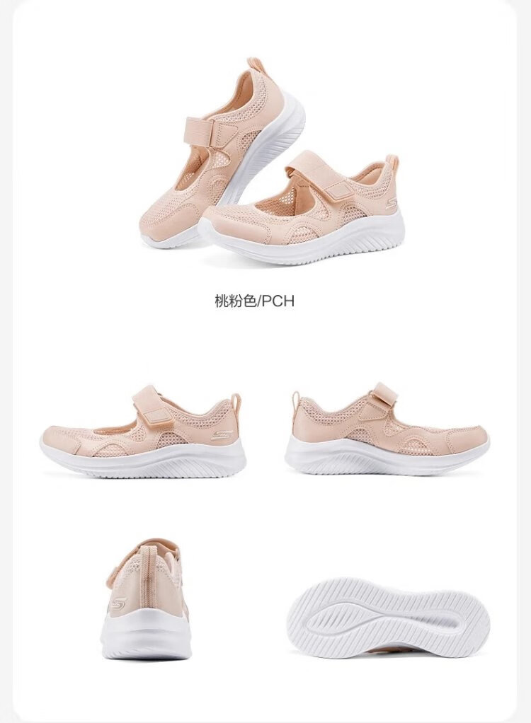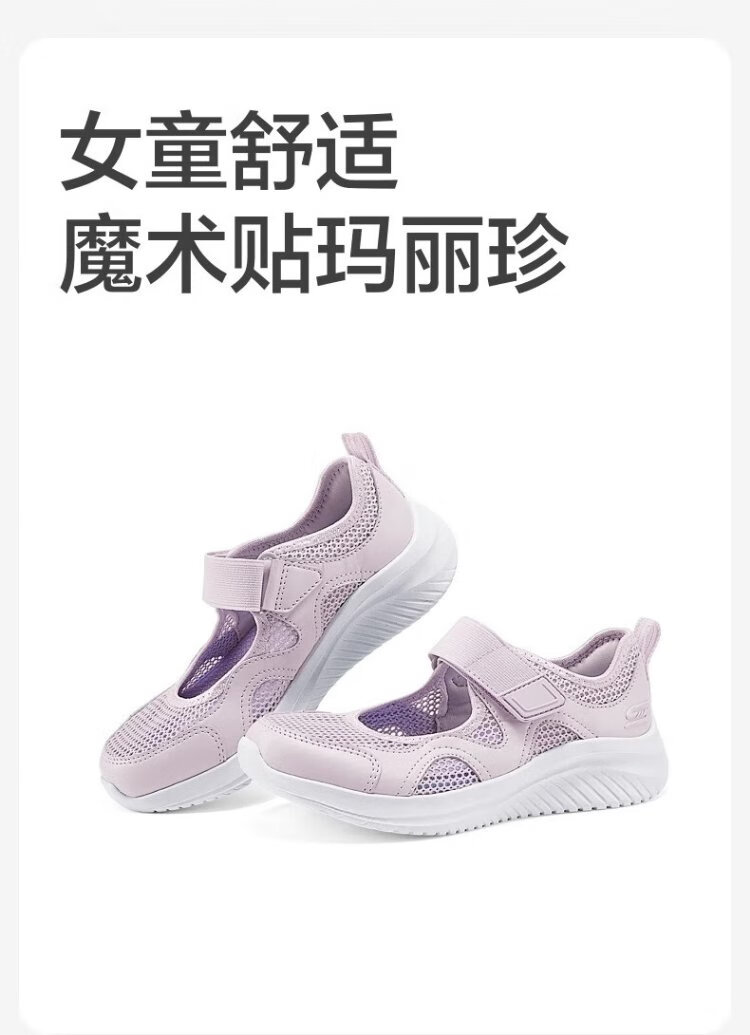 Skechers children's summer breathable mesh lightweight comfortable sports Velcro Mary Jane casual shoes 303974L peach pink/PCH 32