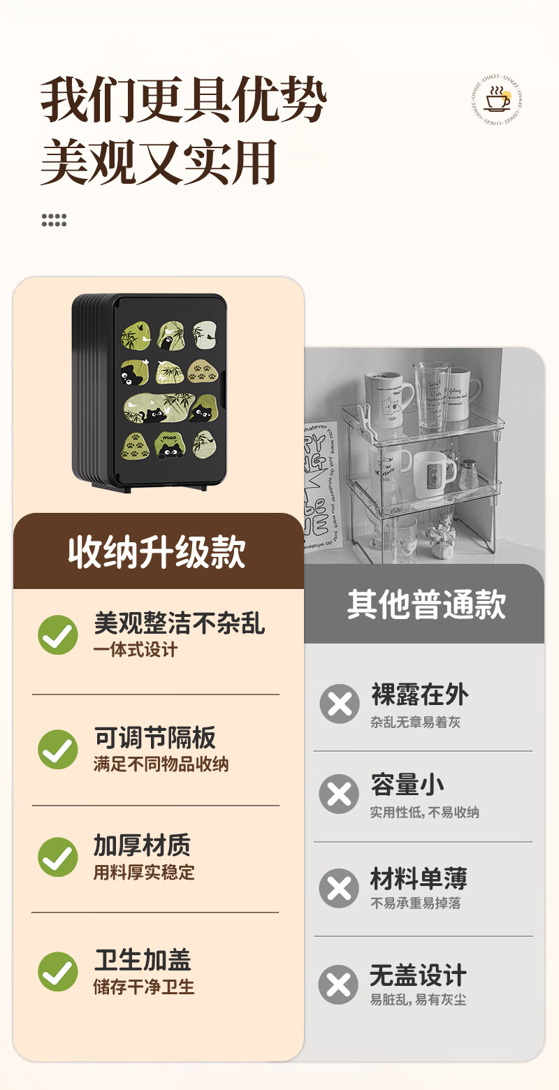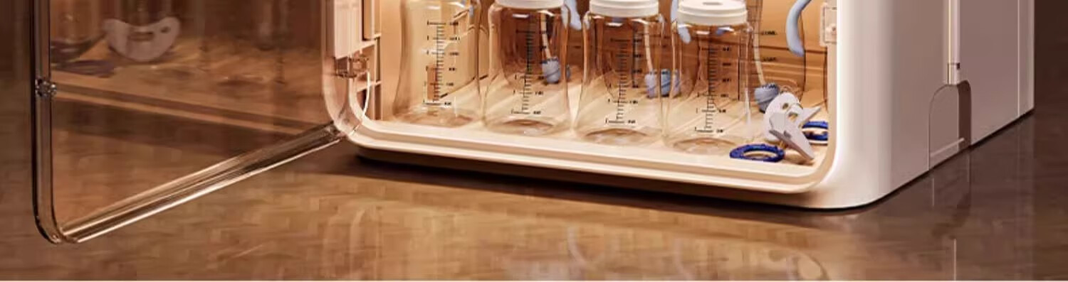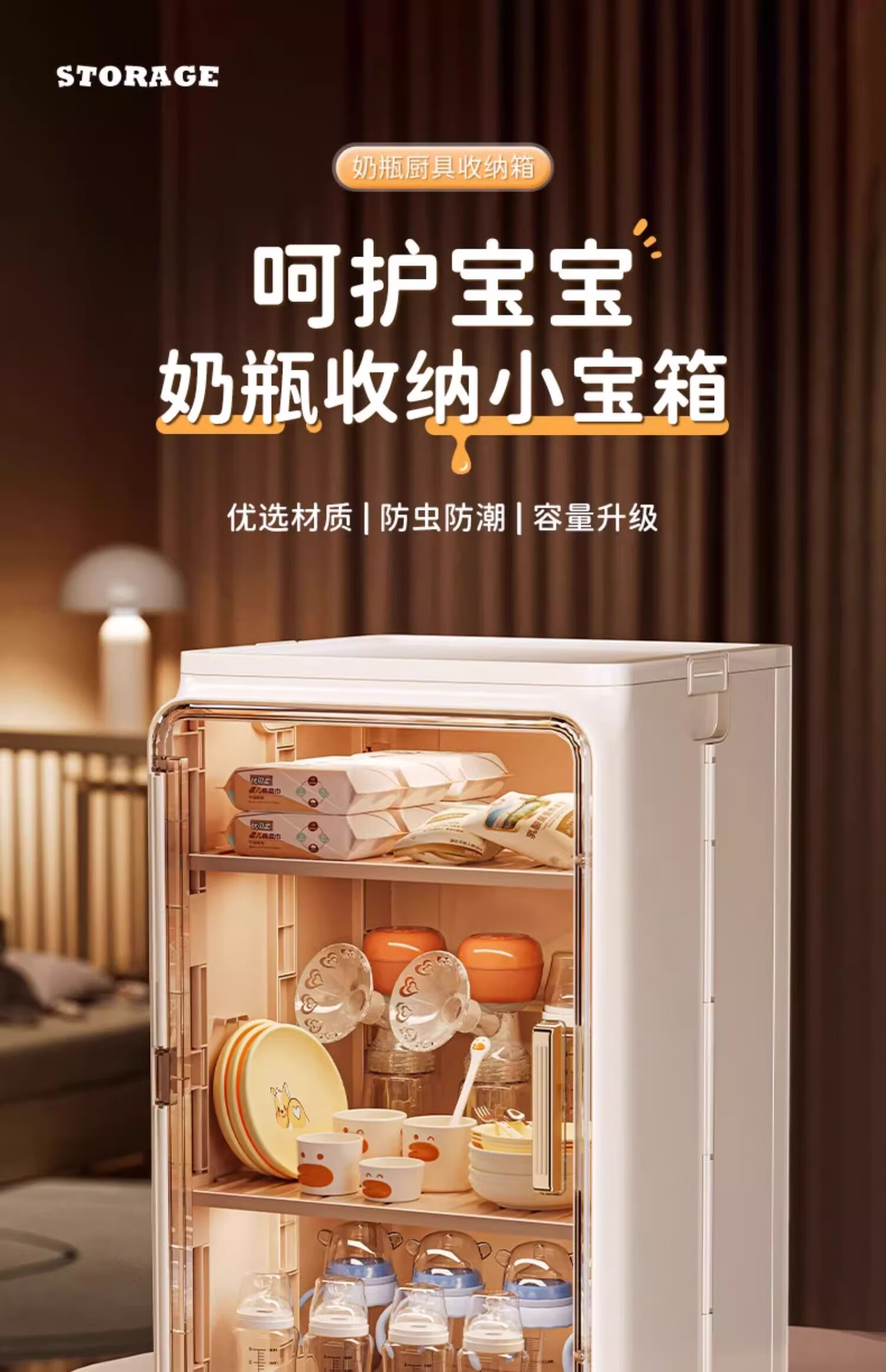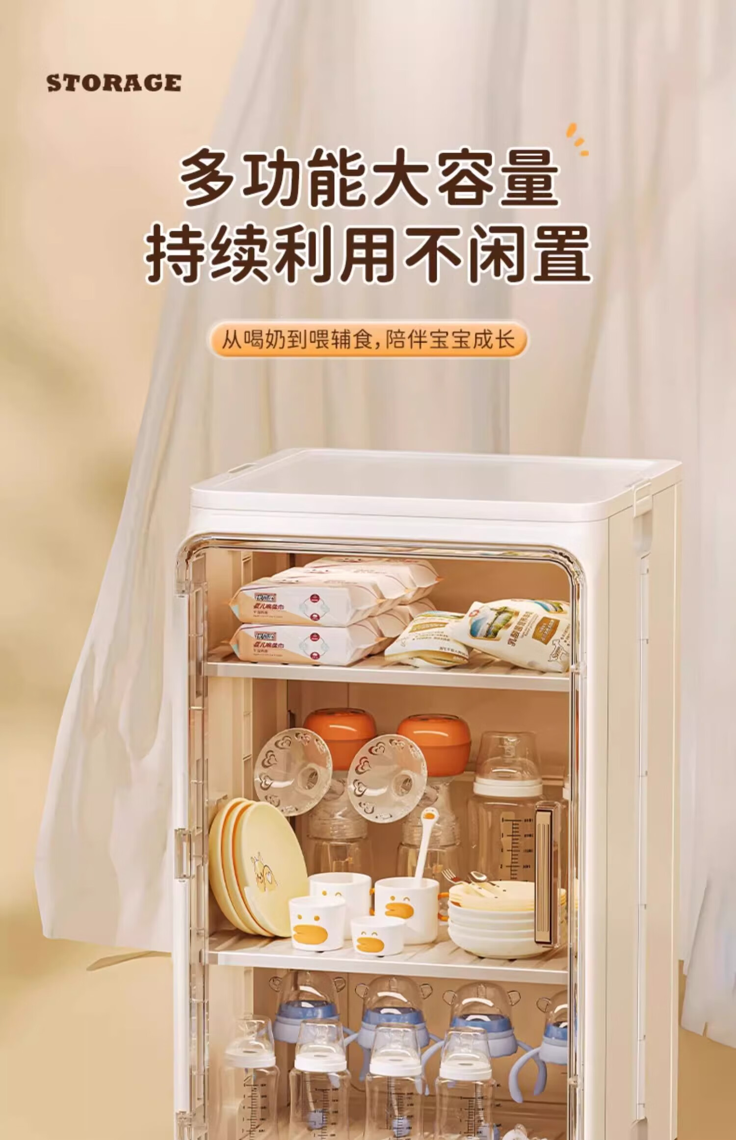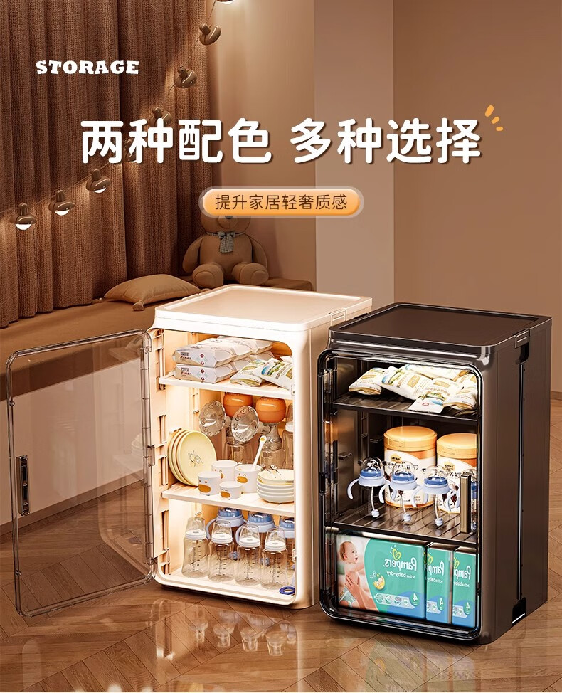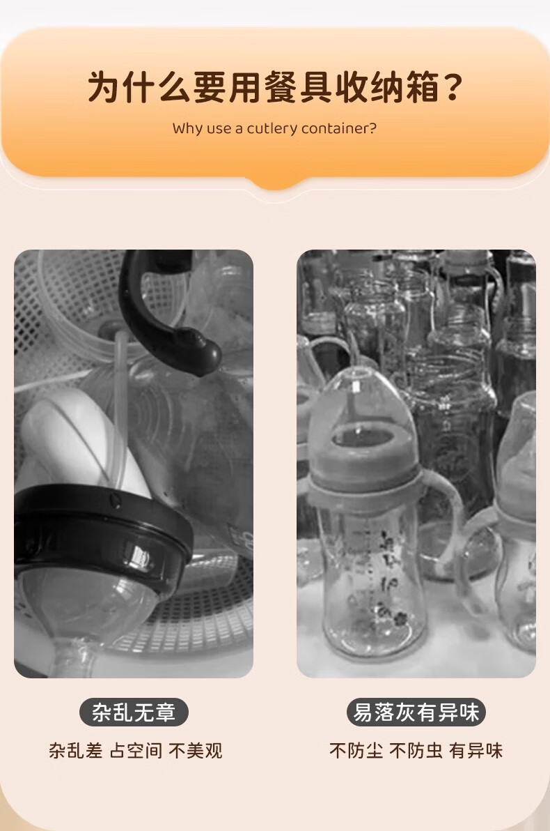 Nafenai baby bottle storage box dust-proof baby feeding tool storage box bowls and chopsticks drain rack desktop storage rack large cream white partitions removable storage tall bottles