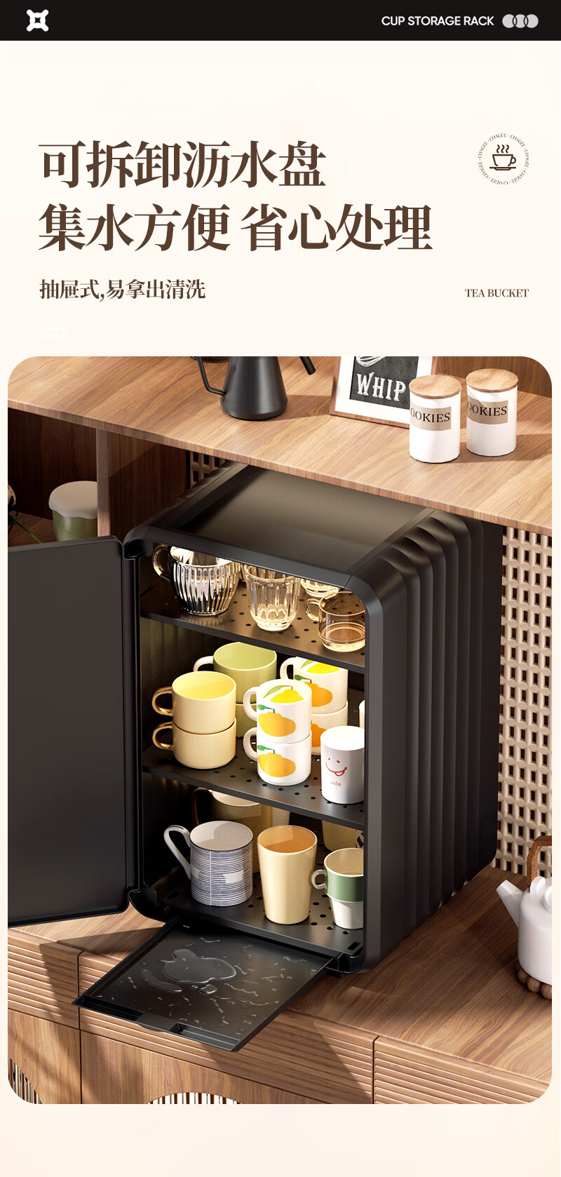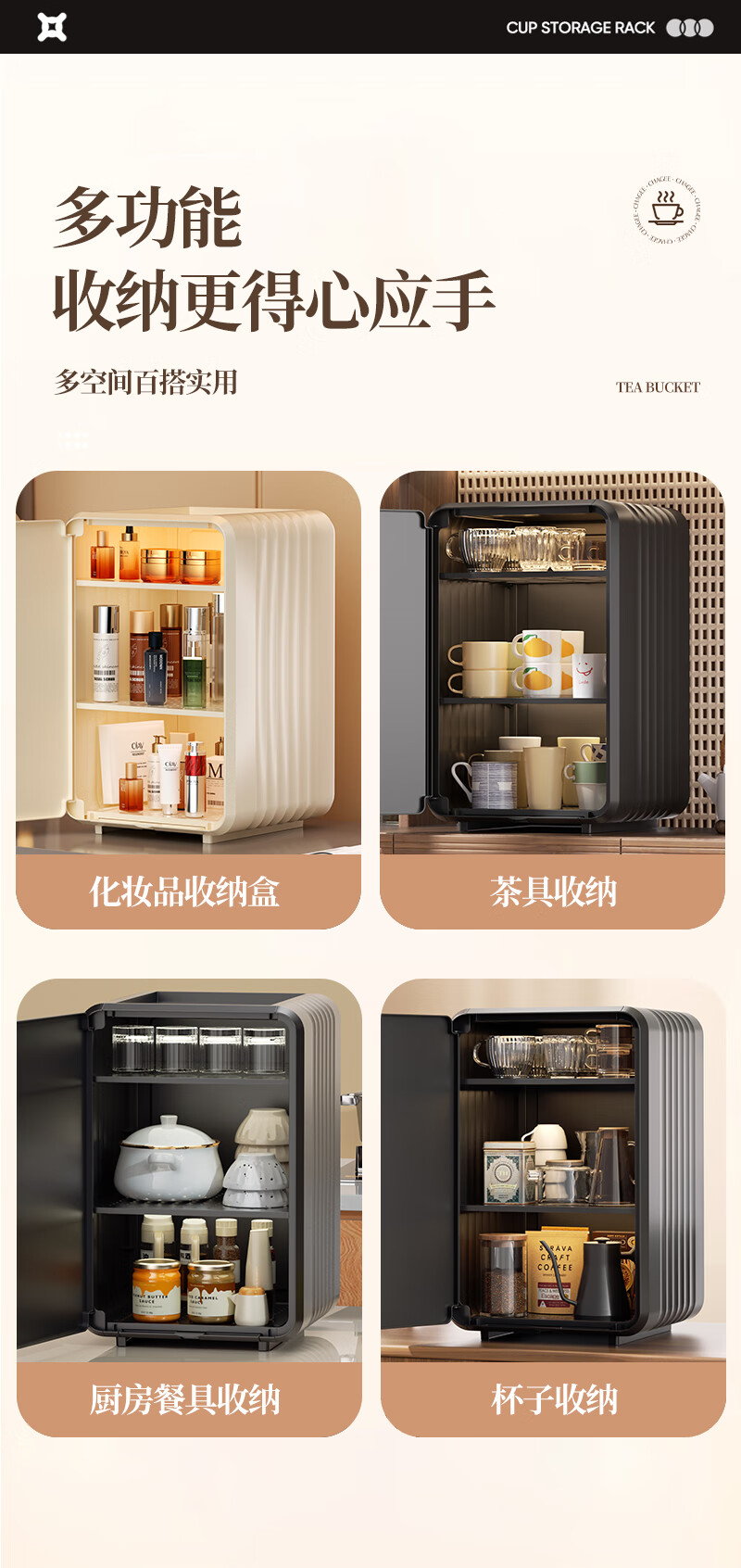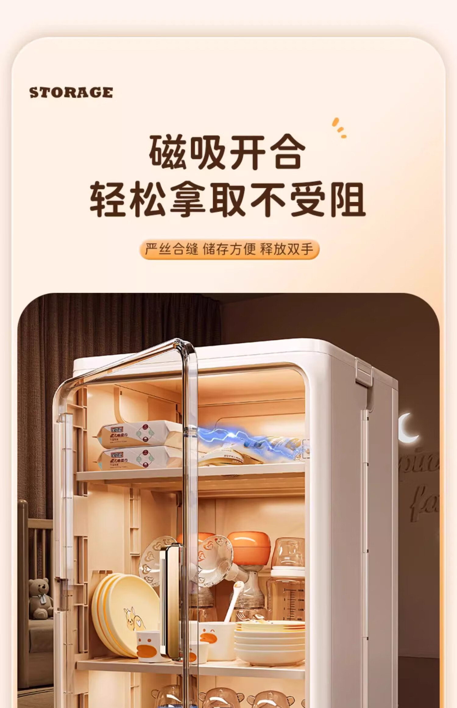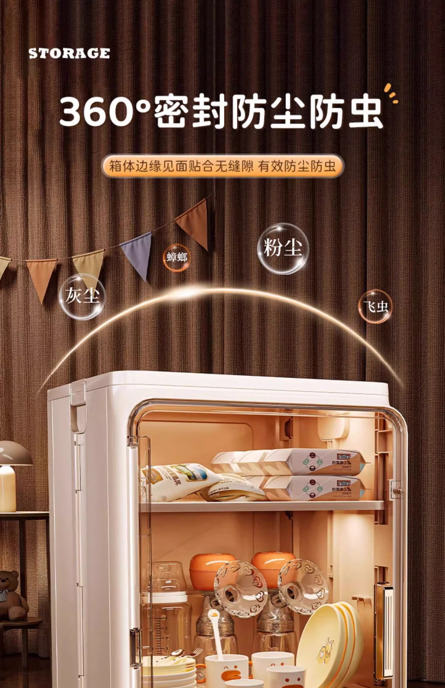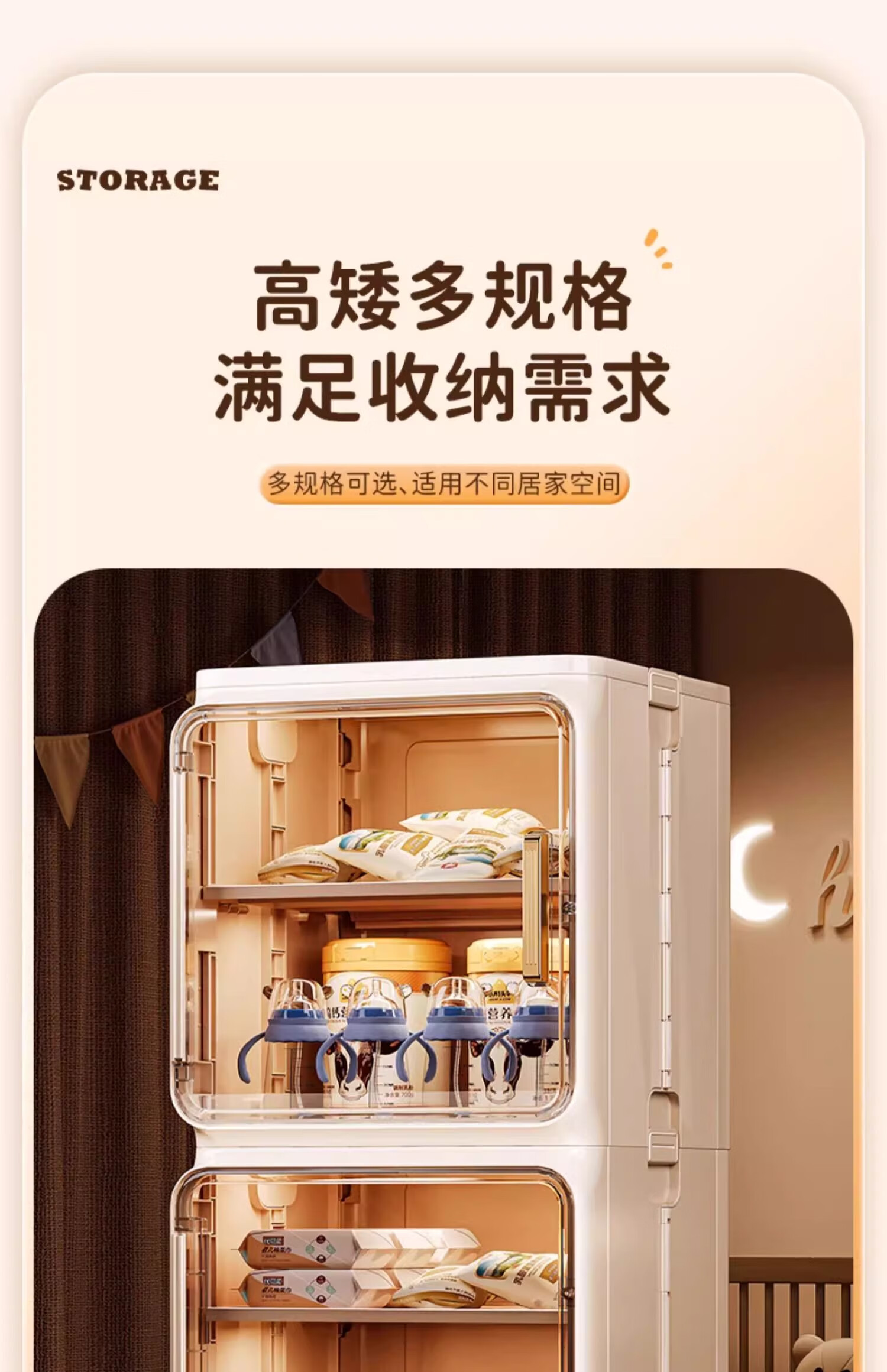 Nafenai baby bottle storage box dust-proof baby feeding tool storage box bowls and chopsticks drain rack desktop storage rack large cream white partitions removable storage tall bottles