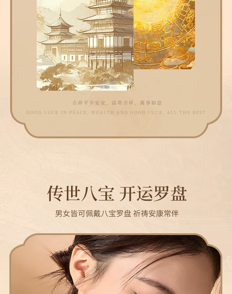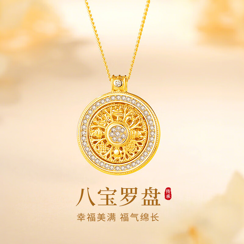 Lao Fengxiang Eight Treasures Compass Silver Necklace for Women Light Luxury Fashion Pendant Wedding Anniversary Gift for Girlfriend and Wife's Birthday Eight Treasures Compass Necklace