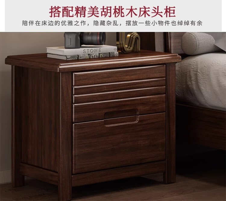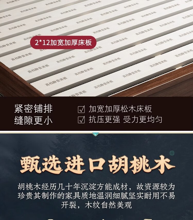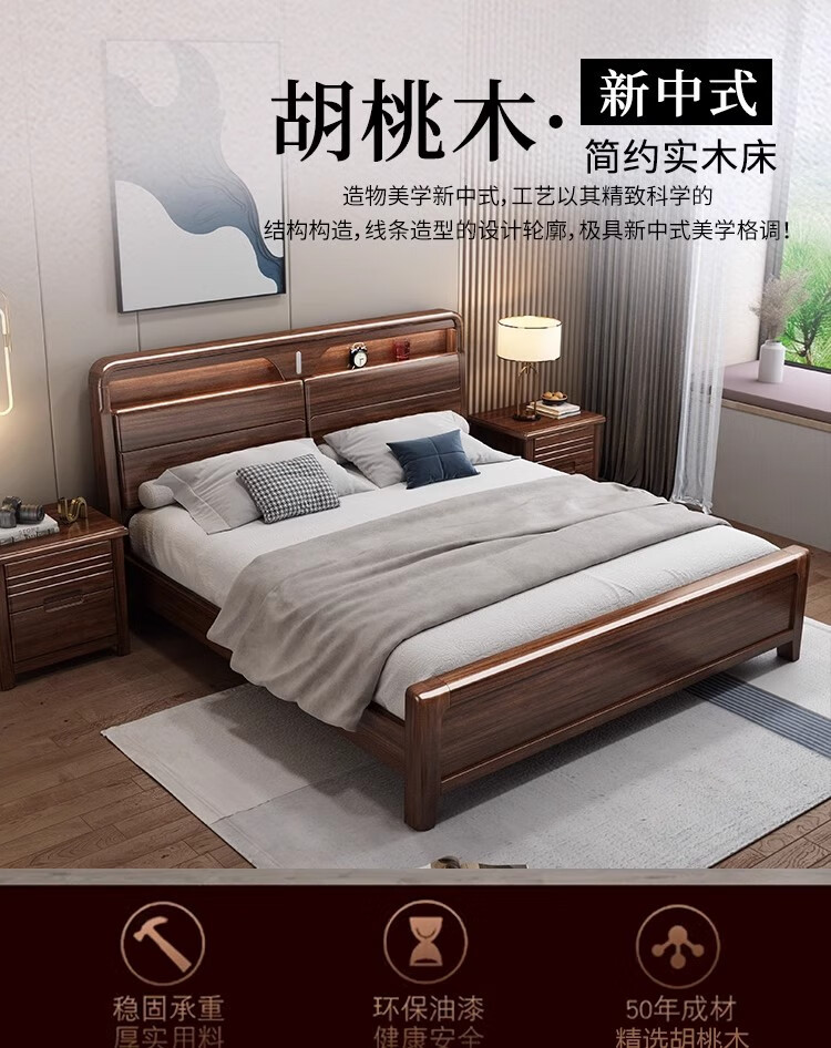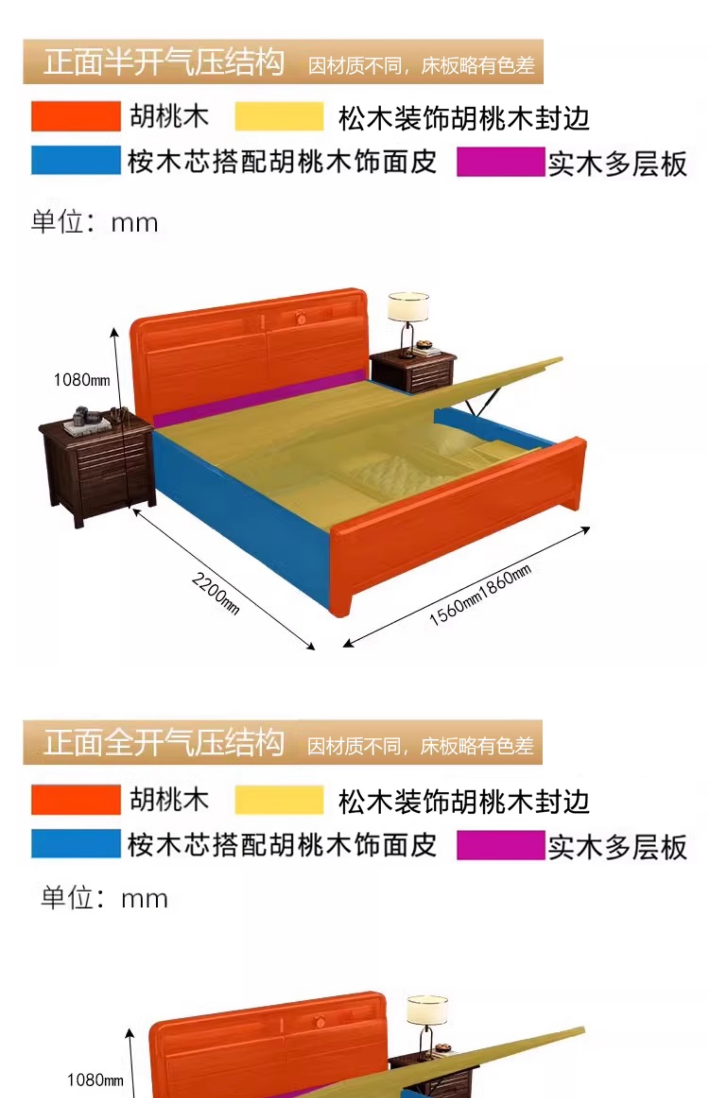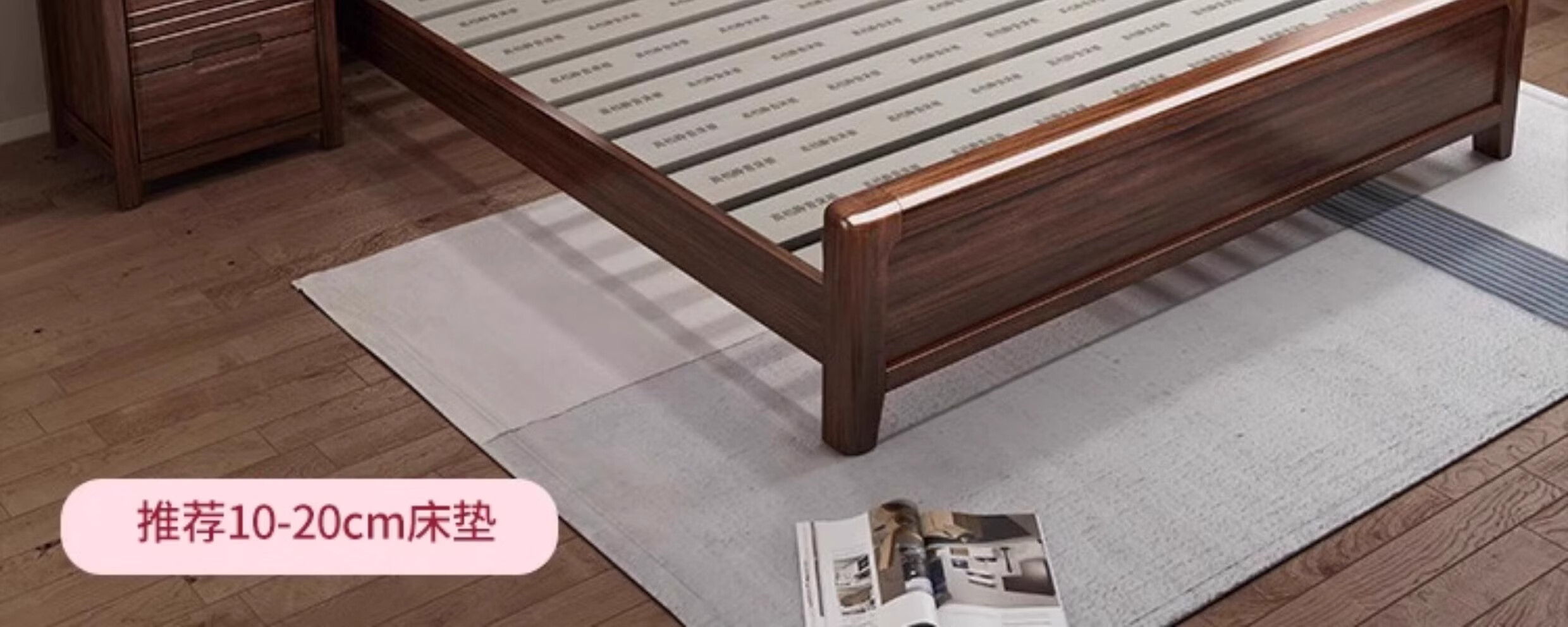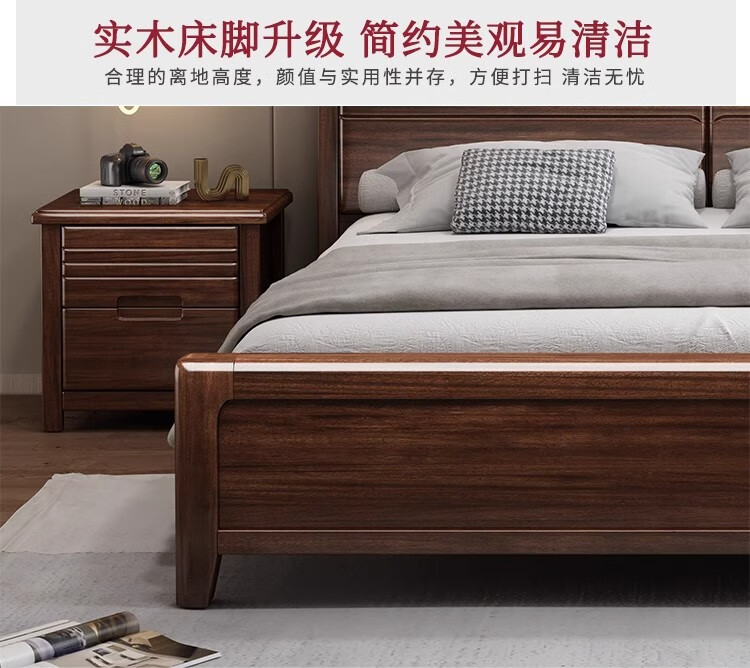 Zixi walnut solid wood bed 1.8 meters factory high box bedside storage with lights master bedroom thickened 2 meters double bed walnut single bed with night light/bull socket 1800*2000mm air pressure double extraction structure/full bed bed board