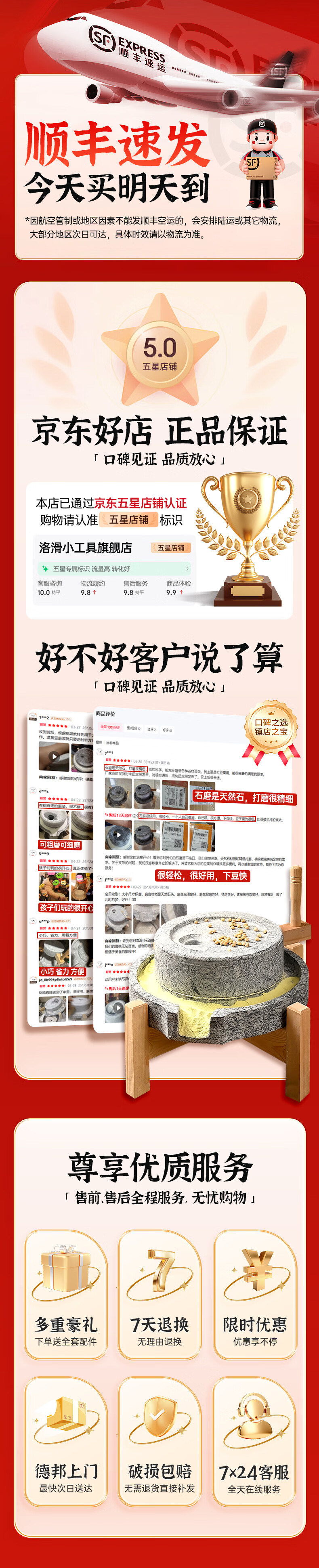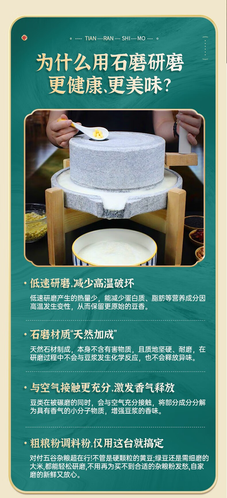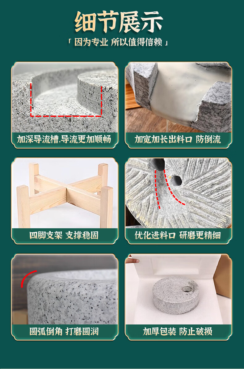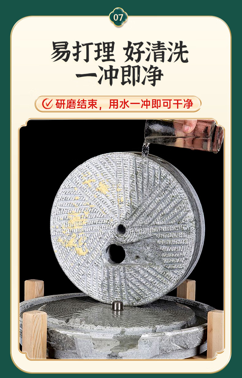 Luohua household stone mill rural old-fashioned retro manual push grinding surface granite millstone mini small grinding grain stone mill 30*40 wooden frame + adjusting shaft upgraded and thickened household grinding powder more delicate