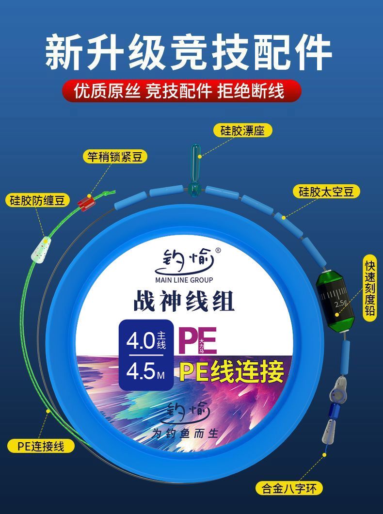 Ares line group main line group tied up finished imported fishing line group PE connected to genuine fishing line Taiwan fishing set complete set 7.2m-sub-line clip style 5 rolls 2.5 line number individually packaged