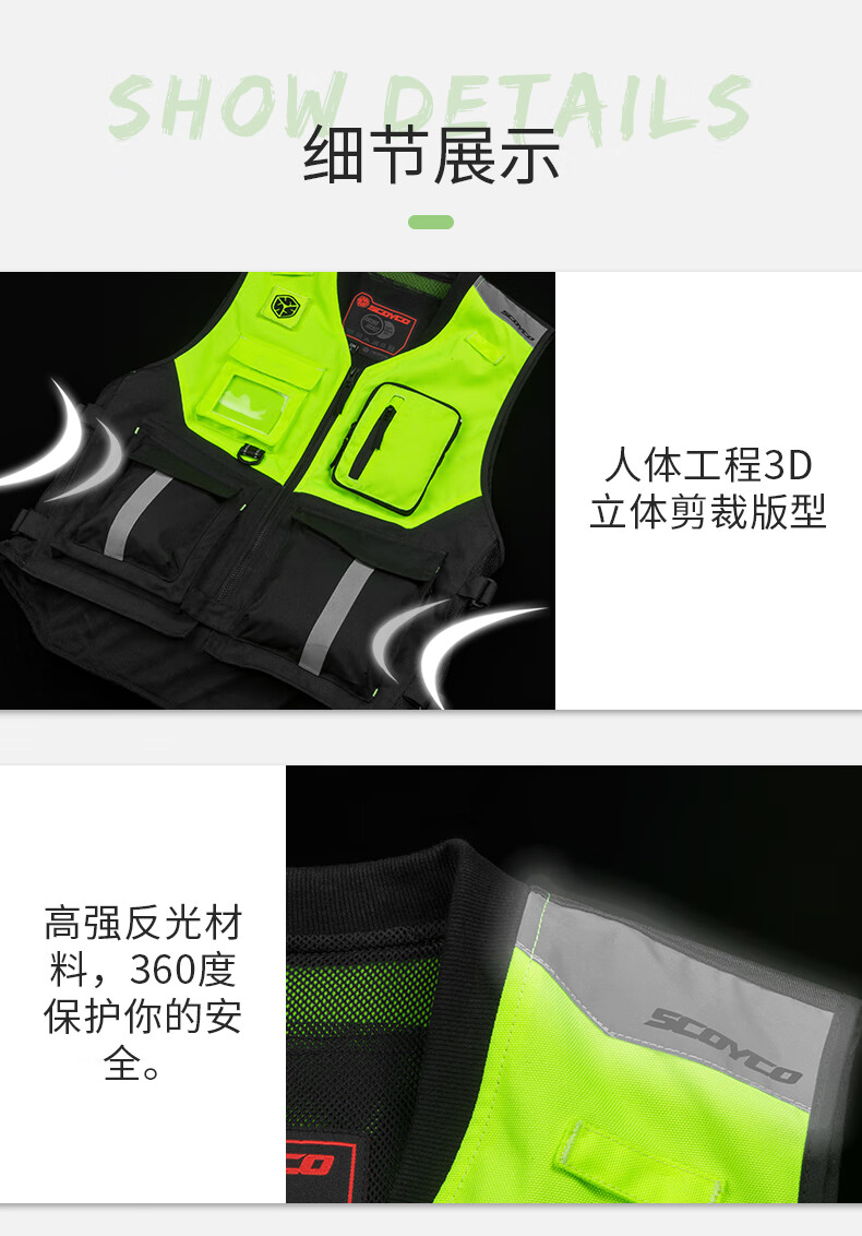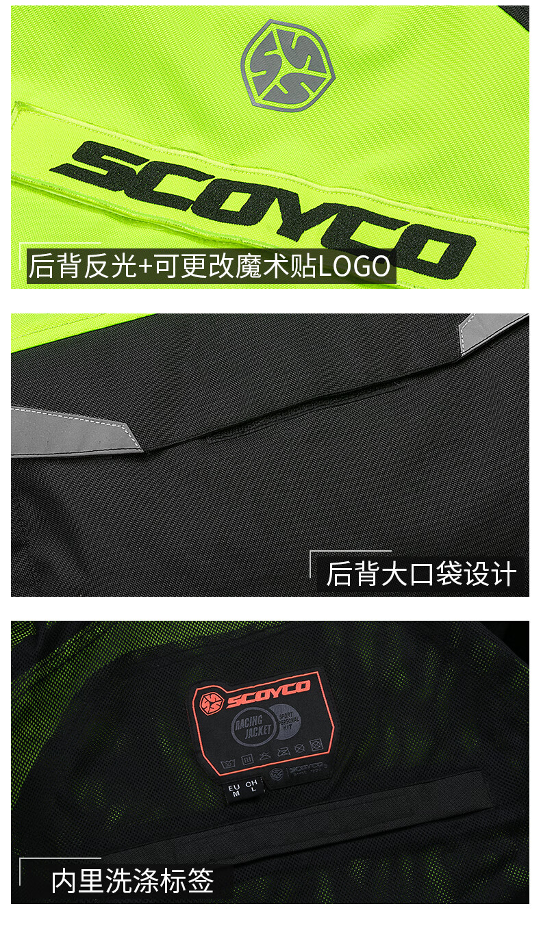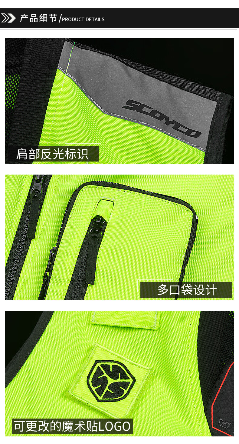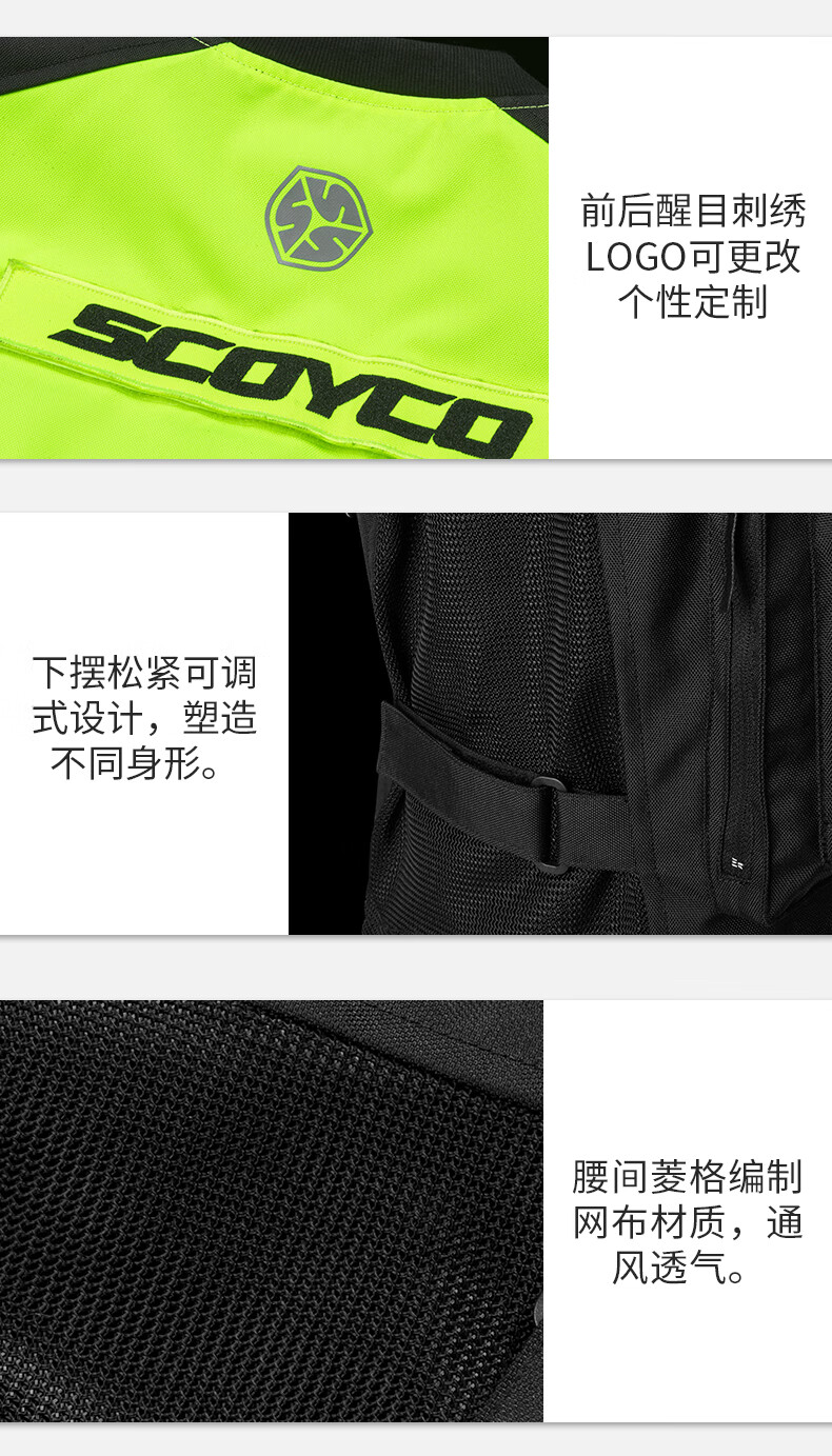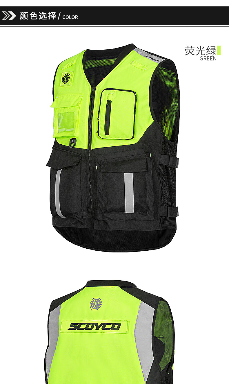 SCOYCO Motorcycle Riding Suit Fluorescent Vest Motorcycle Suit Anti-fall Rider Vest Clothes Four Seasons Motorcycle Shadow Armor JK116 (Green) M