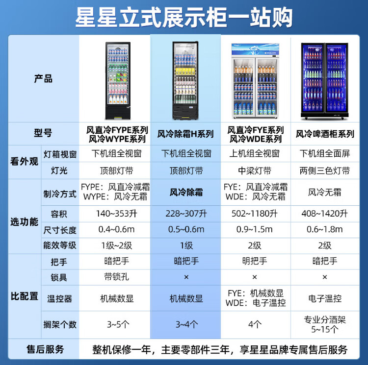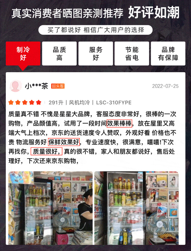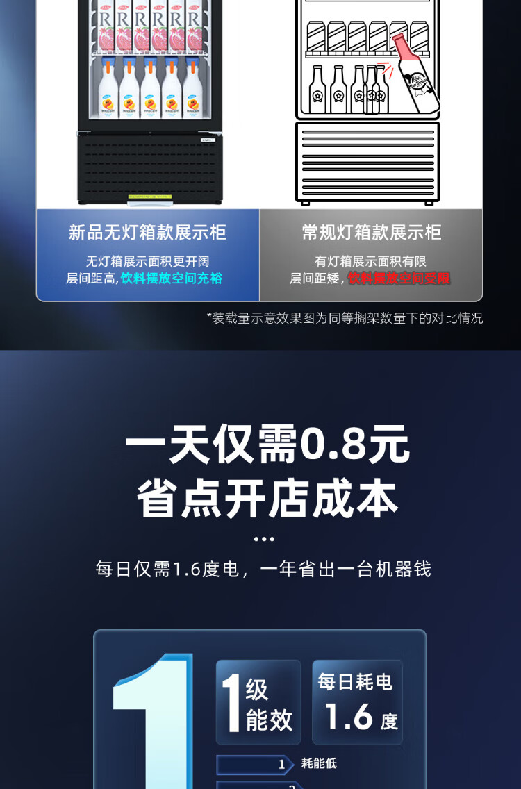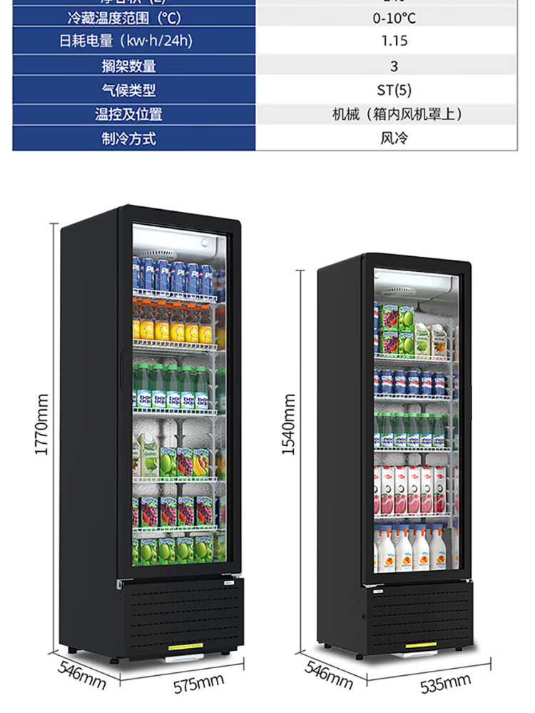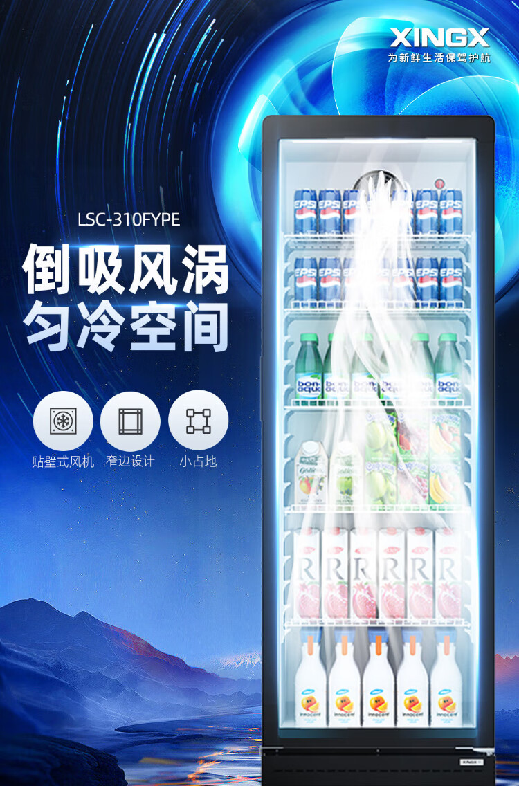 Star (XINGX) display cabinet refrigerated fresh-keeping cabinet beverage display cabinet freezer commercial single-door air-cooled refrigerator wine beer cabinet cold drink cabinet supermarket convenience store refrigerator vertical freezer factory equipped 222-liter fan frost reduction丨1st level energy efficiency丨230FYPE