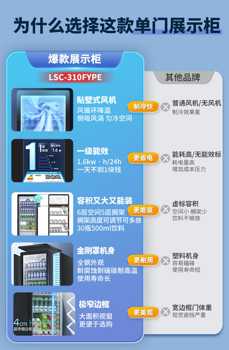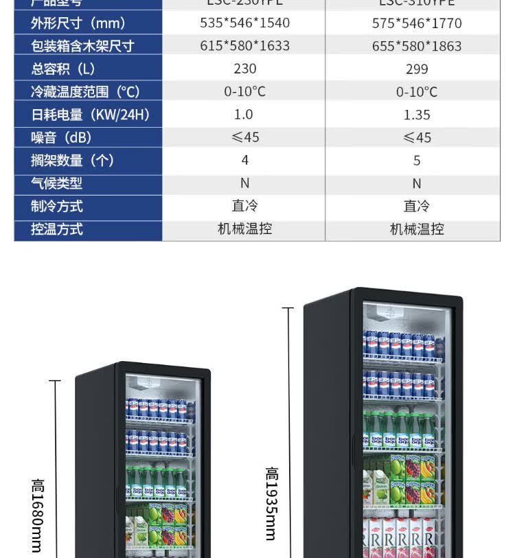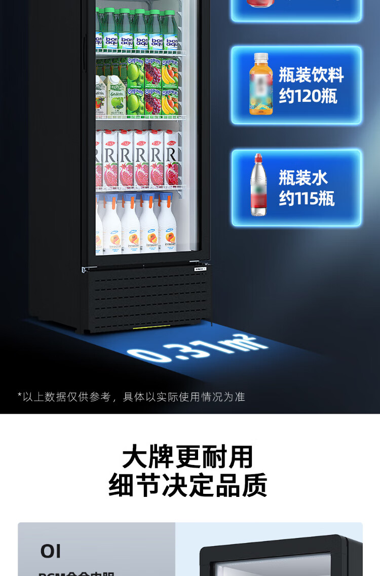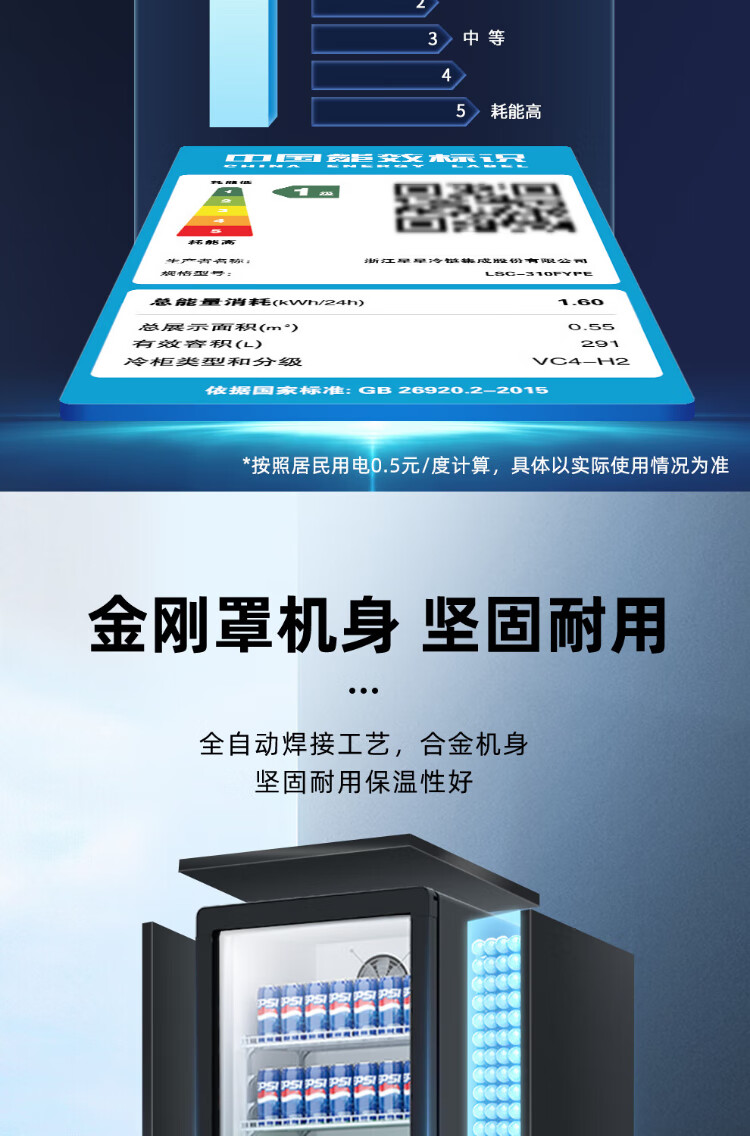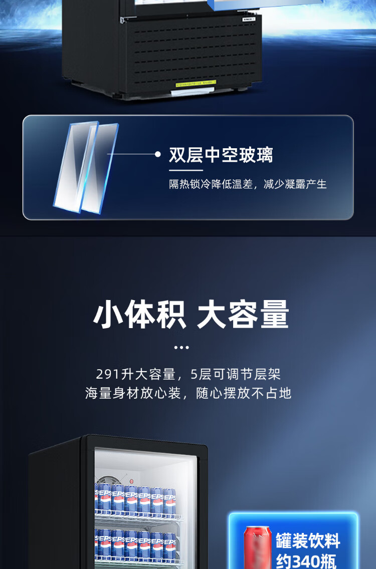 Star (XINGX) display cabinet refrigerated fresh-keeping cabinet beverage display cabinet freezer commercial single-door air-cooled refrigerator wine beer cabinet cold drink cabinet supermarket convenience store refrigerator vertical freezer factory equipped 222-liter fan frost reduction丨1st level energy efficiency丨230FYPE