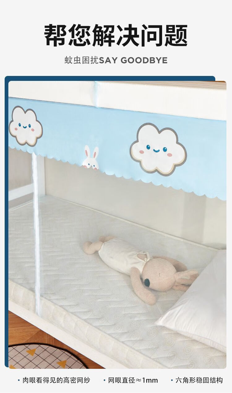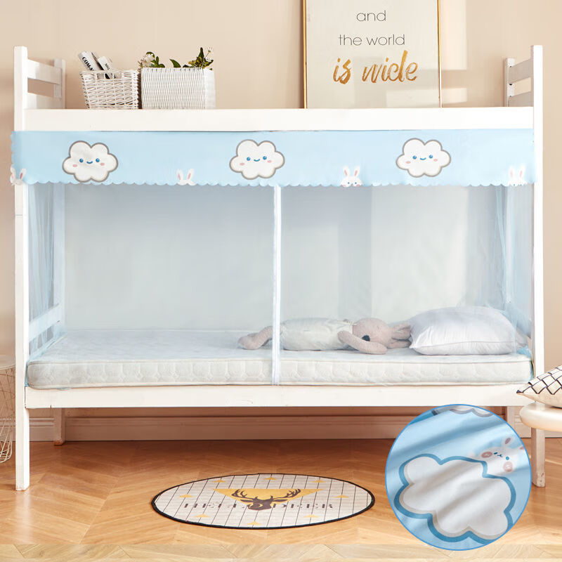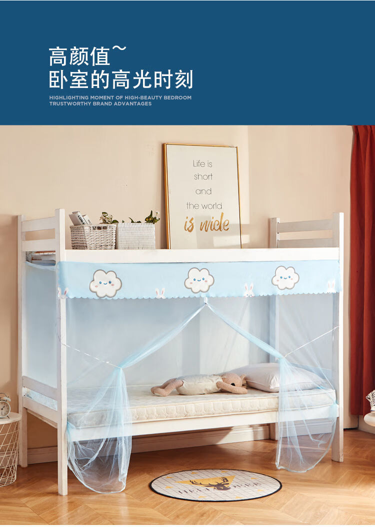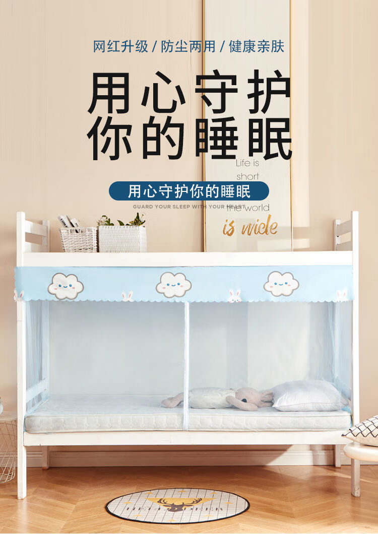 Upper bunk mosquito net student dormitory single bed lower bunk universal dormitory m household zipper style apartment bed zipper-door curtain-Yunduotu-dust-proof top-1.6 high 0.9m*1.95m free hook