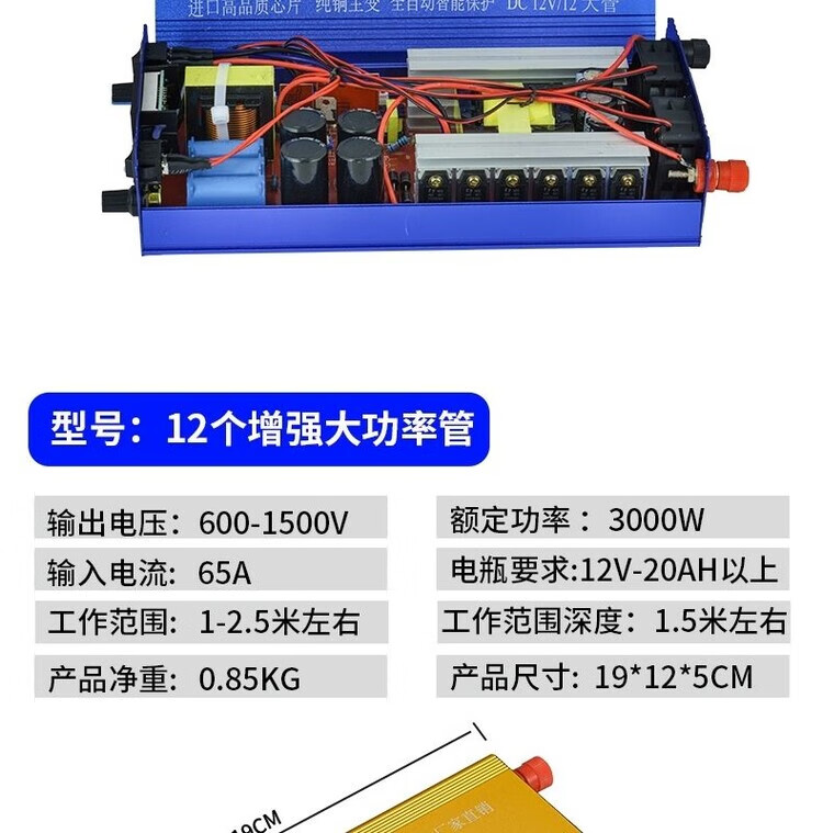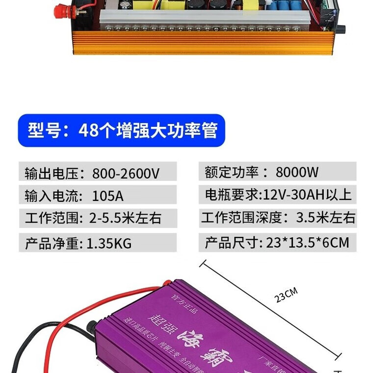 Inverter head deepwater new high-power inverter 12V multi-functional intelligent boost power converter high voltage intelligent 24-tube pure copper wire gift package