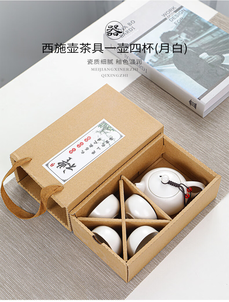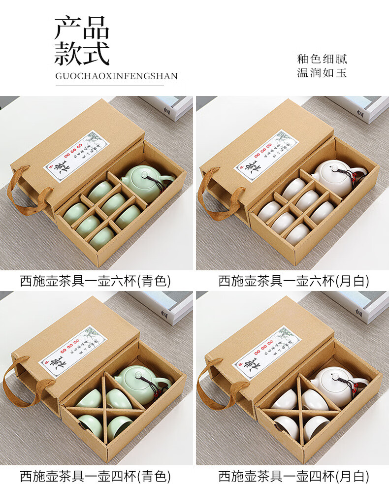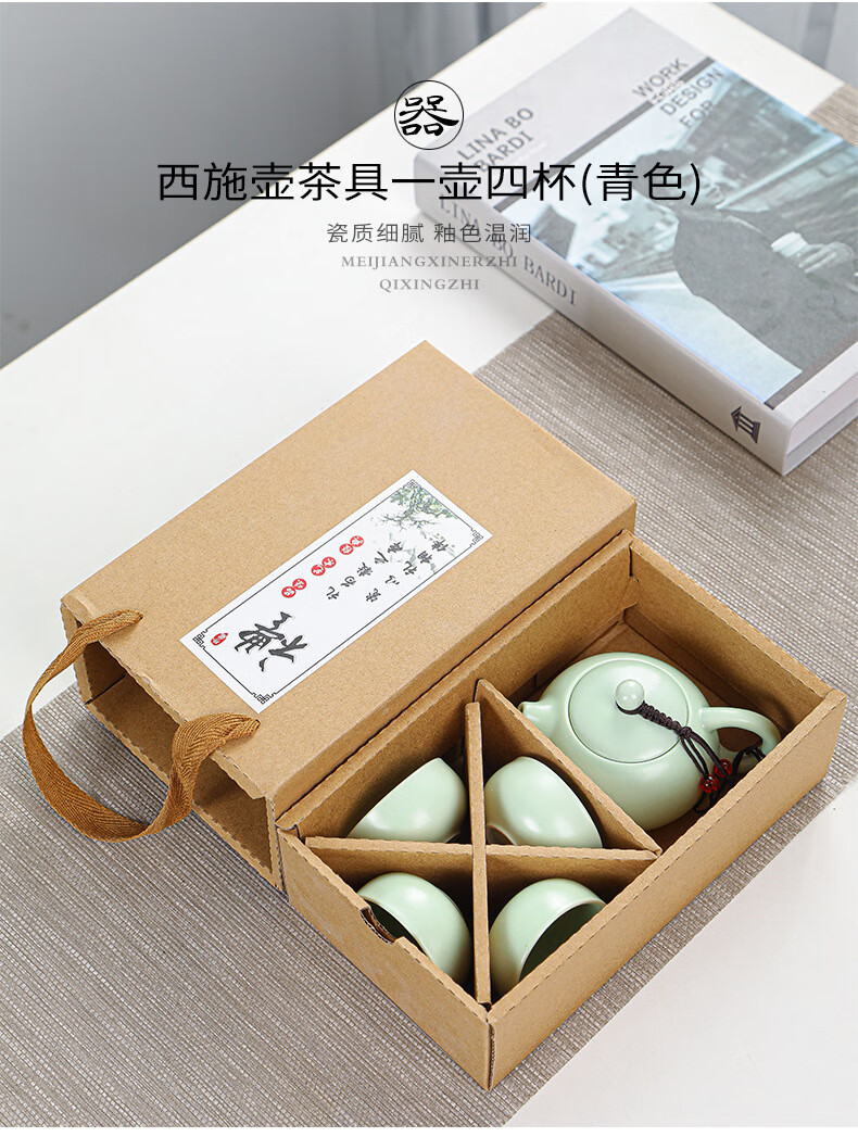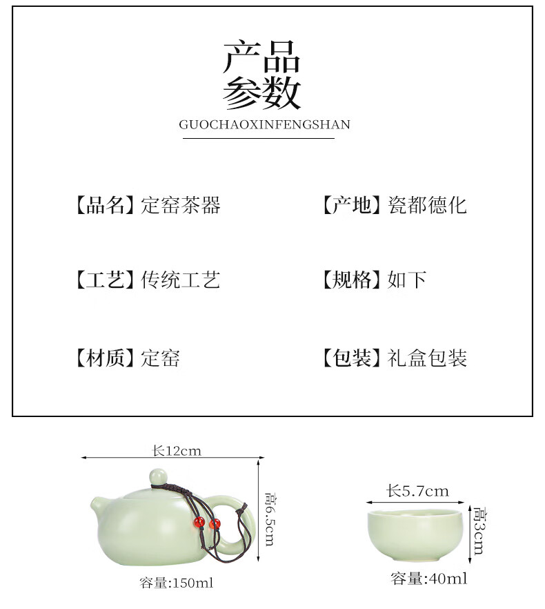 Jingxiangting Ding Kiln Tea Set Ceramic Xishi Pot Gift Box Home Portable Travel Gift Accompanying New Year's Goods Mid-Autumn Festival Gift Xishi Pot Tea Set One Pot Two Cups (Green