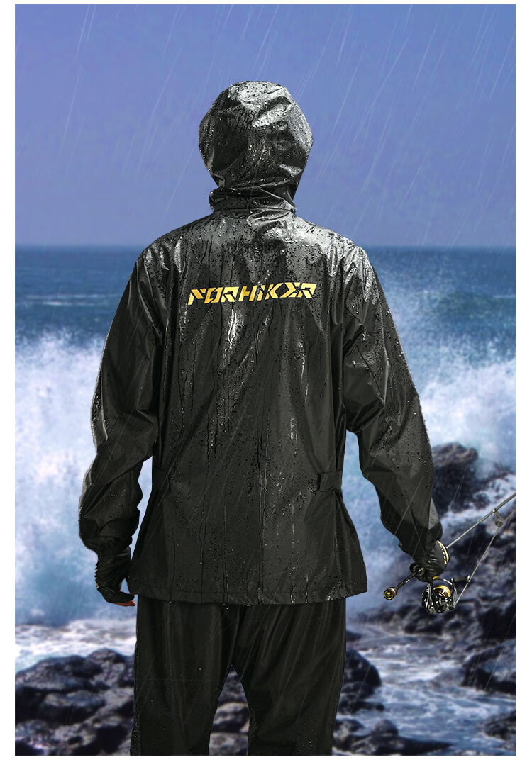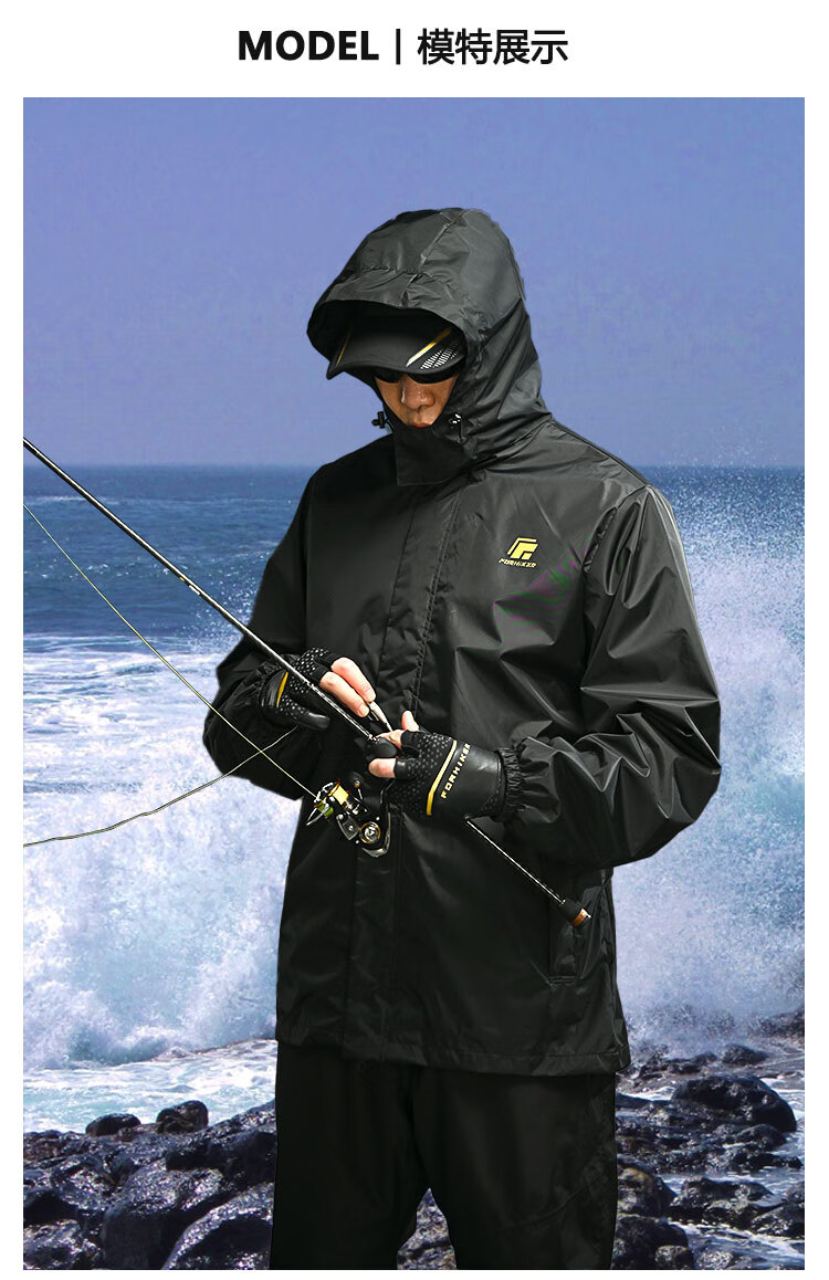 Wind Hunter Breathable Split Raincoat Luya Charge Fishing Waterproof Special Full-body Stormproof Raincoat Set Black Punctuation Raincoat Set XL